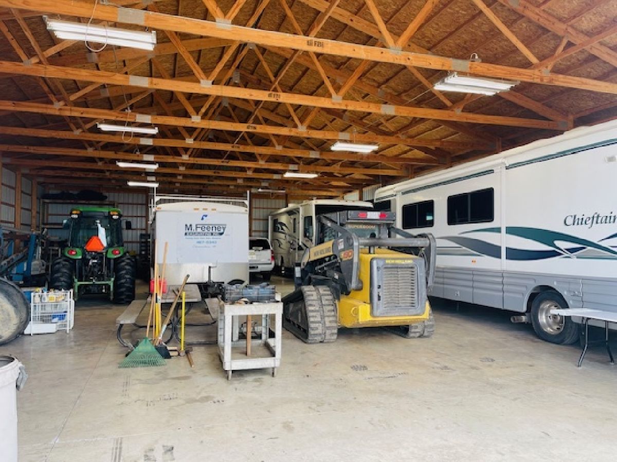 Custom designed 4 bedroom home situated on 15.7 acres with 2 outbuildings and creek running through back yard. 2,700 s/f ranch home w/ second floor loft space, 48 x 80 pole barn w/ in floor heat & living quarters built out and a second 48 x 80 pole barn w/ 2 large doors & concrete floors. Great for camper, boat and trailer storage. Solar power goes with the home! Beautiful open floor plan with wood features and stone fireplace! Nothing to do but move in! Zoned agricultural, low taxes, animals are welcome. (Additional building permit allocation available.)