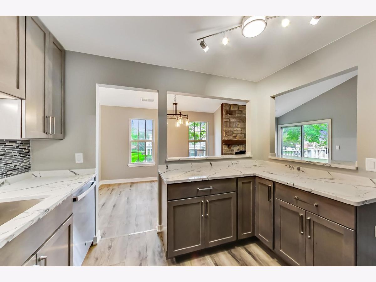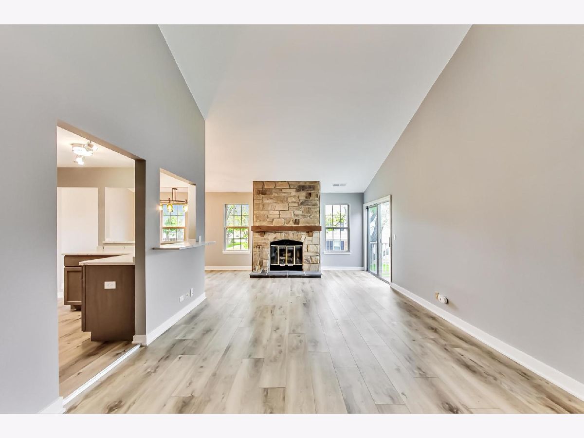 Enjoy resort lifestyle in beautiful Rob Roy Country Club Village. Completely remodeled and upgraded two bedroom, two bath condo plus den which can serve as optional third bedroom or office. Second floor unit with brand new kitchen and baths with stunning wide-plank luxury vinyl tile flooring, new lighting, newly painted throughout, new sliding door to balcony and several new windows. All new fixtures and beautiful stainless steel appliances. New cabinetry, marbelized quartz countertops in kitchen and baths. Living room with fireplace, vaulted ceiling and new sliding door leading to balcony overlooking lawns. New LVT wide plank flooring has been covered with brand new carpeting in living and dining room, den and bedrooms per board rules. Kitchen, baths, foyer and mechanicals/laundry area all feature the flooring, allowed in those areas per the board rules. One-car garage with interior access plus additional driveway parking space and guest parking. Fabulous amenities include pool, tennis courts, trails, landscaped green space, clubhouse. Wonderful area with school nearby, shopping and restaurants. What a find!