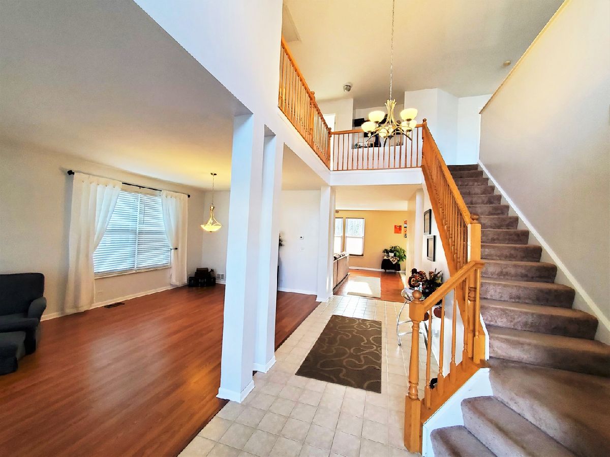 Your family will fall in love with this 5 bedroom, 3 full baths, 3 car garage, huge walk out basement home, almost 3200 square feet with great open floor plan. Quite cul-de-sac location. Elegant and welcoming 2 story foyer leads to living and dining room then large family room with fire place. Kitchen with walk-in-pantry and large island perfect for entertaining and day to day living, all new SS appliances, new patio door leading to new backyard deck. First floor bedroom/office, full bathroom and laundry. New roof 2021, new windows 2020 with transferable warranty to new owner. Upper level with 4 bedrooms, spacious master bedroom with vaulted ceiling, his & her walk-in-closets, hardwood floor, dual vanity, separate tub and shower in bathroom. Second level also offers nice size loft which can be use for office, play or recreational area. Huge walkout basement with a storage room, high ceilings, sliding door are leading to nice size brick patio. Yard is fenced in with a beautiful view to wetlands. Great location near parks, bike path, shopping, transportation and I90. A MUST SEE, don't miss out !!!