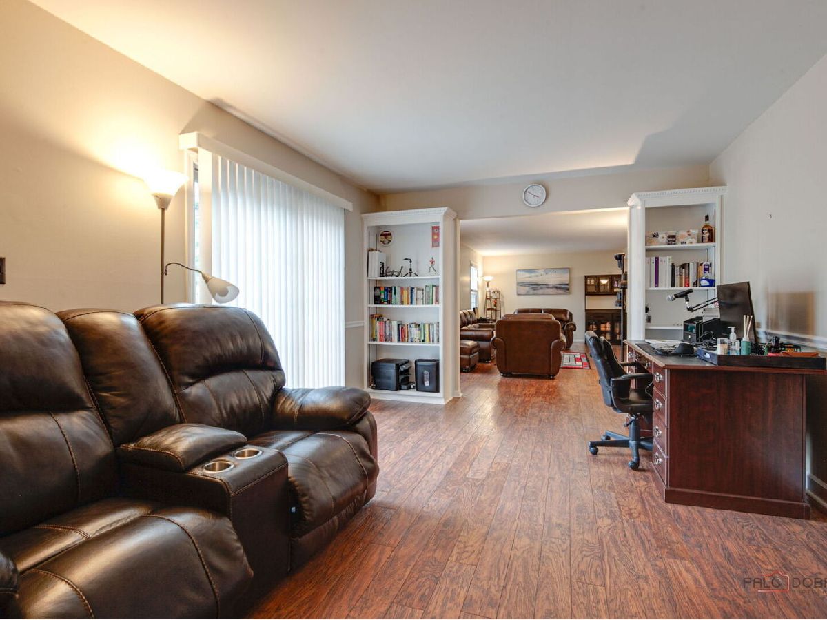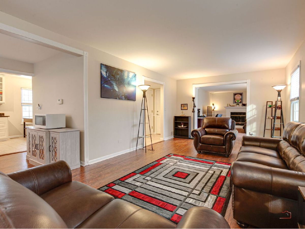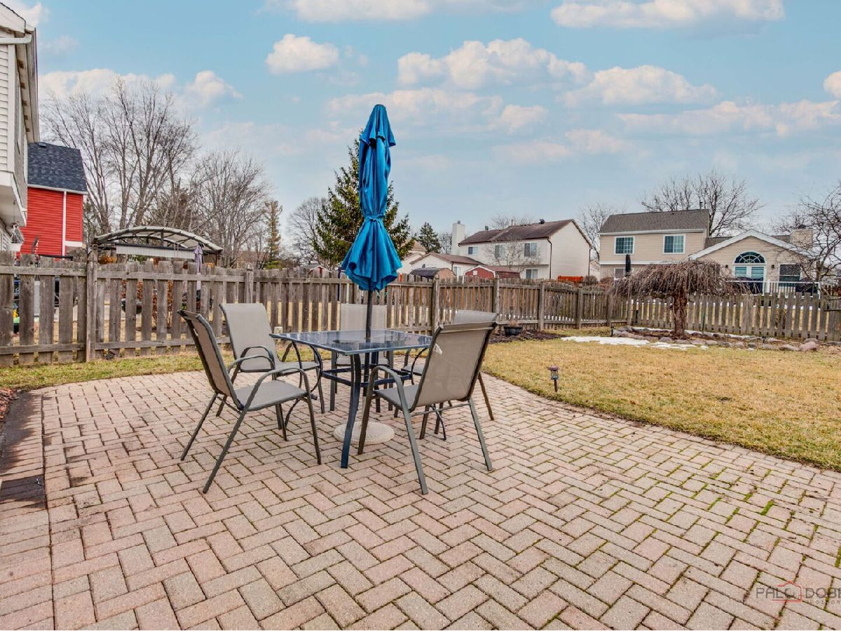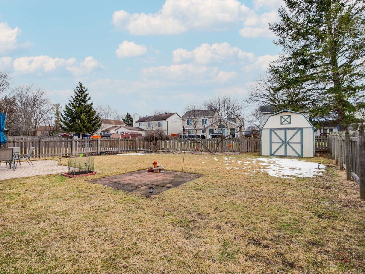 Located in award-winning Vernon Hills School Districts 73 & 128, this charming 4-bedroom, 2.1-bath home welcomes you with a covered front porch and an easy, flowing floor plan. The living and dining rooms feature gleaming hardwood-style laminate floors and elegant crown molding. The updated eat-in kitchen offers granite countertops, stainless steel appliances, and custom cabinetry. A spacious family room includes a cozy fireplace and opens to the patio and large, fenced backyard-perfect for entertaining or relaxing. The primary suite features a professionally organized walk-in closet, while the oversized second bedroom also includes a walk-in closet. The finished basement is ideal for a home theater and includes raised wood floors with mirrors for a workout or flex space, a separate laundry area with an additional pantry, and abundant storage throughout.Enjoy a park just steps away and a convenient location close to shopping, grocery stores, and Metra station