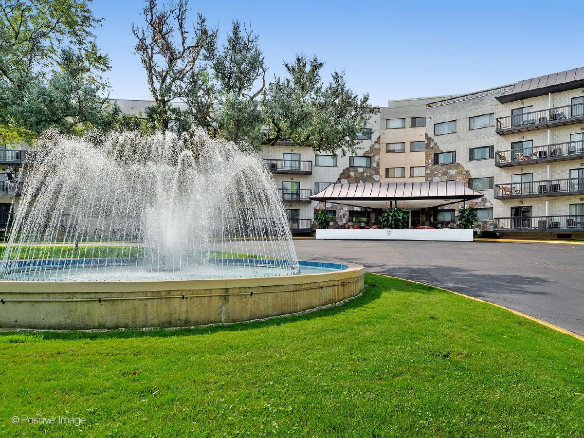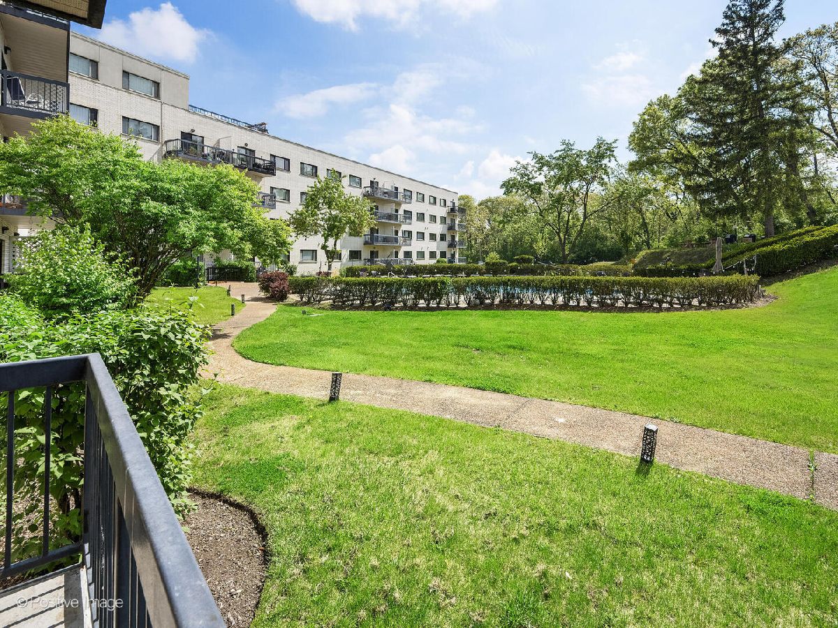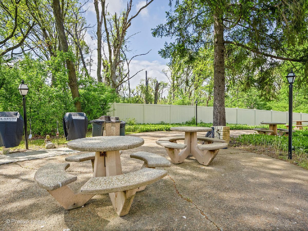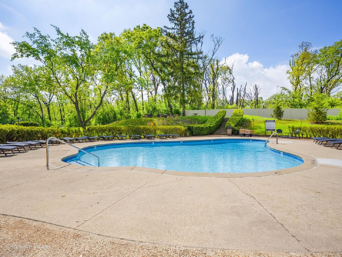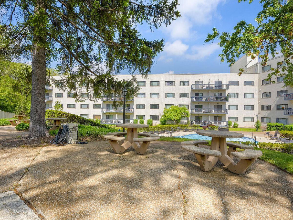 Fantastic two bedroom, two bath condo completely renovated in 2018 with desirable open floor plan and pool views! This first-floor unit features a large living room with recessed lighting and sliding glass door to a private balcony overlooking the association pool and grilling area. This open concept living space also offers options for different dining areas, laminate wood floors and a classic white kitchen with subway tiles and stainless-steel appliances. Two spacious bedrooms both with neutral carpet and two renovated baths both with designer tiles, new vanities and fixtures. The private primary suite features in-unit laundry, a separate closet and one of the two full baths. The second bedroom offers a large walk-in closet with a custom organizer. New electric furnace (2023) and new central air conditioning condenser (2023). The building features an outdoor recreation area with new gas grills, an outdoor inground pool with direct access from the lower-level which also includes a workout facility, laundry room and communal bathrooms with showers. The covered front entry provides an easy drop-off and pick-up area and the large two story lobby is the perfect spot to welcome guests. The building is located right next to a forest preserve with direct access to walking trails. There are raised gardening beds for community use. Enjoy maintenance-free living with easy access to shopping, both airports, expressways and award-winning Lyons Township High School!