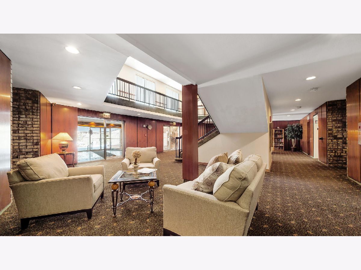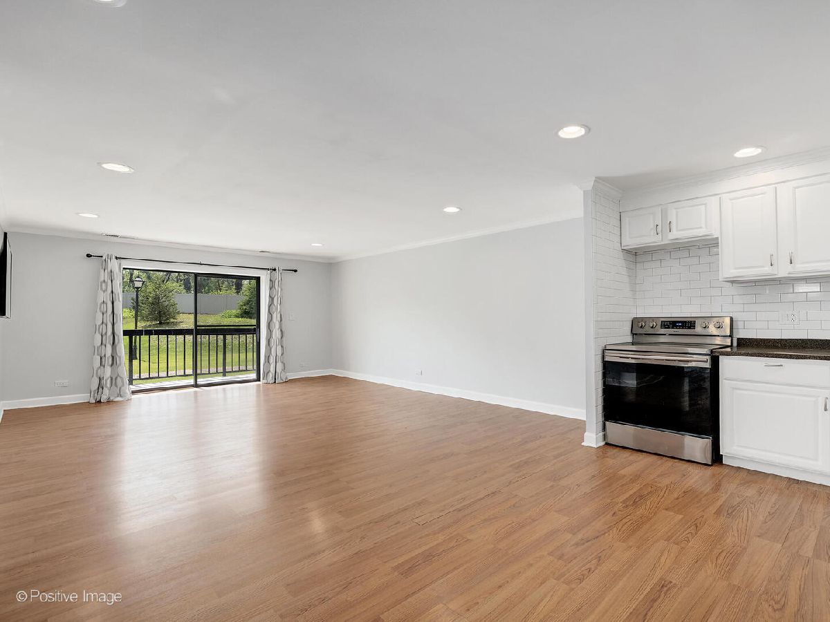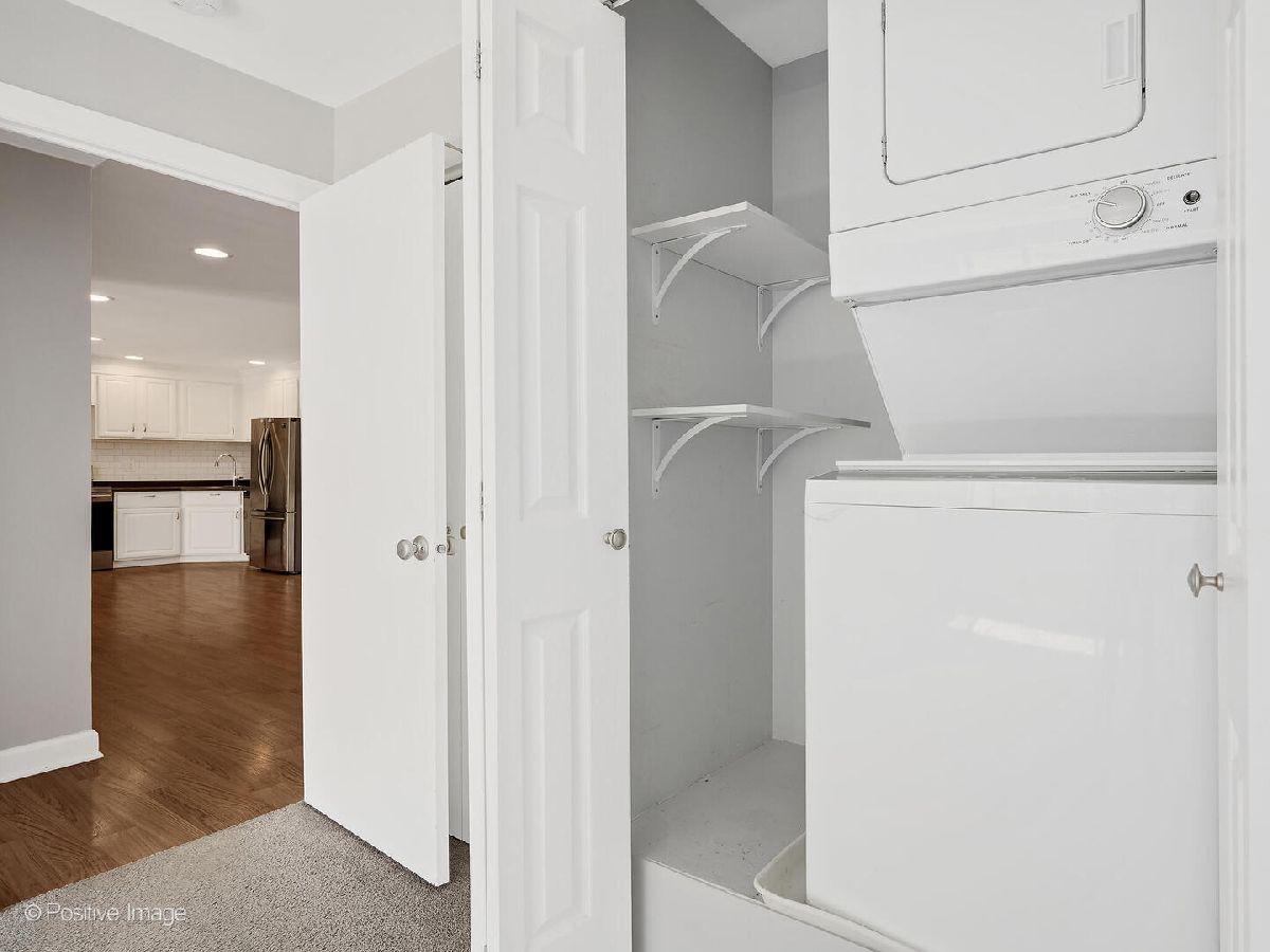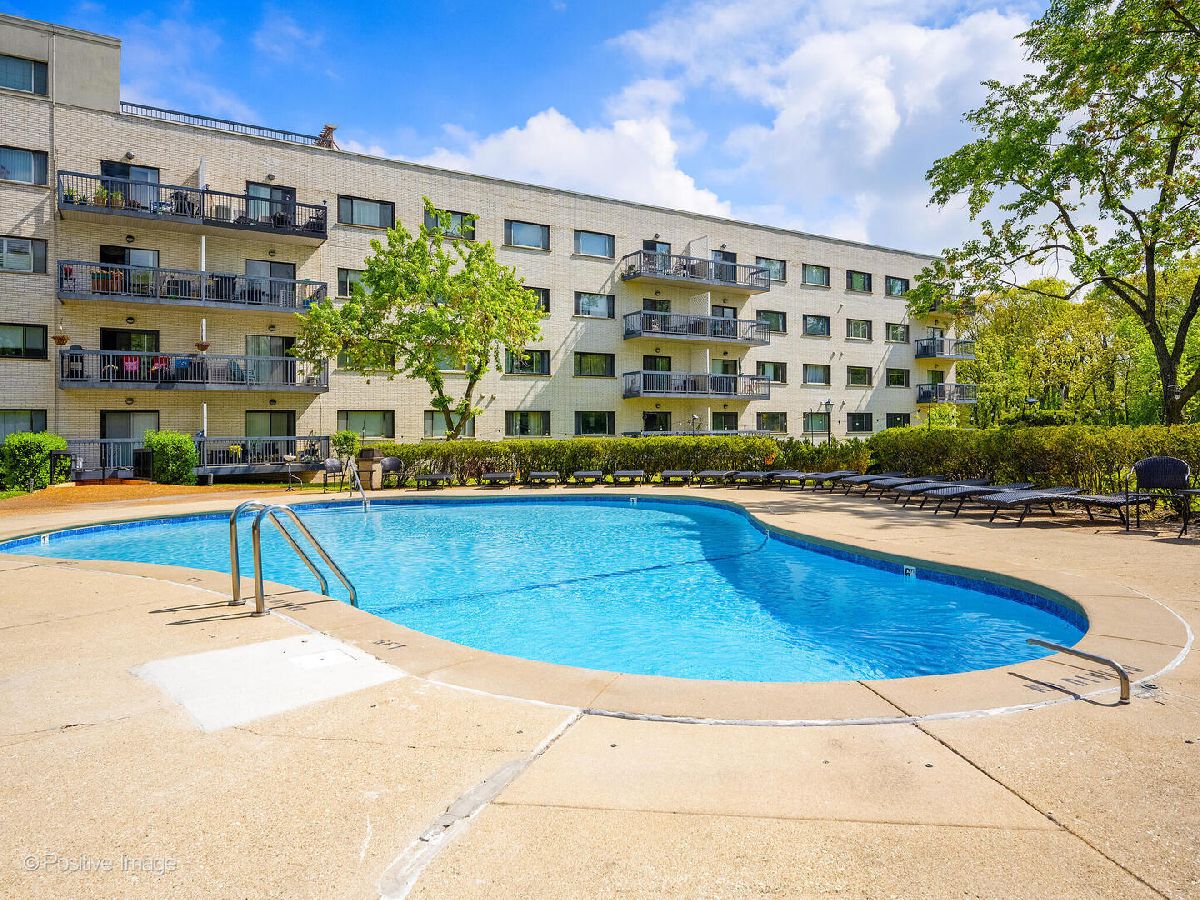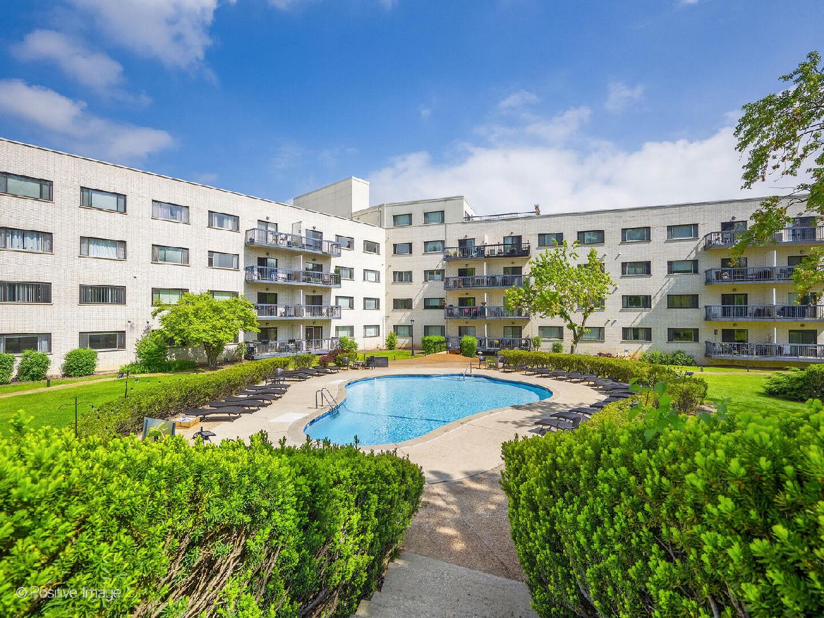 Fantastic two bedroom, two bath condo completely renovated in 2018 with desirable open floor plan and pool views! This first-floor unit features a large living room with recessed lighting and sliding glass door to a private balcony overlooking the association pool and grilling area. This open concept living space also offers options for different dining areas, laminate wood floors and a classic white kitchen with subway tiles and stainless-steel appliances. Two spacious bedrooms both with neutral carpet and two renovated baths both with designer tiles, new vanities and fixtures. The private primary suite features in-unit laundry, a separate closet and one of the two full baths. The second bedroom offers a large walk-in closet with a custom organizer. New electric furnace (2023) and new central air conditioning condenser (2023). The building features an outdoor recreation area with new gas grills, an outdoor inground pool with direct access from the lower-level which also includes a workout facility, laundry room and communal bathrooms with showers. The covered front entry provides an easy drop-off and pick-up area and the large two story lobby is the perfect spot to welcome guests. The building is located right next to a forest preserve with direct access to walking trails. There are raised gardening beds for community use. Enjoy maintenance-free living with easy access to shopping, both airports, expressways and award-winning Lyons Township High School!