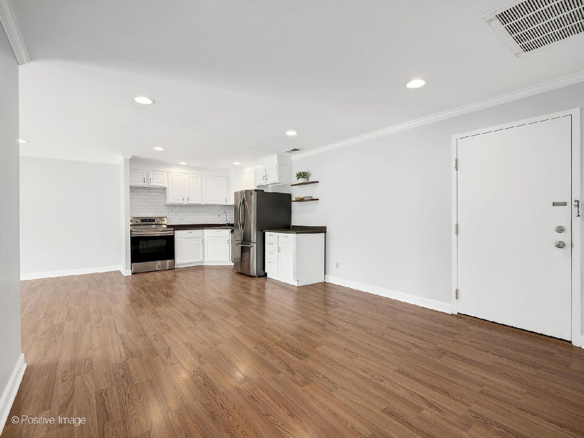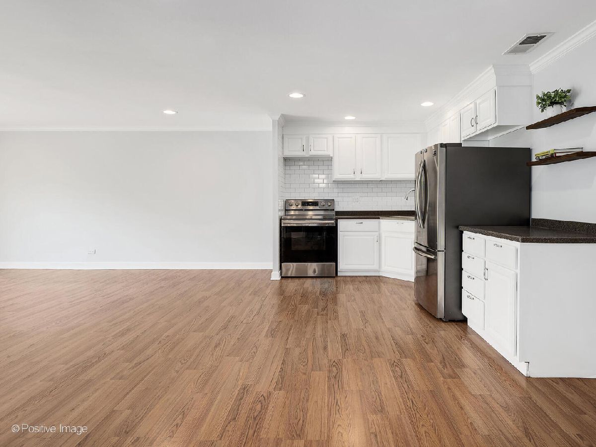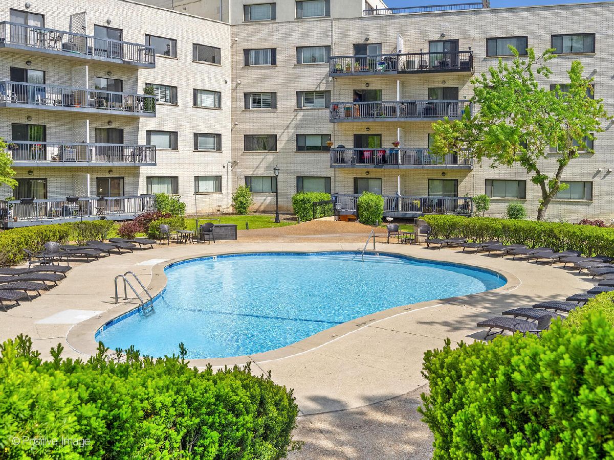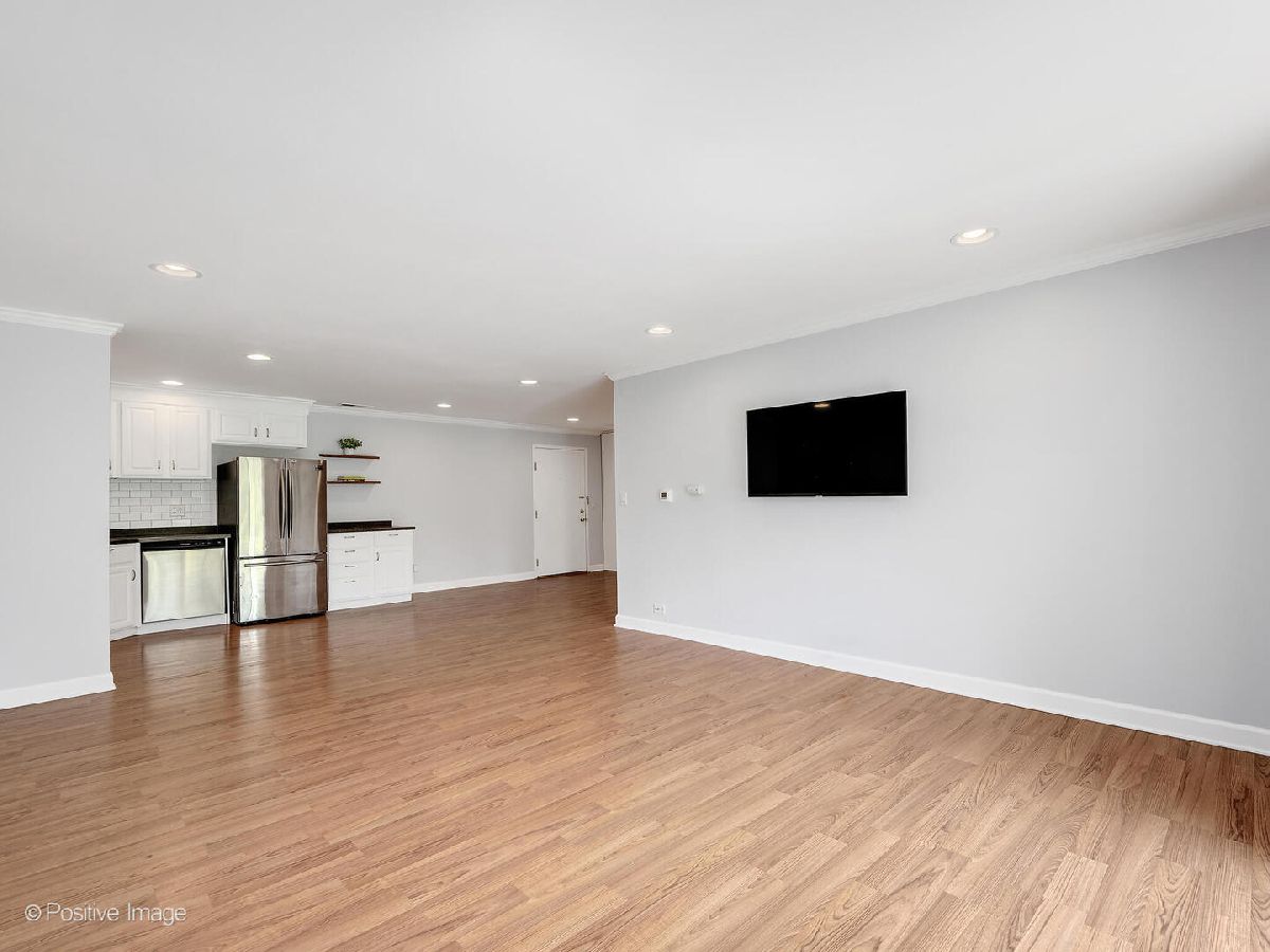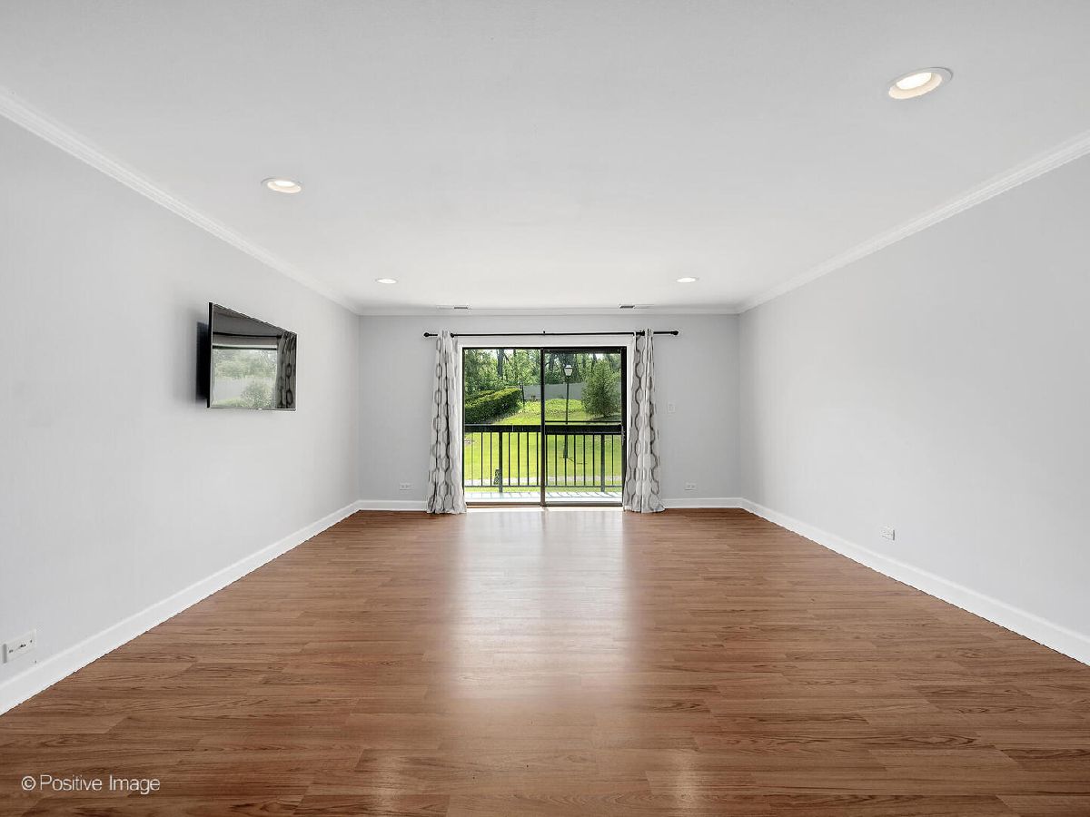 Fantastic two bedroom, two bath condo completely renovated in 2018 with desirable open floor plan and pool views! This first-floor unit features a large living room with recessed lighting and sliding glass door to a private balcony overlooking the association pool and grilling area. This open concept living space also offers options for different dining areas, laminate wood floors and a classic white kitchen with subway tiles and stainless-steel appliances. Two spacious bedrooms both with neutral carpet and two renovated baths both with designer tiles, new vanities and fixtures. The private primary suite features in-unit laundry, a separate closet and one of the two full baths. The second bedroom offers a large walk-in closet with a custom organizer. New electric furnace (2023) and new central air conditioning condenser (2023). The building features an outdoor recreation area with new gas grills, an outdoor inground pool with direct access from the lower-level which also includes a workout facility, laundry room and communal bathrooms with showers. The covered front entry provides an easy drop-off and pick-up area and the large two story lobby is the perfect spot to welcome guests. The building is located right next to a forest preserve with direct access to walking trails. There are raised gardening beds for community use. Enjoy maintenance-free living with easy access to shopping, both airports, expressways and award-winning Lyons Township High School!
