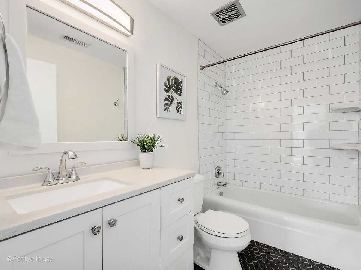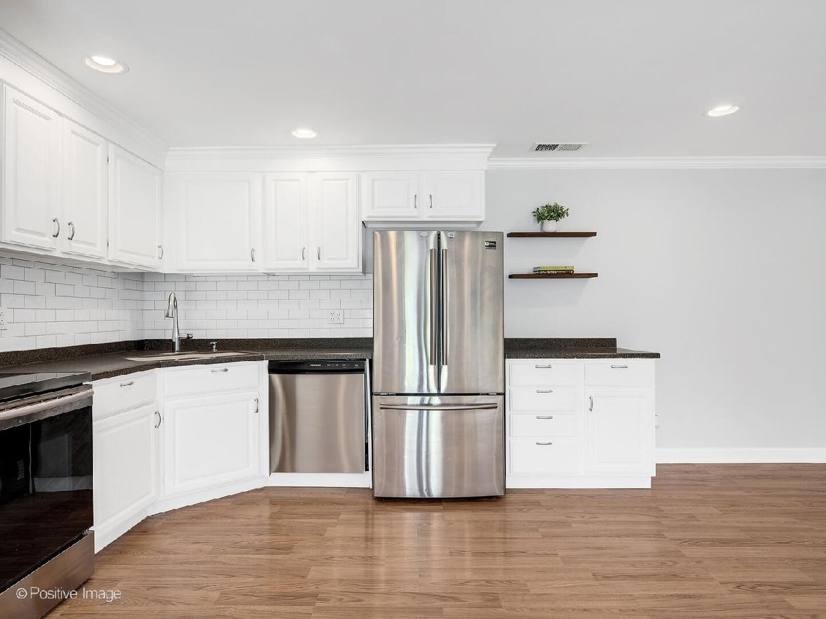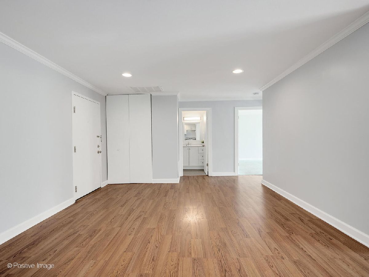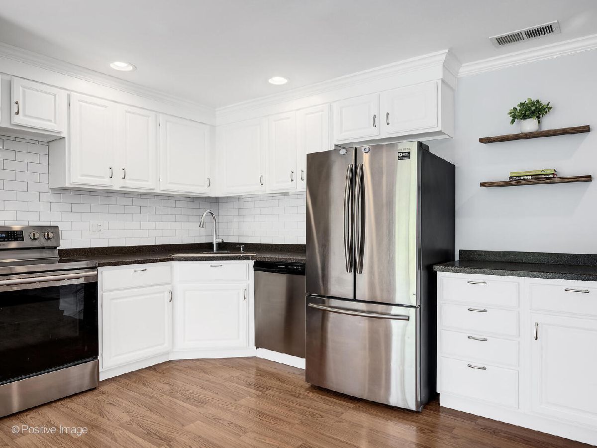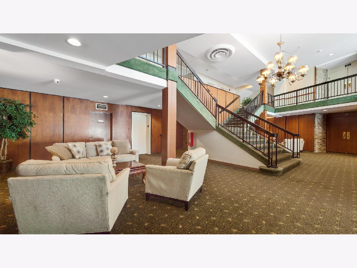 Fantastic two bedroom, two bath condo completely renovated in 2018 with desirable open floor plan and pool views! This first-floor unit features a large living room with recessed lighting and sliding glass door to a private balcony overlooking the association pool and grilling area. This open concept living space also offers options for different dining areas, laminate wood floors and a classic white kitchen with subway tiles and stainless-steel appliances. Two spacious bedrooms both with neutral carpet and two renovated baths both with designer tiles, new vanities and fixtures. The private primary suite features in-unit laundry, a separate closet and one of the two full baths. The second bedroom offers a large walk-in closet with a custom organizer. New electric furnace (2023) and new central air conditioning condenser (2023). The building features an outdoor recreation area with new gas grills, an outdoor inground pool with direct access from the lower-level which also includes a workout facility, laundry room and communal bathrooms with showers. The covered front entry provides an easy drop-off and pick-up area and the large two story lobby is the perfect spot to welcome guests. The building is located right next to a forest preserve with direct access to walking trails. There are raised gardening beds for community use. Enjoy maintenance-free living with easy access to shopping, both airports, expressways and award-winning Lyons Township High School!