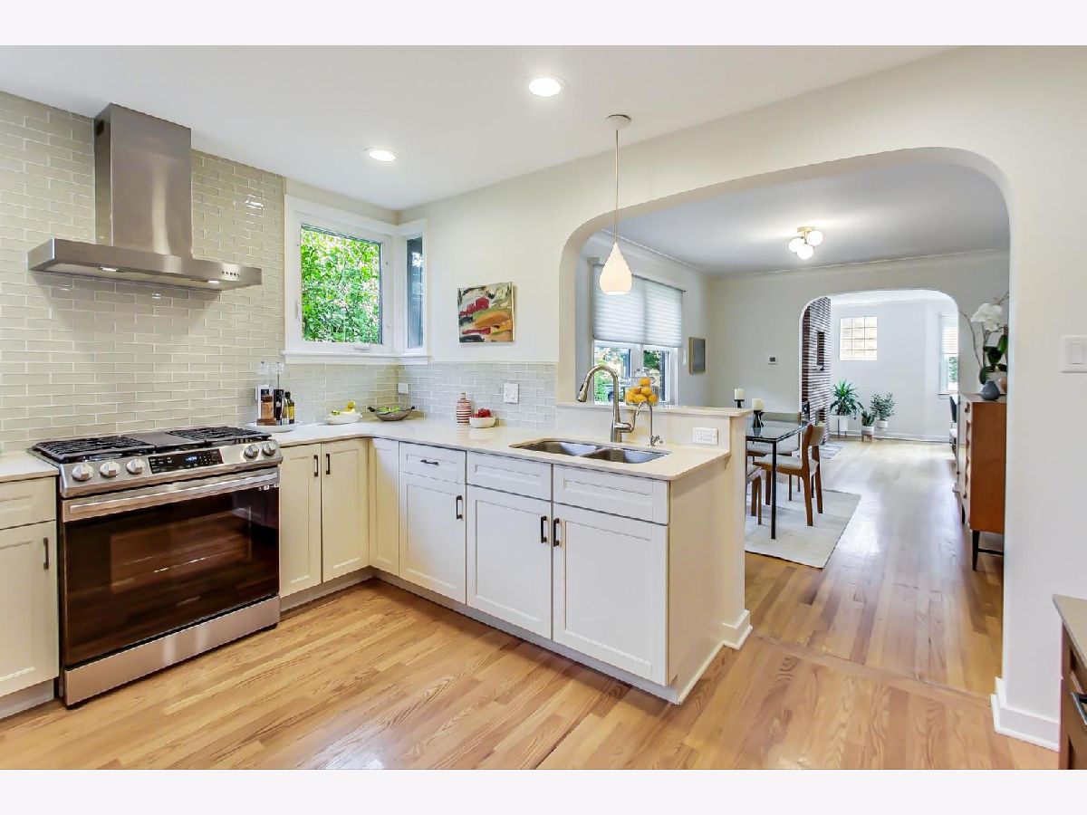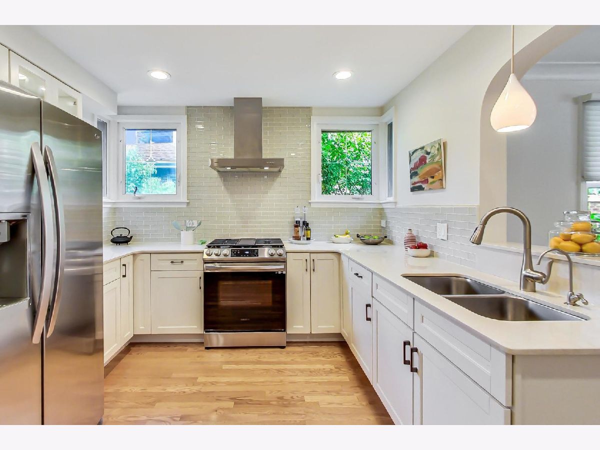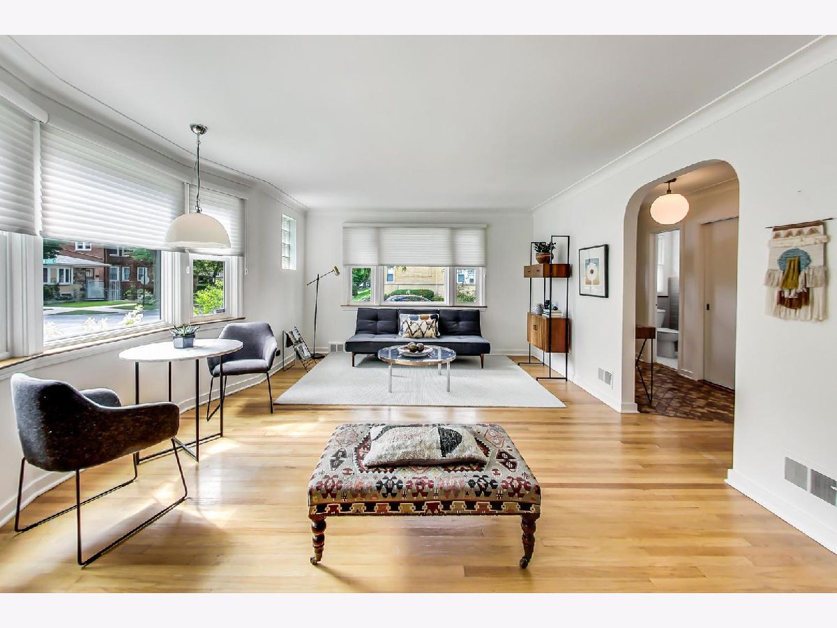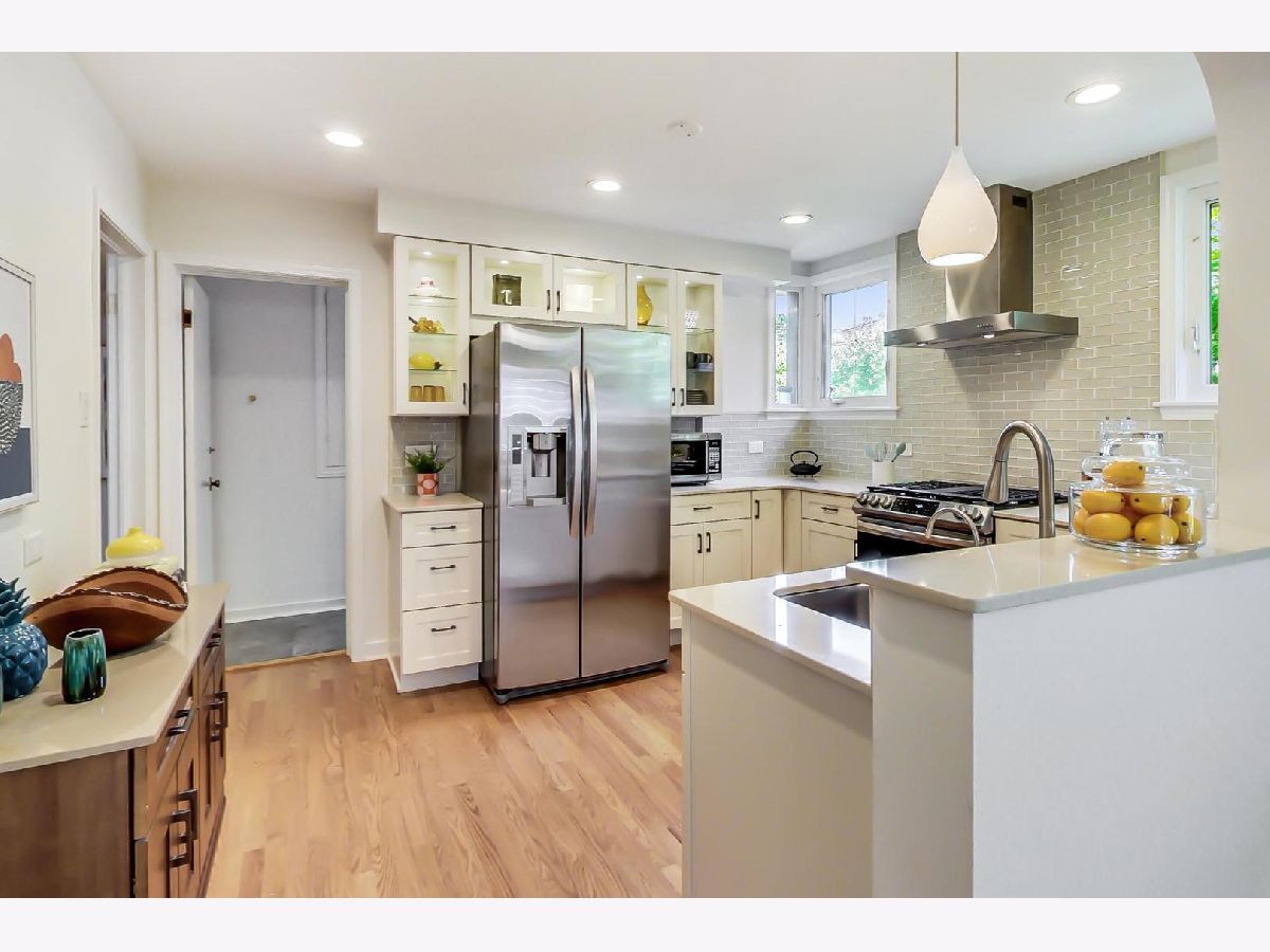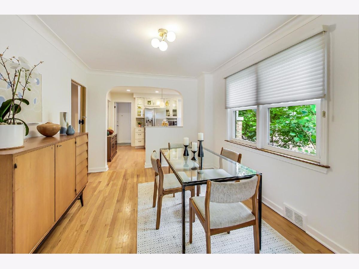Masterfully updated 4 bedroom, 2.5 bath mid-century ranch on an extra wide(42.8' x 124.8') corner lot in West Ridge! The main level features hardwood floors throughout, organized closets, a cedar closet, three bedrooms, an updated powder room and full bath with the original tile with new sink, toilet and flooring(2018). The home is bathed in light due to the unobstructed southern exposure. The spacious living room has a brick decorative fireplace with loads of windows and is adjacent to the formal dining room. The kitchen has quartz counters, soft close drawers, stainless refrigerator by LG, new gas oven by Samsung(2022), a new water filtration system(2022), new disposal(2022) and a gorgeous glass subway tile backsplash(2022). The recently remodeled basement(2018) includes a family room with a wet bar, wine refrigerator, a bedroom with a generous organized closet, a luxurious ensuite bathroom with walk-in shower, a laundry room that has a handsome stainless steel sink and loads of storage. Other features include: new windows(2015), new roof on house and garage(2019), landscaping by Plantings, hardscaping by Nature's Perspective, and sump pump(2022). Much of the plumbing and electric have been replaced. The professionally landscaped backyard and garden boasts a large patio, a new gas grill(2022) and is fenced. Truly a 'turn key' home! Located less than five blocks from beautiful Indian Boundary Park, Warren Park, Robert A. Black Golf Course, the new Chicago Public Library, dining and shopping!