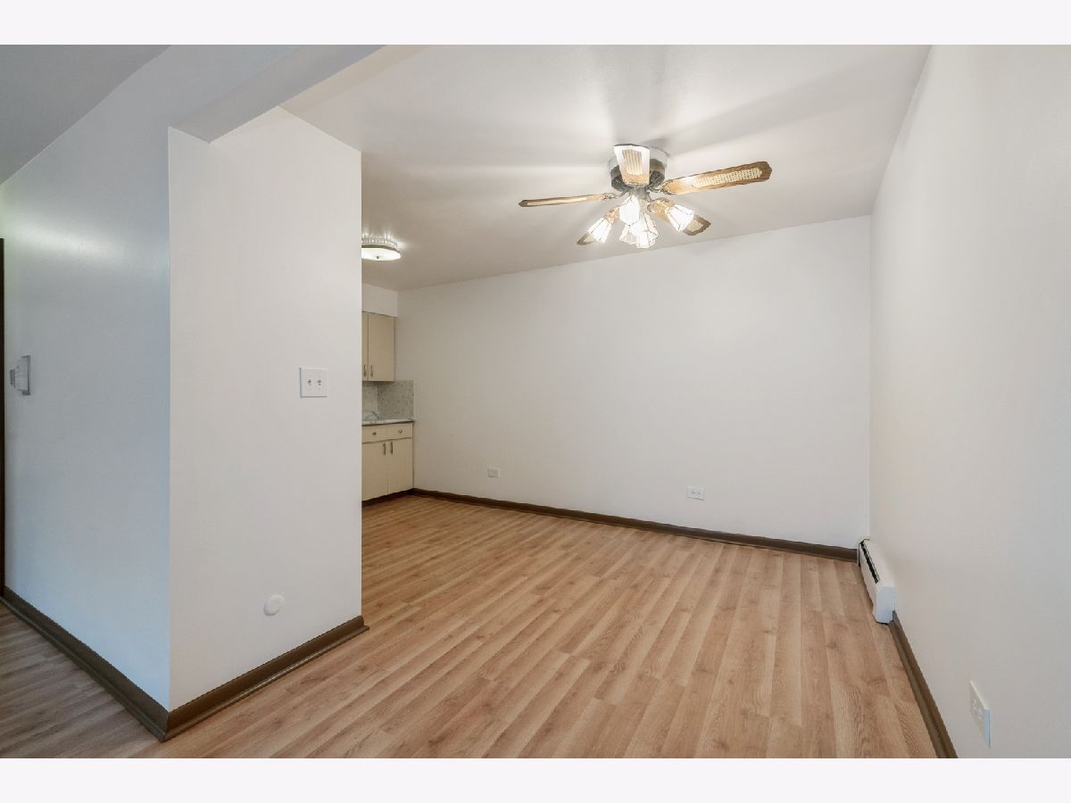 Great Location, Private balcony and CTA stop right out front to boot for easy commuting access to shopping, restaurants, or work. 2 Large bedrooms with new laminate floor throughout, Big closet's with plenty of storage space and additional basement storage, private 1 car parking space # 9 included. Laundry facility on site. Property is not FHA approved. The assessments include Heat, Water, Gas, Common, Exterior, Snow, Scavenger. Make this home!!