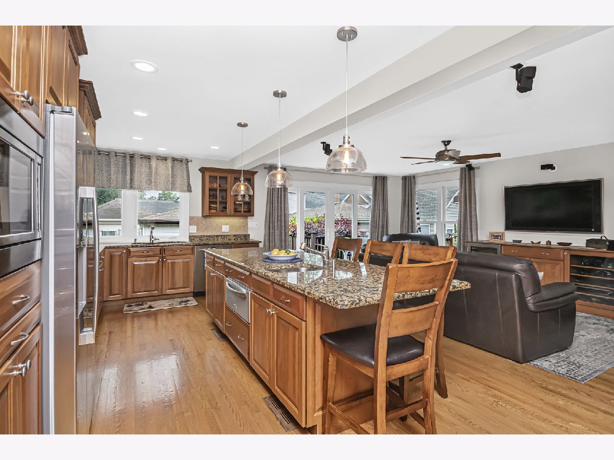 Location, location, location! This Old Norwood Park all brick Georgian was more than doubled in size with a professionally designed addition. The original charm is evident in the living room, natural stone fireplace, hardwood floors and dining room as you flow into the amazing open concept kitchen and family room. Special features include...all Marvin windows/patio door, a huge custom kitchen with cherry cabinetry, soft close doors/drawers, stainless steel appliances with double ovens and warming drawer, granite countertops, 10-foot island with a breakfast bar, built-in china cabinet/coffee bar. The 55" Sony TV with Bose surround sound speakers, mounted in the family room, has a built-in component cabinet below and a beverage center with a Sub-Zero refrigerator. A 4-panel glass patio door opens onto the Trex deck and backyard completing the entertainment space for your gatherings. The addition also created loads of closets and a spacious main floor laundry/mud room w/lockers. The 2nd floor won't disappoint...a primary bedroom suite, full bath w/all tile shower stall, multiple shower heads, dual vanities, a walk-in closet and a 4th bedroom/office/nursery were a part of the addition...the 2 original bedrooms and full bath complete this floor. The 1100 square foot lower level is a wow...a 2nd natural fireplace, brand new 3rd full bath and rough-in for a wet bar all await your finishing ideas. Norwood Park completes this neighborhood w/tennis, baseball, a dog park, an outdoor pool and a year 'round Chicago Blackhawks roller hockey rink. Come and see this loved, well-maintained home and enjoy this special place until your retirement, just like the current owners!