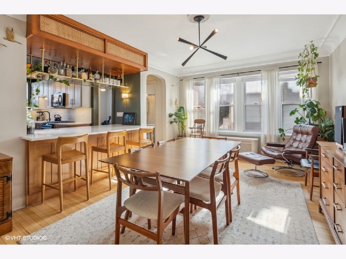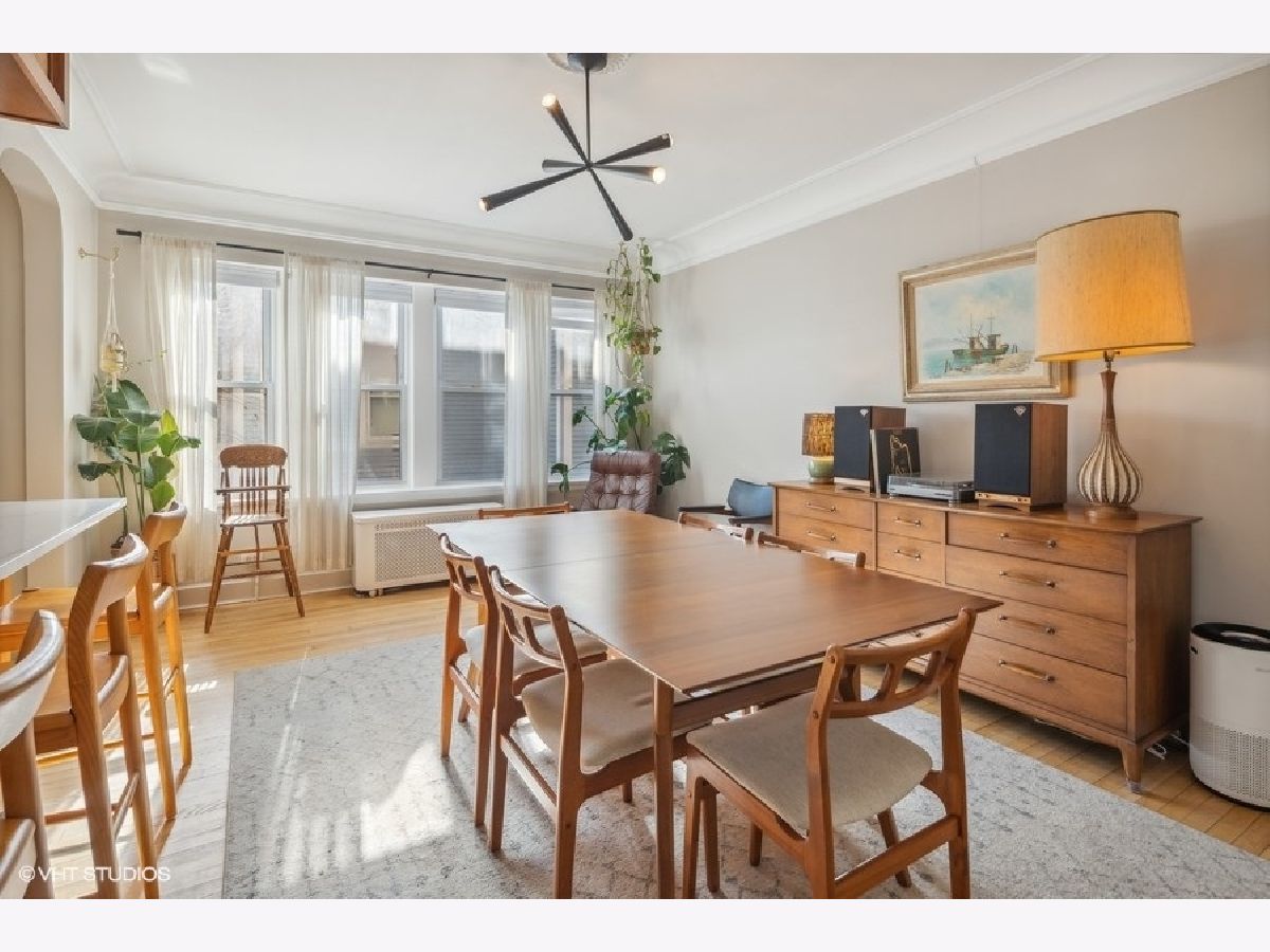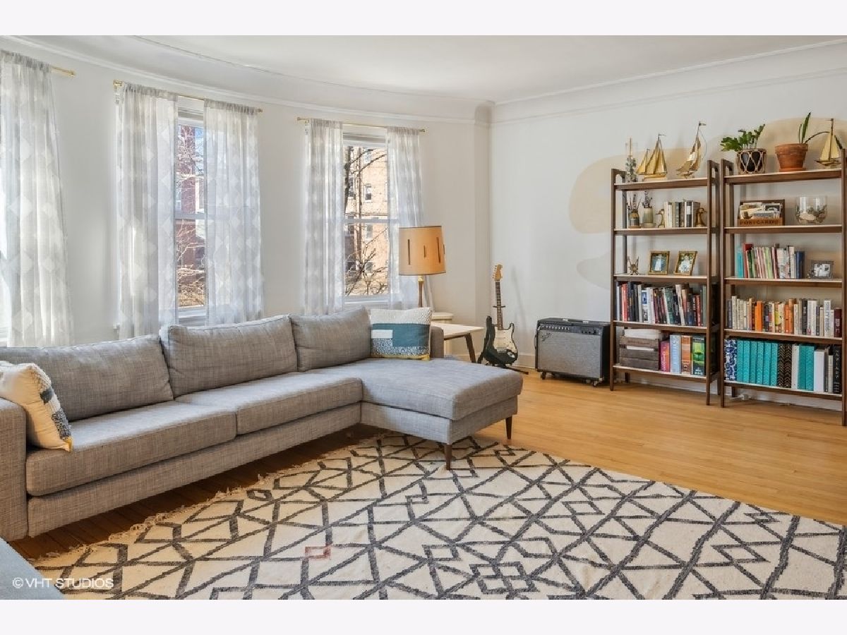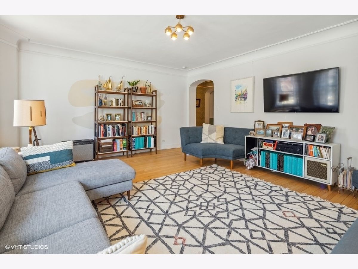 Beautiful 3 BR/2 BA condo in a charming and well-maintained vintage building in East Rogers Park! Upon entering the home, you will find a magnificent foyer and hallway with arched doorways, crown molding, and oak hardwood flooring throughout. The 1700 square foot floorplan features a spacious living room with an abundance of natural light from the West, East, and South exposures, a newly updated modern kitchen, a spacious primary bedroom, and a newly updated primary bathroom. With a kitchen that is open to the dining room, this space is ideal for entertaining guests, especially with the wonderful custom wood and brass hanging bar that connects the two areas. The kitchen is complete with quartz countertops, a breakfast bar, all new black stainless steel Samsung appliances, and all-new fixtures. 1 Exterior parking space and 1 storage cage are INCLUDED! Shared laundry is located in the basement. Fantastic location only 5 minutes from the beach! Also, close to the red line, and all Clark St. and Morse avenue have to offer!
