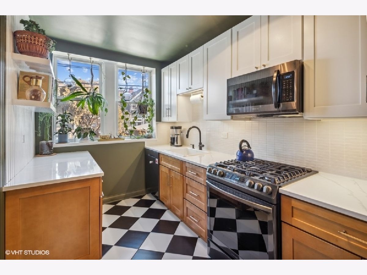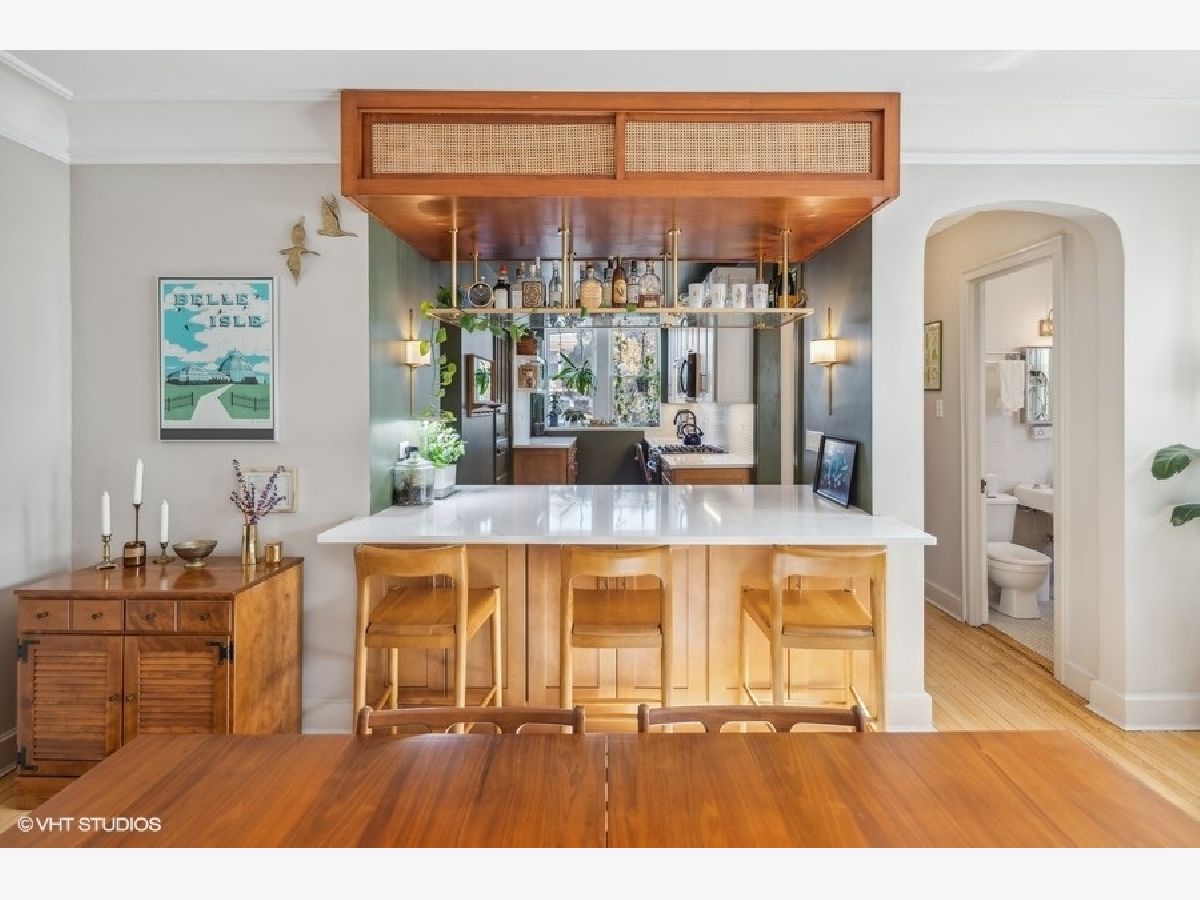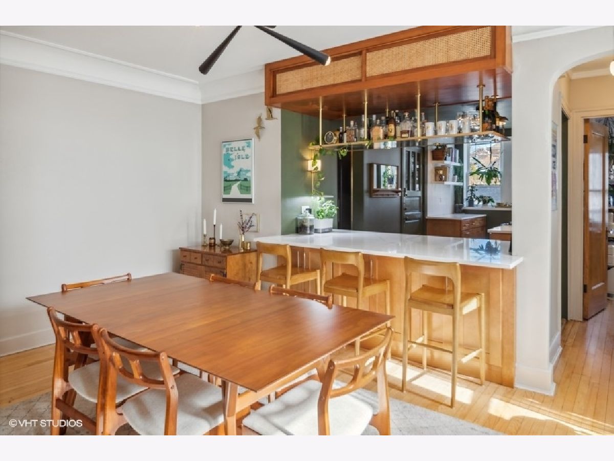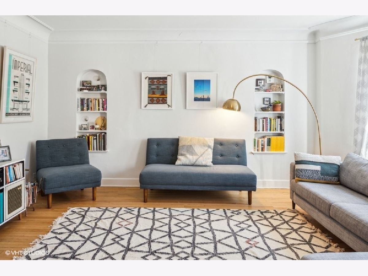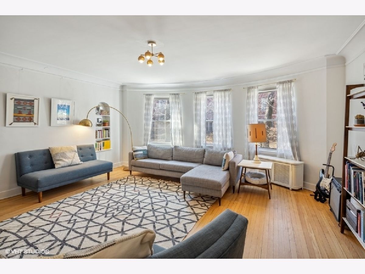 Beautiful 3 BR/2 BA condo in a charming and well-maintained vintage building in East Rogers Park! Upon entering the home, you will find a magnificent foyer and hallway with arched doorways, crown molding, and oak hardwood flooring throughout. The 1700 square foot floorplan features a spacious living room with an abundance of natural light from the West, East, and South exposures, a newly updated modern kitchen, a spacious primary bedroom, and a newly updated primary bathroom. With a kitchen that is open to the dining room, this space is ideal for entertaining guests, especially with the wonderful custom wood and brass hanging bar that connects the two areas. The kitchen is complete with quartz countertops, a breakfast bar, all new black stainless steel Samsung appliances, and all-new fixtures. 1 Exterior parking space and 1 storage cage are INCLUDED! Shared laundry is located in the basement. Fantastic location only 5 minutes from the beach! Also, close to the red line, and all Clark St. and Morse avenue have to offer!