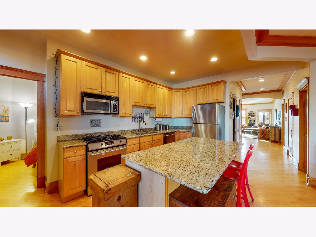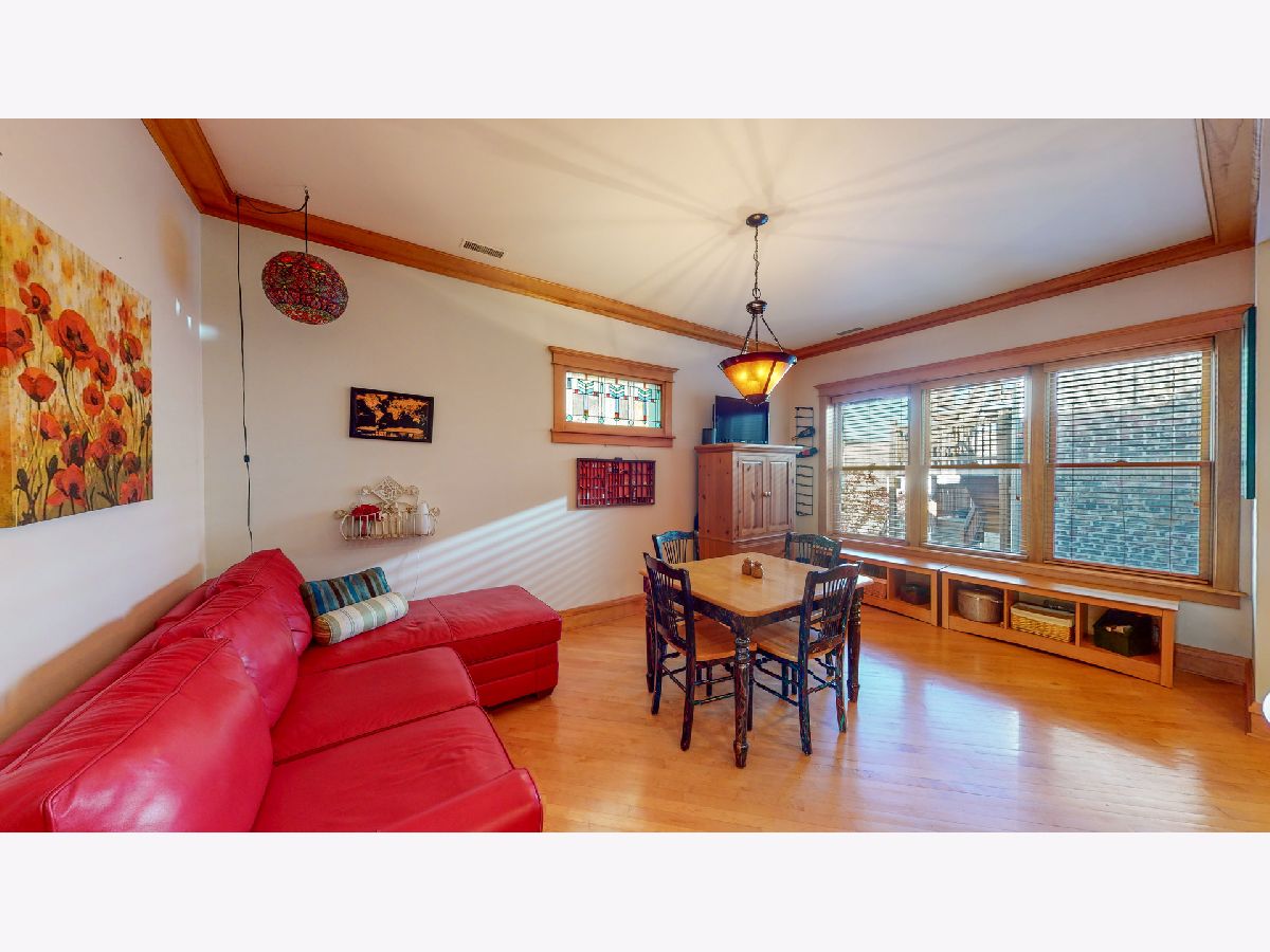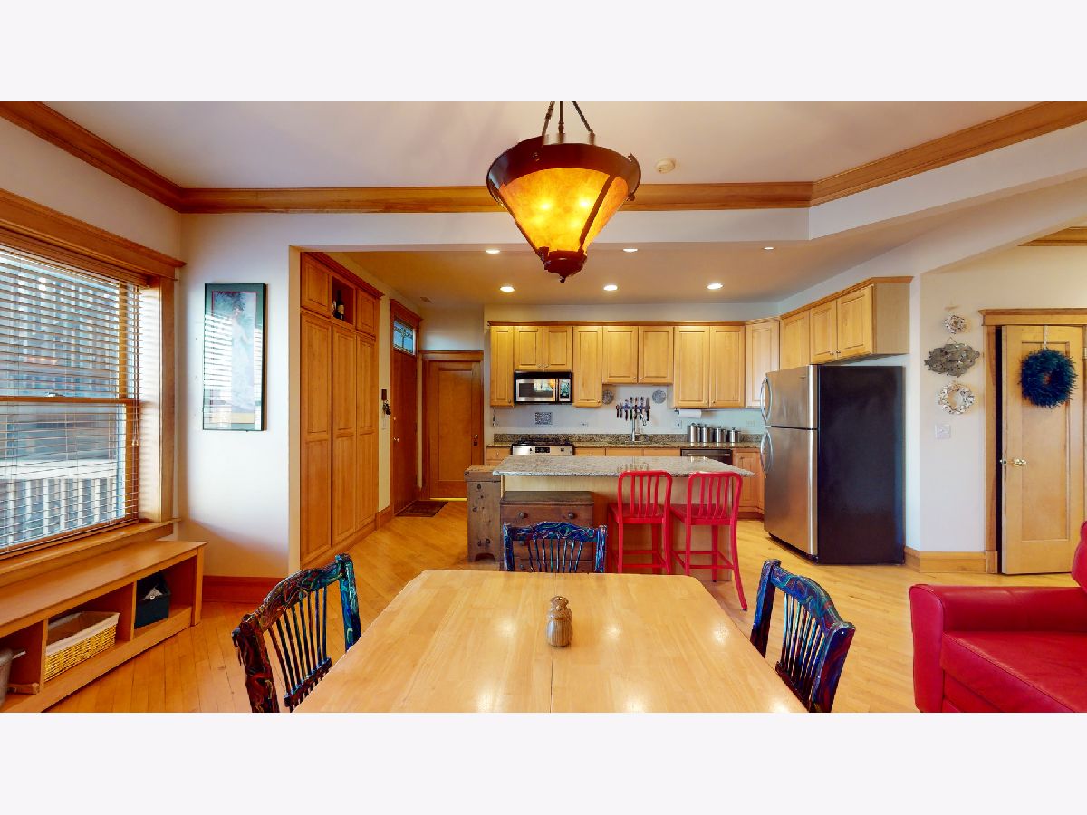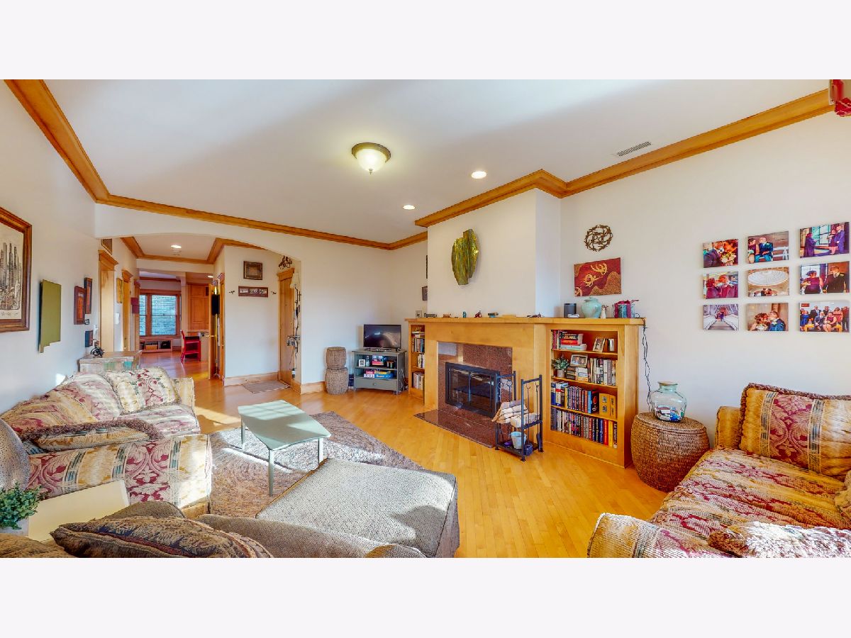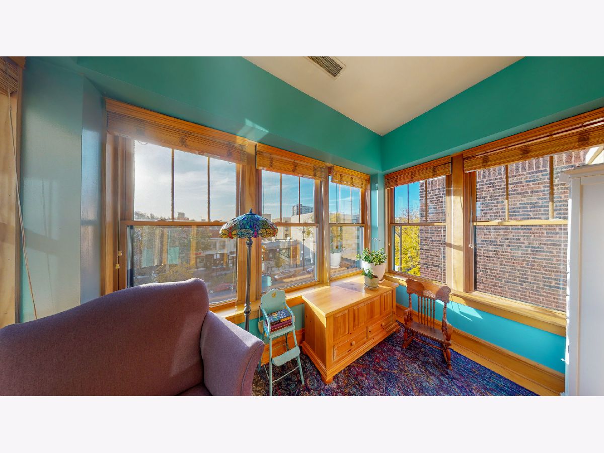 Stunning vintage 3 Bed / 2.5 Bath Penthouse Unit, featuring soaring 10 ft ceilings, hardwood floors, & crown molding throughout! Grand living room w/ wood burning fire place, built in shelving, west facing windows, & room for large sectional! Spacious Chefs Kitchen w/ adjoining dining area large enough to fit 10 seat dining room table. Granite countertops, huge island, stainless steel appliances, & built in pantry! IN UNIT LAUNDRY! Deck off of kitchen w/ room for seating, grill, & stairs up to ROOFTOP DECK! Or, sun yourself all winter long with the bright & cozy sunroom, accessible from master bedroom & living room. One Block Away from the Beach, 2 blocks from red line, CTA buses out door step. Car port rental parking 1 block away ~$170/mo. HOA includes internet!