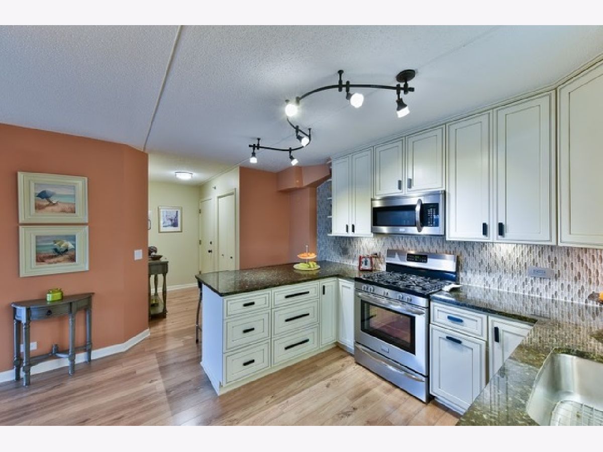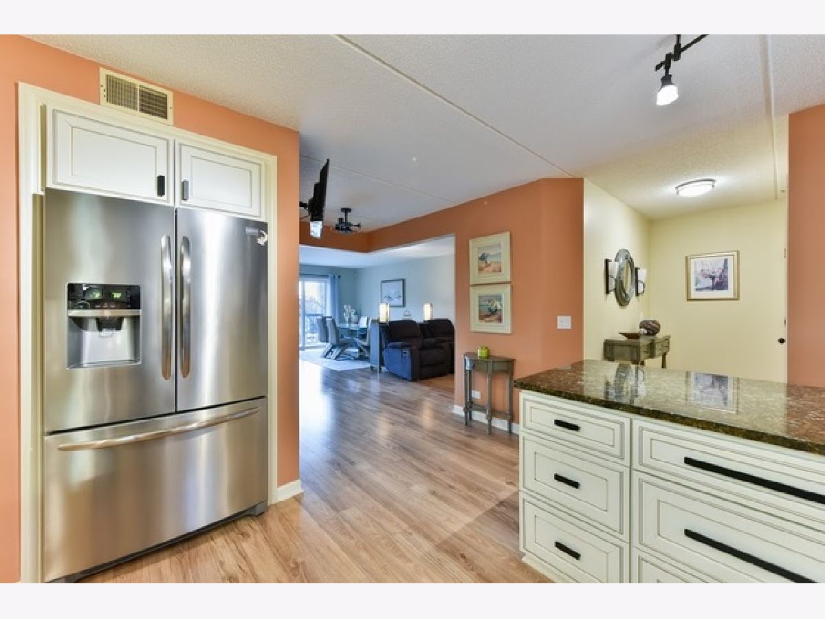 The Greens at Bunker Hill one of the most well taken care of properties in Niles features an amazingly freshly renovated 2 bed / 2 bath condo for immediate after closing possession. This immaculate, spacious unit with Western exposure contains beautifully remodeled kitchen with top of the line SS appliances,tons of cabinets /granite counter space leading to open living, dining and dinette area with double sliding door and a big sized private balcony. Separate door leads into the master suite with room for a king bed and much more....walk in closet, master bath with shower. All rooms freshly painted, the entire modern flooring was just installed, nothing was missed as far craftsmanship and details. The second bedroom or a den, an office and 2nd full bath seals the perfect deal along with in unit washer/dryer room with plenty of closets. This is a very quite and well maintained building: heated indoor garage space, storage area, library, exercise room and an elevator complete this peaceful condo to call your home. Plenty of guest parking in front of the building for everyone. Property is conveniently located between 90/94, CTA, Pace, grocery stores, and restaurants.