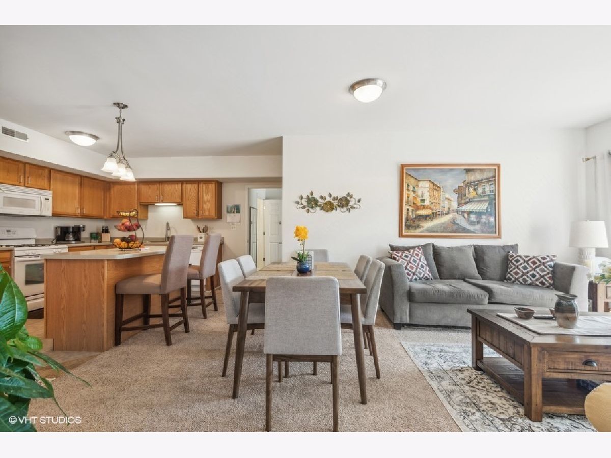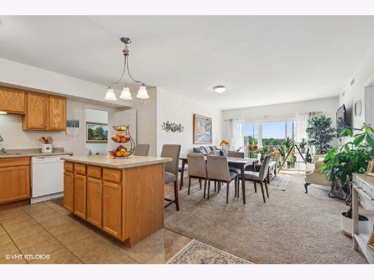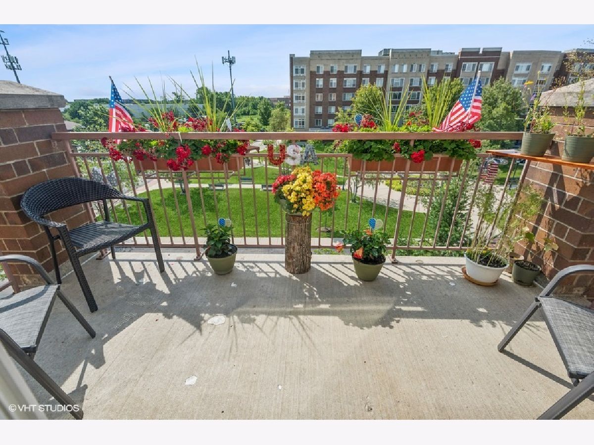 Discover this exquisite top floor unit in the Autumn Green Condominiums, a vibrant 55+ adult community. This spacious 2-bedroom, 2-bathroom offers a walk in shower in the primary bathroom for easy accessibility as well as in unit washer/dryer. Well maintained and constructed in 2005, this modern, low-maintenance building offers numerous amenities including lawn care, elevator, a heated garage and additional exterior parking. This open floor plan boasts a large kitchen with an island that faces the dining area, leading to your private balcony with unobstructed views of the courtyard and the distant city skyline. Enjoy the blend of comfort, convenience, and community at Autumn Green Condominiums located in the desirable Chicago Harwood Heights/Dunning neighborhood. This condominium offers convenient access to nearby stores and restaurants, all within walking distance. Close proximity to interstate 90 and O'Hare Airport for convenient travel.