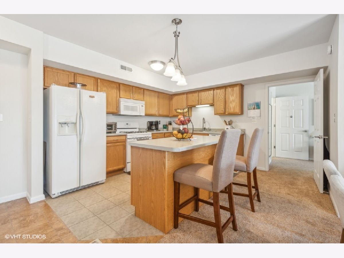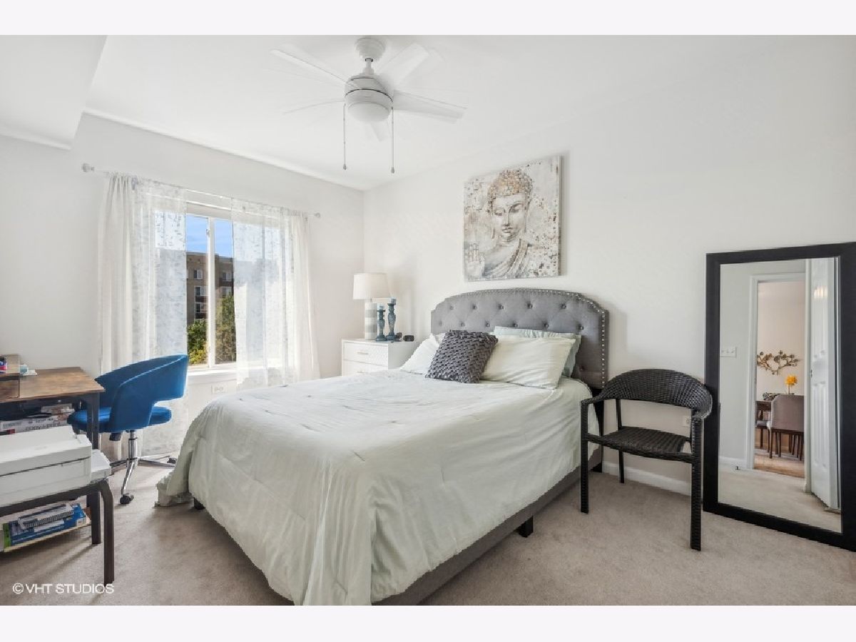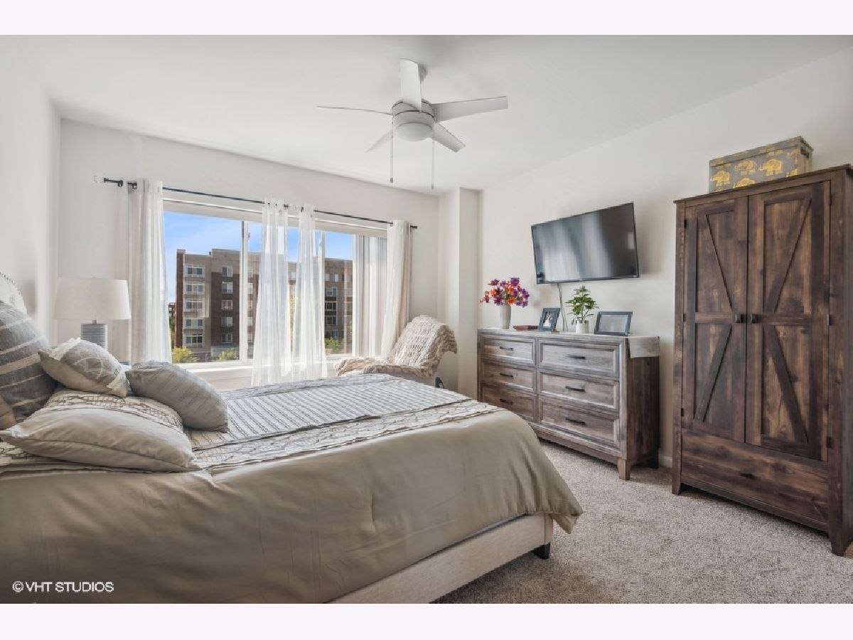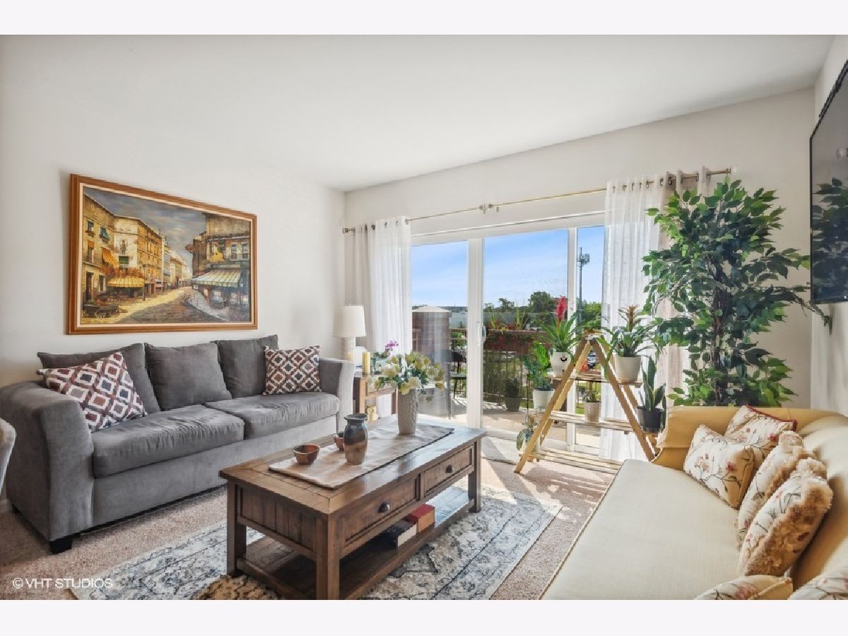 Discover this exquisite top floor unit in the Autumn Green Condominiums, a vibrant 55+ adult community. This spacious 2-bedroom, 2-bathroom offers a walk in shower in the primary bathroom for easy accessibility as well as in unit washer/dryer. Well maintained and constructed in 2005, this modern, low-maintenance building offers numerous amenities including lawn care, elevator, a heated garage and additional exterior parking. This open floor plan boasts a large kitchen with an island that faces the dining area, leading to your private balcony with unobstructed views of the courtyard and the distant city skyline. Enjoy the blend of comfort, convenience, and community at Autumn Green Condominiums located in the desirable Chicago Harwood Heights/Dunning neighborhood. This condominium offers convenient access to nearby stores and restaurants, all within walking distance. Close proximity to interstate 90 and O'Hare Airport for convenient travel.