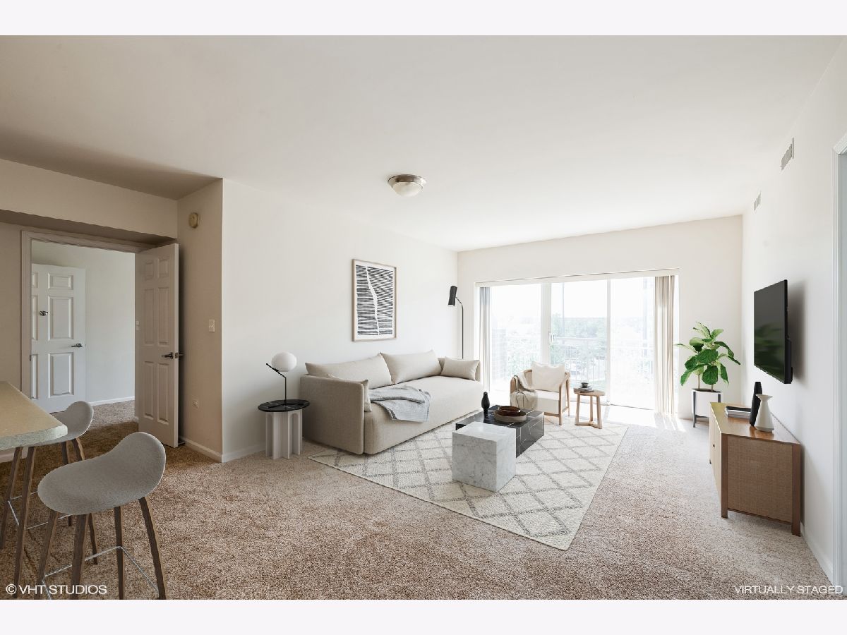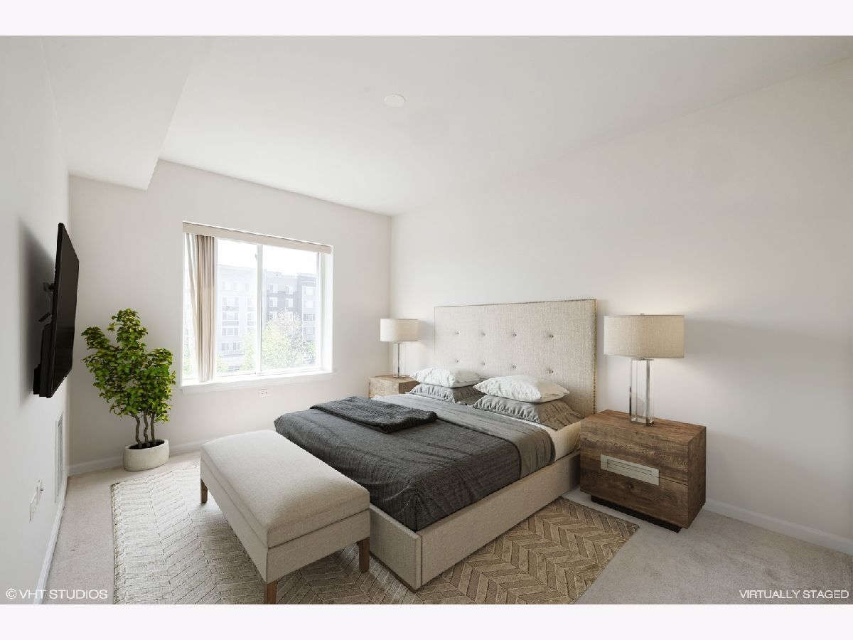 Available now, TOP FLOOR unit in the 55+ adult community of Autumn Green Condominiums. Just built in 2005 this low maintenance, elevator building has heated garage parking and additional exterior parking available. The freshly painted home features 2 bedrooms and 2 bathrooms, in-unit laundry, a primary bathroom with walk-in shower, open floor plan, large kitchen with island, large private balcony with unobstructed views facing the courtyard - you can even see the city skyline at a distance! All in the convenient location of the Chicago Harwood Heights/Dunning neighborhood. Close proximity to O'Hare, access to 90, walk to stores and restaurants.