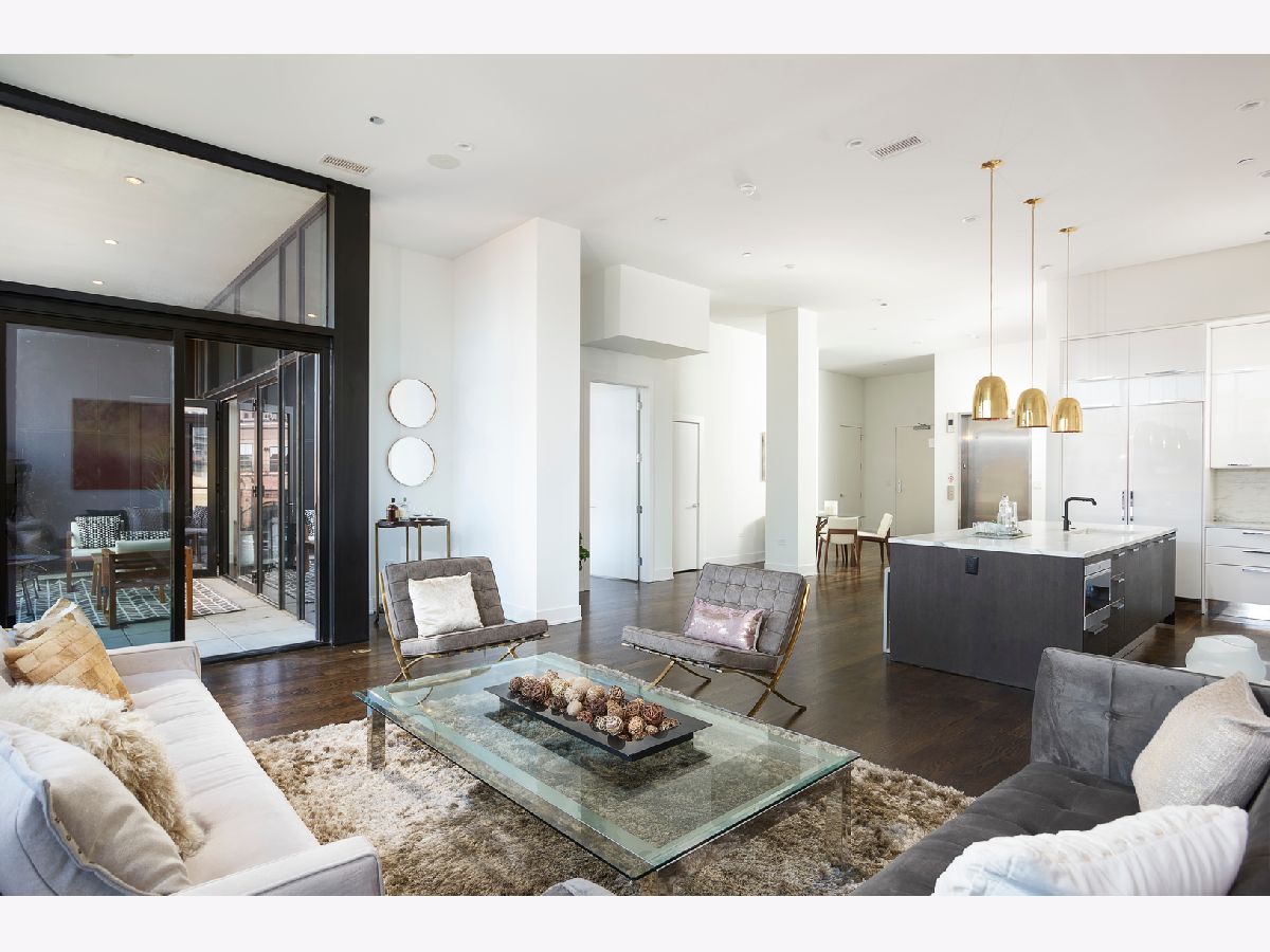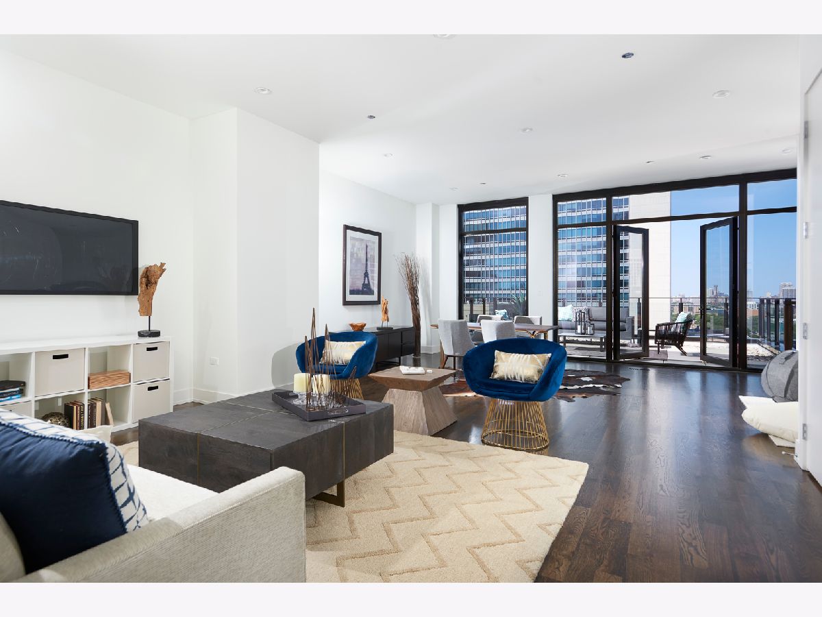 Located in a private, quiet, tree-lined enclave in River North, this tri-level penthouse residence lives like a single family home with all of the conveniences of a full amenity building. The massive open floor plan is ideal for entertaining. Private in-unit elevator accessible from lobby to 1st and 2nd floors in the unit. 3 bedrooms, 3.2 baths, high ceilings, high end finishes, large professional chef's kitchen, boasts open concept living, tons of natural light, multiple outdoor spaces including a massive outdoor terrace with city views! Located on the 2nd floor is an additional family room that is an ideal space for children at home that are e-learning or additional office space. 24-hour door staff and concierge, Ogden school district, a huge park, play area and dog park right located right out of your back door. Walk to restaurants, bars, boutiques, coffee shops and East Bank Club. Easy access to the highway. 2 garage parking spaces available. Move-in Ready!