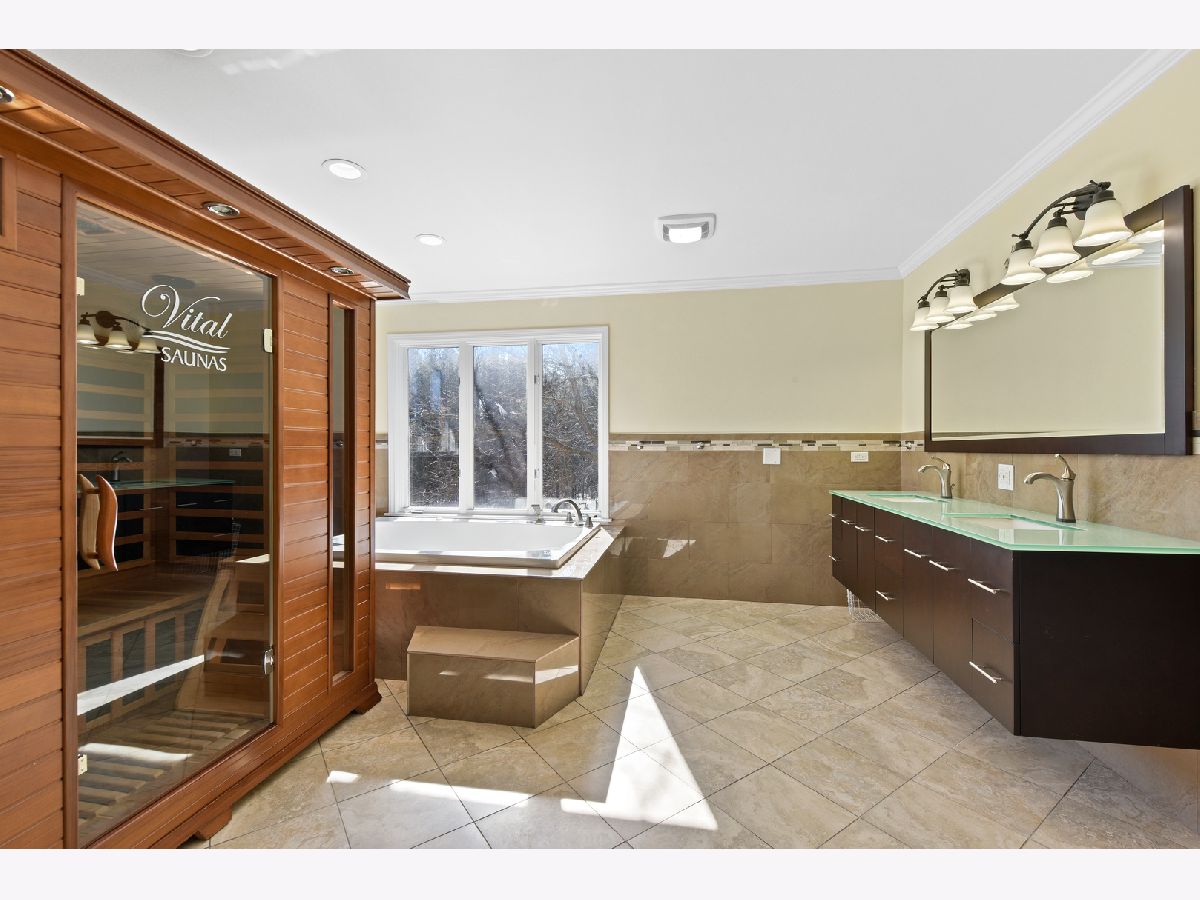 Be impressed as you enter the two story foyer graced with a grand spiral staircase adjoining the formal dining room and living room with its warm and inviting fireplace. Feel the quality in this stunning all brick beauty with hardwood floors throughout the first and second levels. An upgraded kitchen boasts granite, stainless & high end appliances. First floor guest suite could also double as an office. The second staircase is adjacent to the heated 3 car garage and leads to the conveniently located second floor laundry room. The upper level has 3 additional bedrooms with 2 full baths, upgraded within the last 6 years. The gorgeous master suite hosts a second fireplace, bay window and incredible spa like bathroom. Enjoy the hydro-massage over-sized tub, walk-in sauna & separate steam shower. Private room for toilet and bidet. Dual sinks & two walk-in closets complete the luxury feel. The lower level has two additional bedrooms, full updated bathroom, large cedar closet & massive rec room with wet bar. Realize the total entertaining potential as you continue out to the fully landscaped back yard. Children's playground, patio, two-tiered deck and private in-ground swimming pool for you to have the best summer ever! Lastly, the homeowners have fully updated the electrical system with two electrical boxes and have installed numerous canned lights and spotlighting to make this already sunny home feel even brighter. Two 70 Gallon hot water tanks. Enjoy your 2 plus acres overlooking a pond in the Stevenson High School District. Incredible Value Awaits You!!!