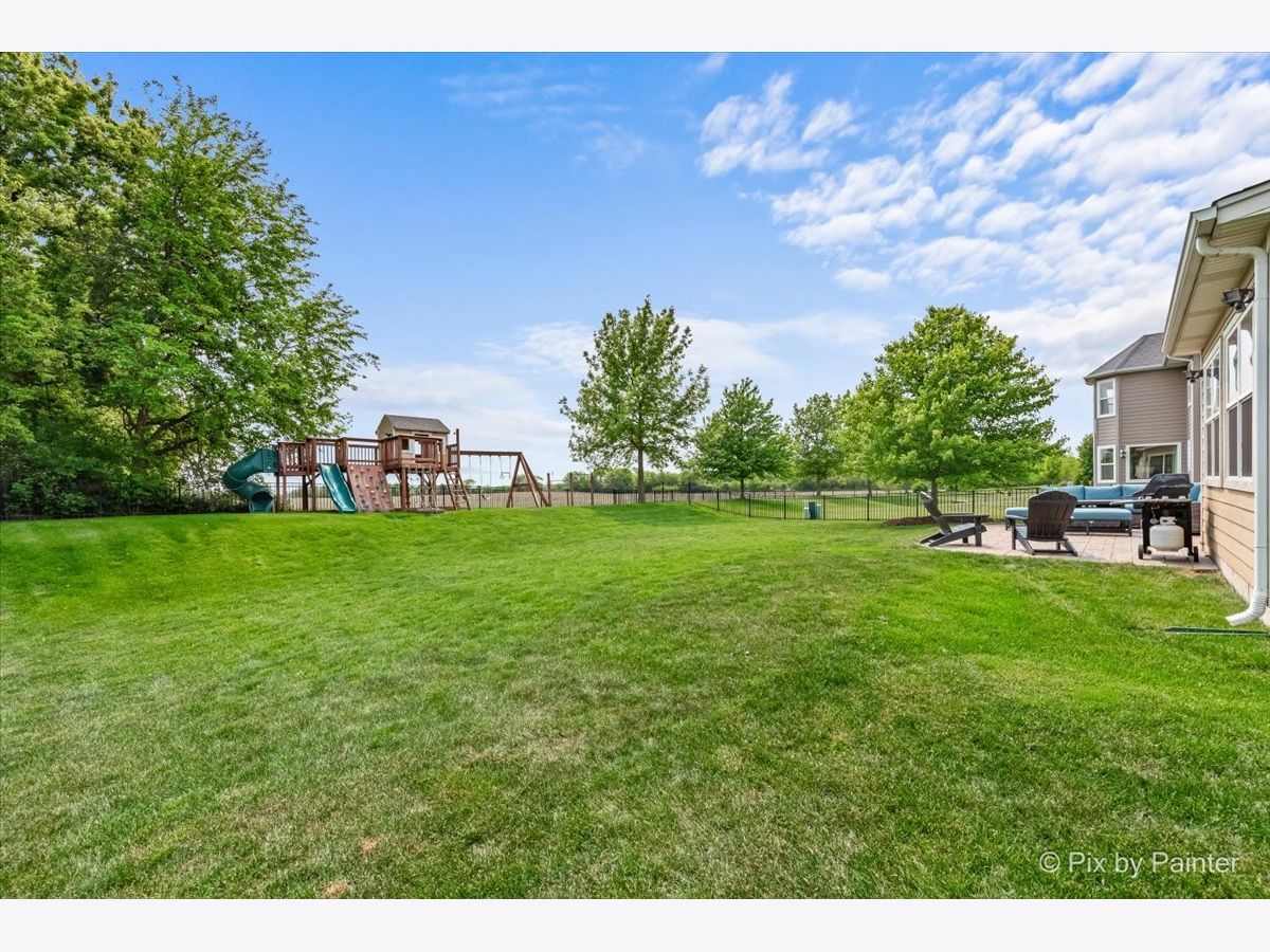 Welcome to 679 Slate Run - a beautifully updated 5-bedroom, 3.5-bathroom home with a sunny breakfast room and a 3-car garage, located in the desirable Highland Woods neighborhood! This move-in ready Overstreet Richmond Model showcases rich hardwood floors and a grand staircase with wrought iron spindles. Enjoy the spacious 2-story family room featuring a dramatic fireplace. The gourmet kitchen offers 42" maple cabinetry with crown molding, stainless steel appliances with a cooktop and double oven, ample counter space and ceramic backsplash. Completing the main level is the 5th bedroom, Dining Room, Office/Living Room and a large Laundry Room! Heading upstairs, the primary suite includes a beautiful accent wall, tray ceiling and attached bath with vaulted ceiling, double bowl vanity, walk-in shower and soaking tub! 3 bedrooms and the Hall Bath round out the 2nd floor. Retreat to the finished basement (2021), which includes luxury vinyl plank floors throughout the space, a custom wet bar, full bathroom, workout room, craft room, workshop, storage room and a large rec room-ideal for entertaining or relaxing. The fully fenced backyard backs to open fields for added privacy and features a beautiful paver patio and in-ground sprinkler system. Enjoy the resort-style amenities of the Highland Woods Clubhouse community: pool, parks, fishing ponds, walking/biking paths, and top-rated District 301 schools. Don't miss the opportunity to own a home that has it ALL-modern updates in every room, space, and a premium location!
