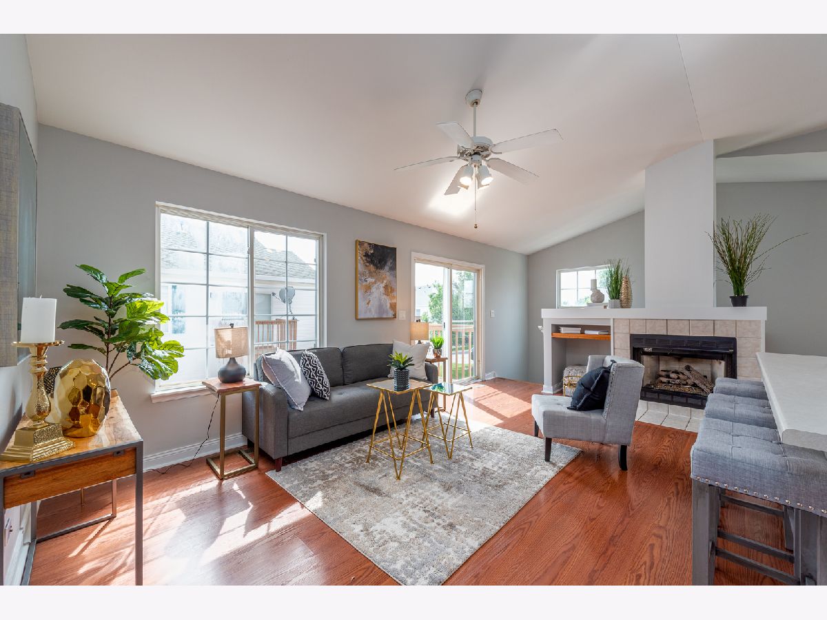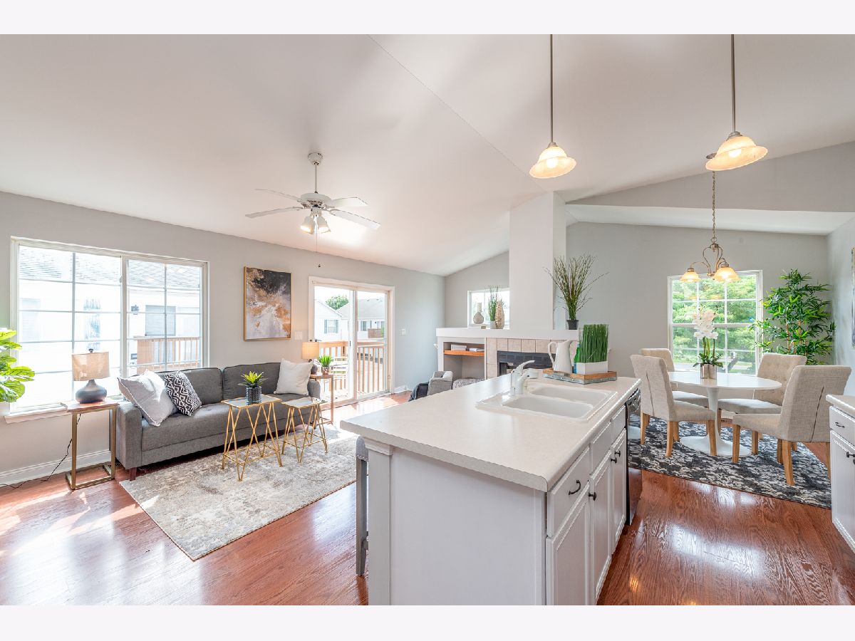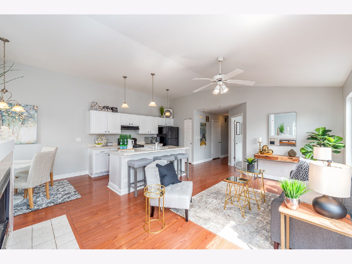 MOVE-IN READY!!! Start your next chapter here! You'll fall in love with this beautiful second floor condo with private entrance that has 2 beds, 1 bath and 1 car garage in the Heartland Meadows subdivision in South Elgin. Beautiful open concept layout with updated kitchen w/ white cabinets, island with sink, and pantry that opens to the living area with vaulted ceilings, gas fireplace and slider to balcony. Combined dining area perfect for entertaining. Lots of natural light throughout! Spacious master bedroom has walk-in closet. Good sized second bedroom. Hall bath has double vanity, separate shower and soaking tub. Separate laundry room and linen closet in hallway. Designated parking on side of building with guest parking nearby. Low association fees. RECENT UPDATES INCLUDE: freshly painted walls, new carpeting, newly finished cabinets. Fabulous location conveniently located near shopping, restaurants, parks, forest preserves, golf courses, transportation and so much more! Don't miss out!!!