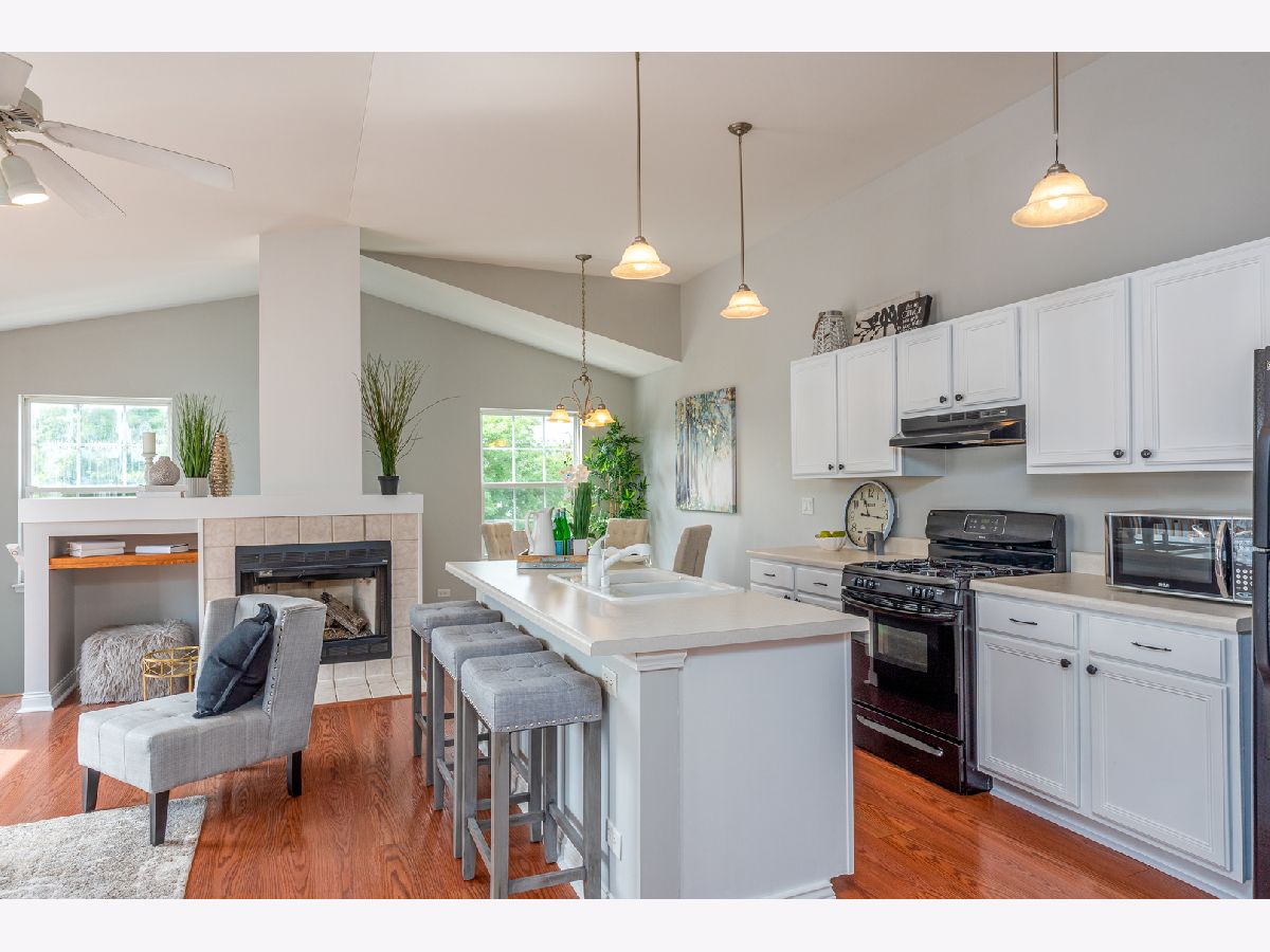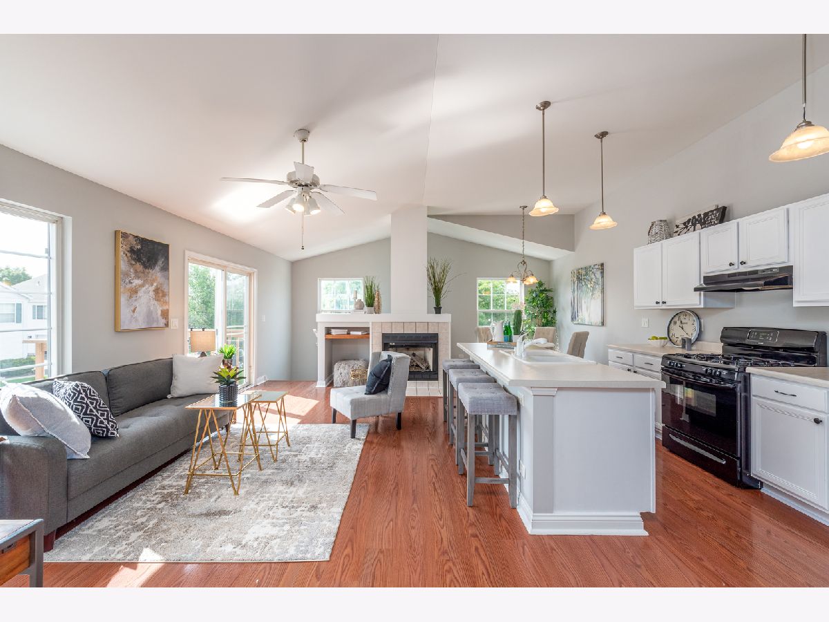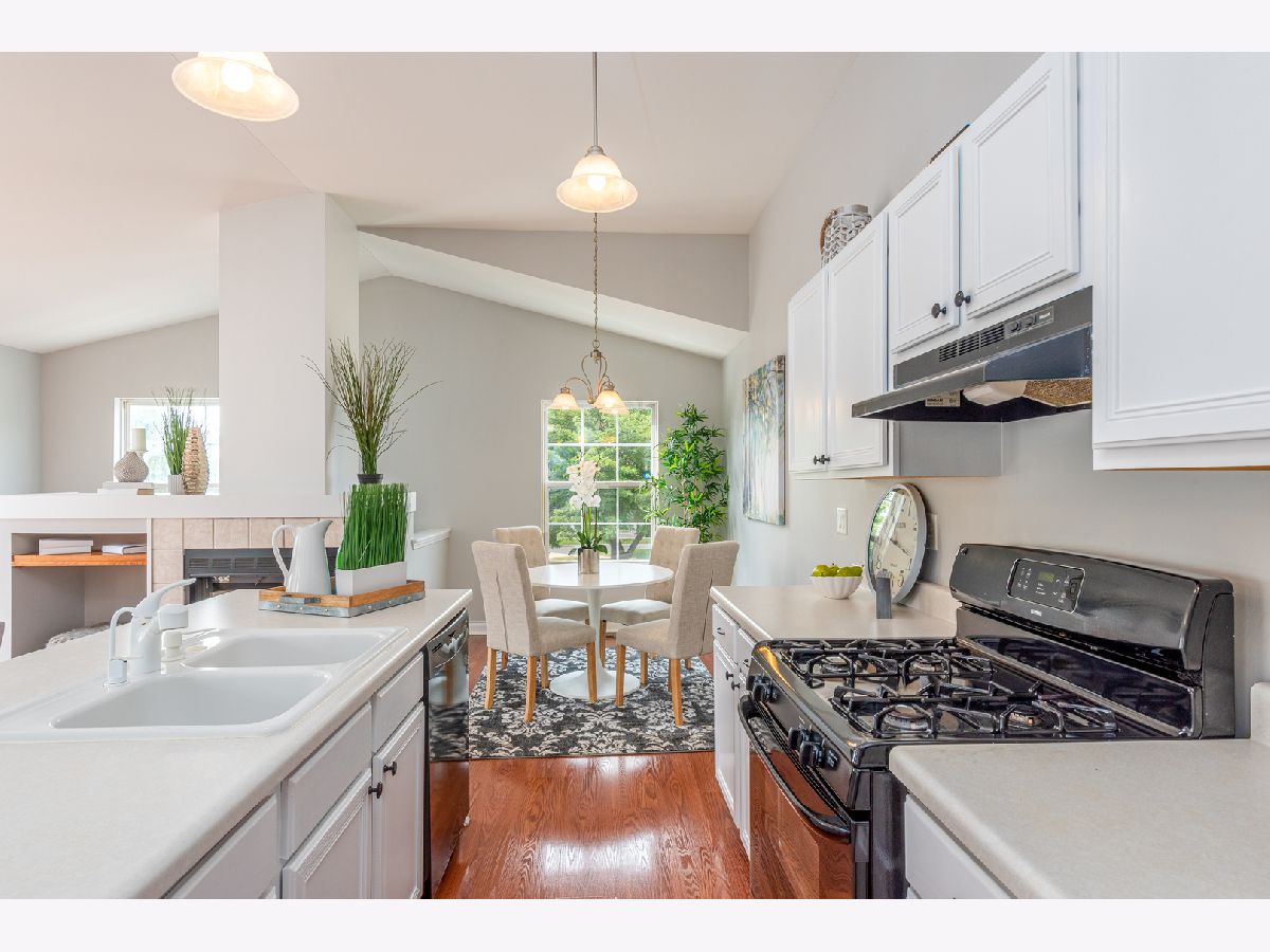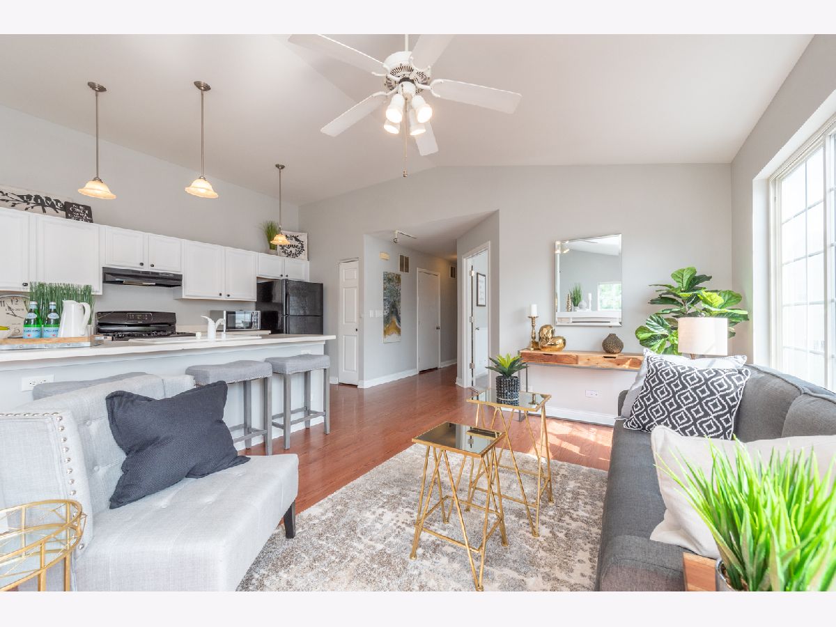 MOVE-IN READY!!! Start your next chapter here! You'll fall in love with this beautiful second floor condo with private entrance that has 2 beds, 1 bath and 1 car garage in the Heartland Meadows subdivision in South Elgin. Beautiful open concept layout with updated kitchen w/ white cabinets, island with sink, and pantry that opens to the living area with vaulted ceilings, gas fireplace and slider to balcony. Combined dining area perfect for entertaining. Lots of natural light throughout! Spacious master bedroom has walk-in closet. Good sized second bedroom. Hall bath has double vanity, separate shower and soaking tub. Separate laundry room and linen closet in hallway. Designated parking on side of building with guest parking nearby. Low association fees. RECENT UPDATES INCLUDE: freshly painted walls, new carpeting, newly finished cabinets. Fabulous location conveniently located near shopping, restaurants, parks, forest preserves, golf courses, transportation and so much more! Don't miss out!!!