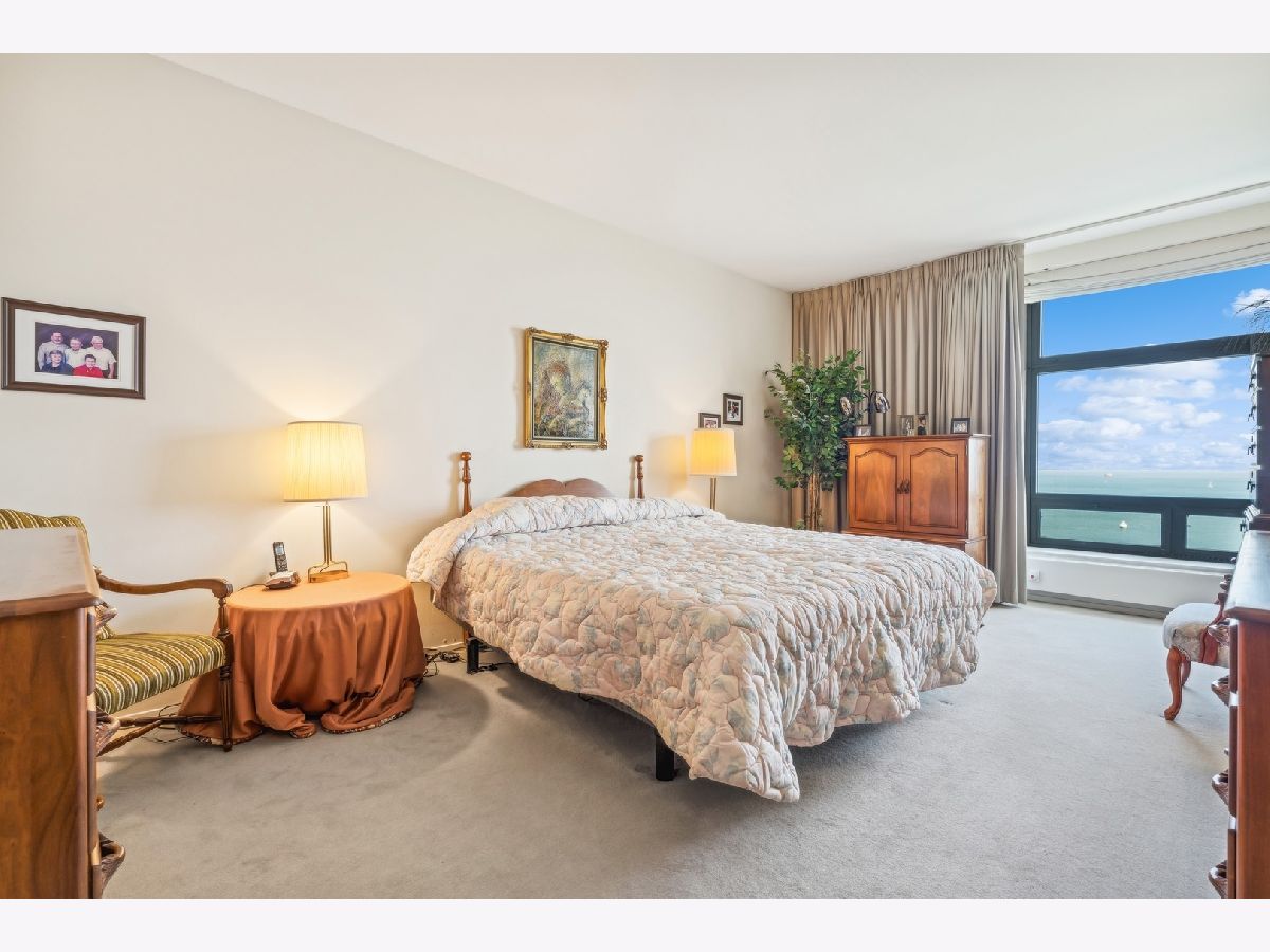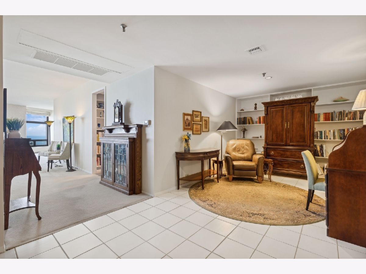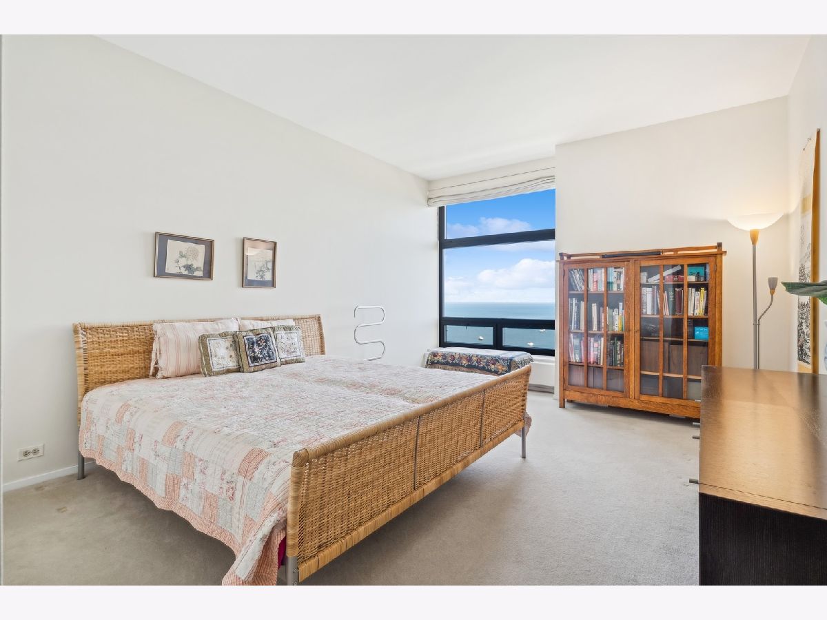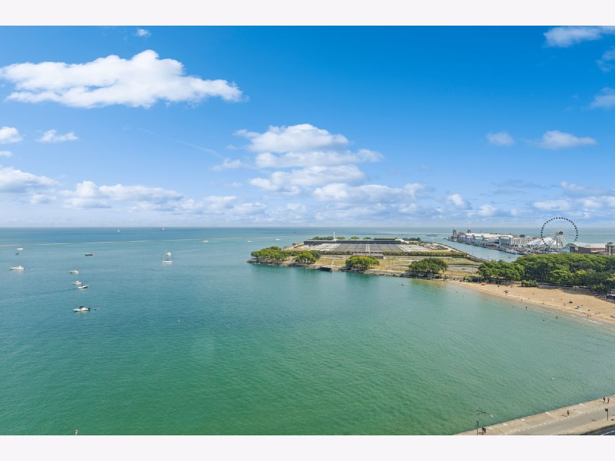 2,721 SF of AMAZING space with UNOBSTRUCTED, PROTECTED LAKEVIEWS from NEARLY EVERY ROOM IN THE CONDO!!! Enjoy all the sunlight streaming in, the boats and of course Navy Pier and the Fireworks! This elegant and stately home has a renovated white kitchen with stainless steel appliances, eat-in breakfast area with beverage station and built in cabinetry. The kitchen could be opened to the living room as there are no load bearing walls. The gracious foyer is welcoming with a family room/office space. The living and dining rooms are very spacious with views out to the lake. The large primary bedroom enjoys expansive storage with walk-in closet, built in cabinetry and lake views! The primary bath has been renovated with porcelain tile, quartz countertop, handicap accessible, walk in shower and double vanity. The large 2nd bedroom is also ensuite, with more lake views, perfect for guests, family or caregiver. The large laundry room with newer w/d and lots of folding space and shelving/storage. Off the utility room is an interior bedroom. The powder room is conveniently located too. This luxury building has a health club with indoor pool. Eggs Inc. restaurant is conveniently located in the building. A deeded parking space is available for an additional 60k.