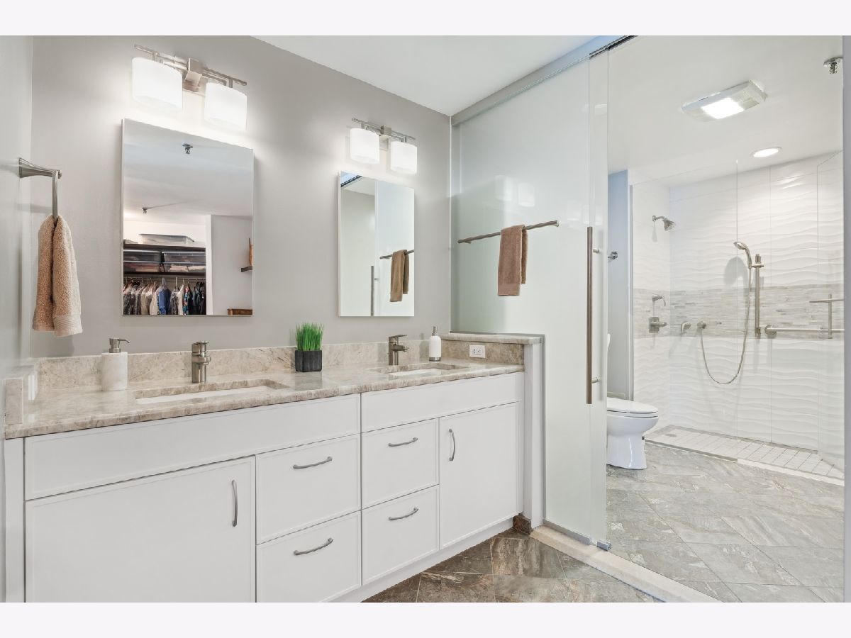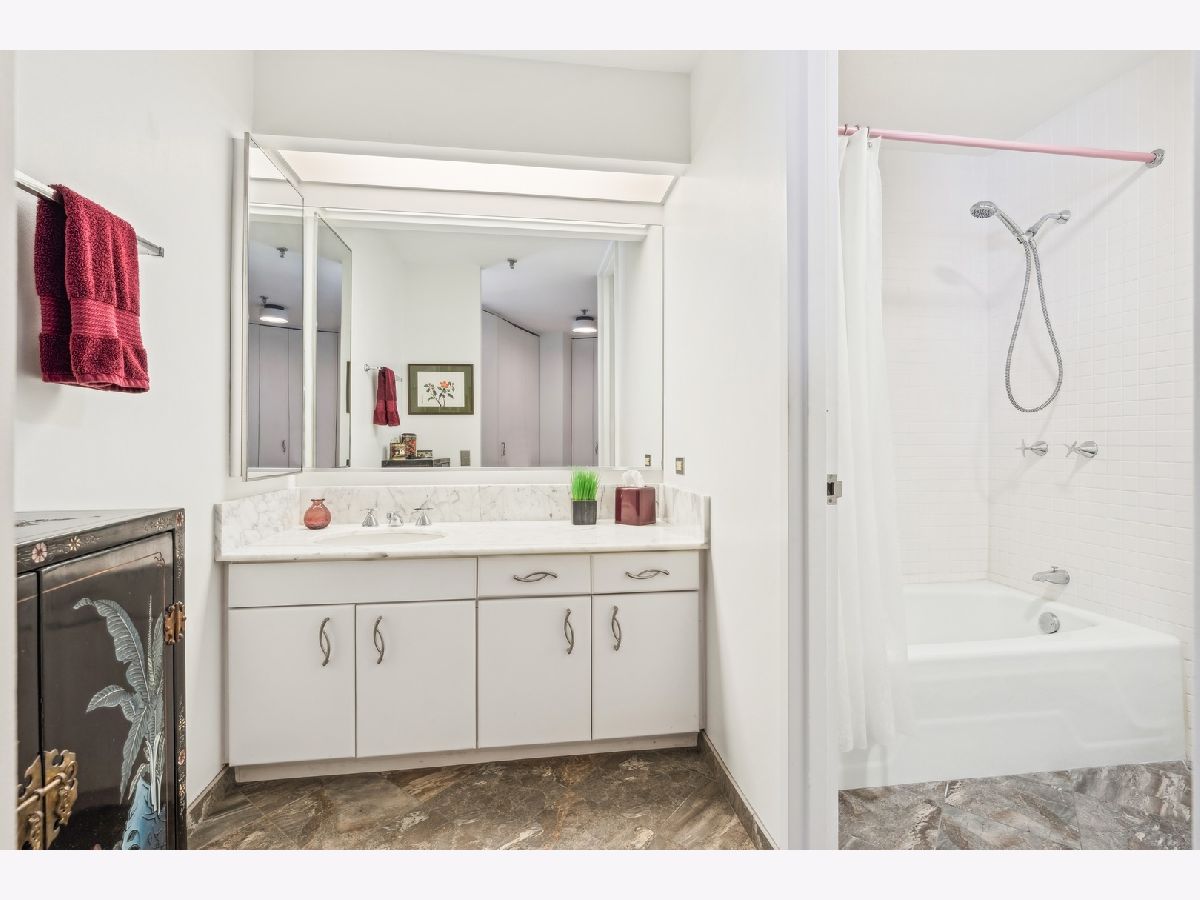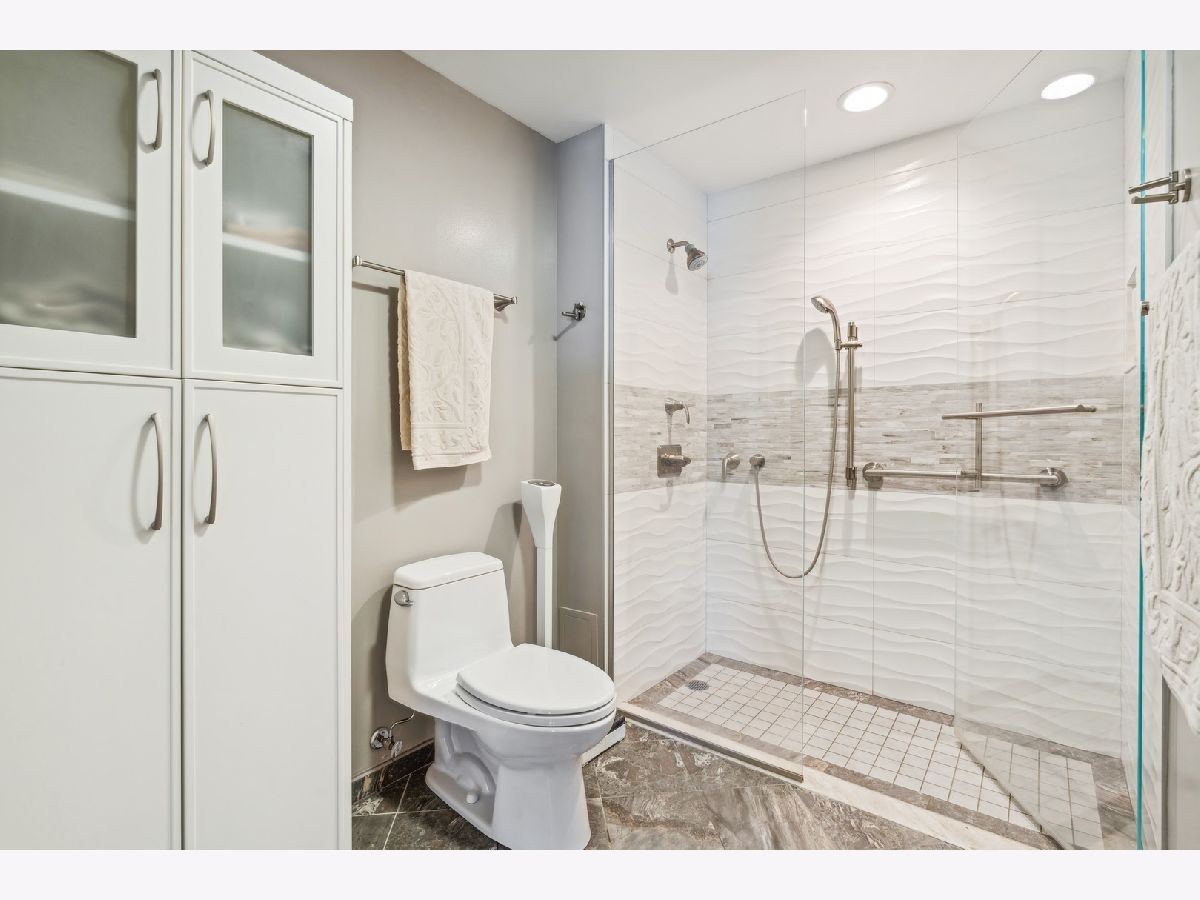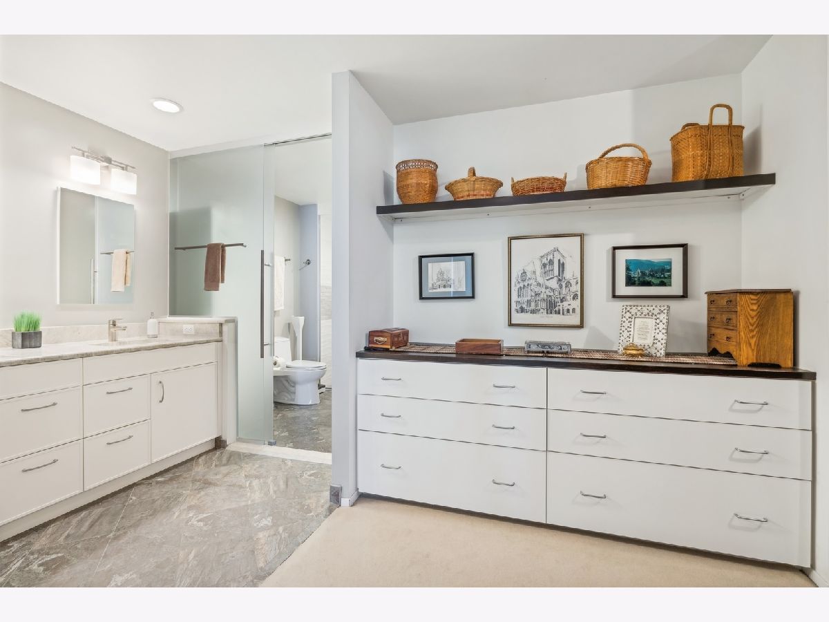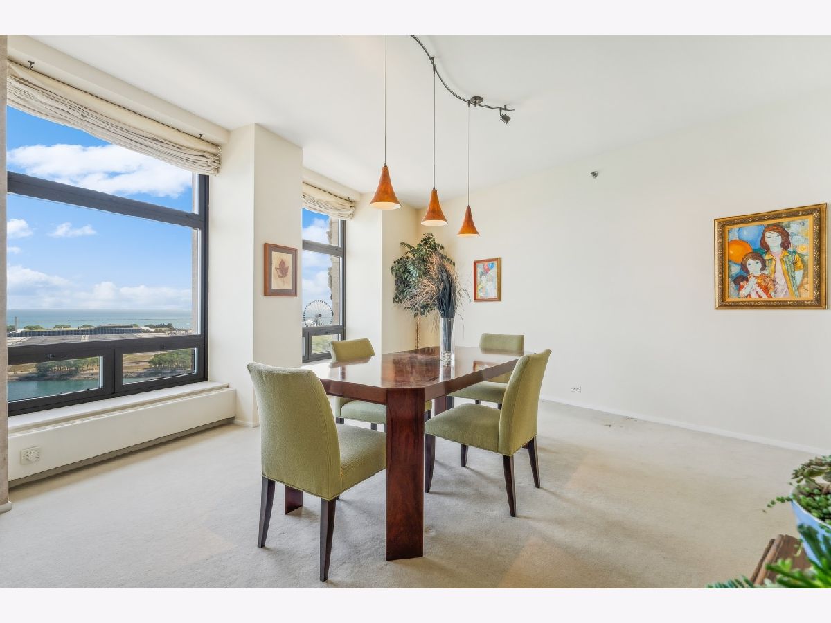 2,721 SF of AMAZING space with UNOBSTRUCTED, PROTECTED LAKEVIEWS from NEARLY EVERY ROOM IN THE CONDO!!! Enjoy all the sunlight streaming in, the boats and of course Navy Pier and the Fireworks! This elegant and stately home has a renovated white kitchen with stainless steel appliances, eat-in breakfast area with beverage station and built in cabinetry. The kitchen could be opened to the living room as there are no load bearing walls. The gracious foyer is welcoming with a family room/office space. The living and dining rooms are very spacious with views out to the lake. The large primary bedroom enjoys expansive storage with walk-in closet, built in cabinetry and lake views! The primary bath has been renovated with porcelain tile, quartz countertop, handicap accessible, walk in shower and double vanity. The large 2nd bedroom is also ensuite, with more lake views, perfect for guests, family or caregiver. The large laundry room with newer w/d and lots of folding space and shelving/storage. Off the utility room is an interior bedroom. The powder room is conveniently located too. This luxury building has a health club with indoor pool. Eggs Inc. restaurant is conveniently located in the building. A deeded parking space is available for an additional 60k.