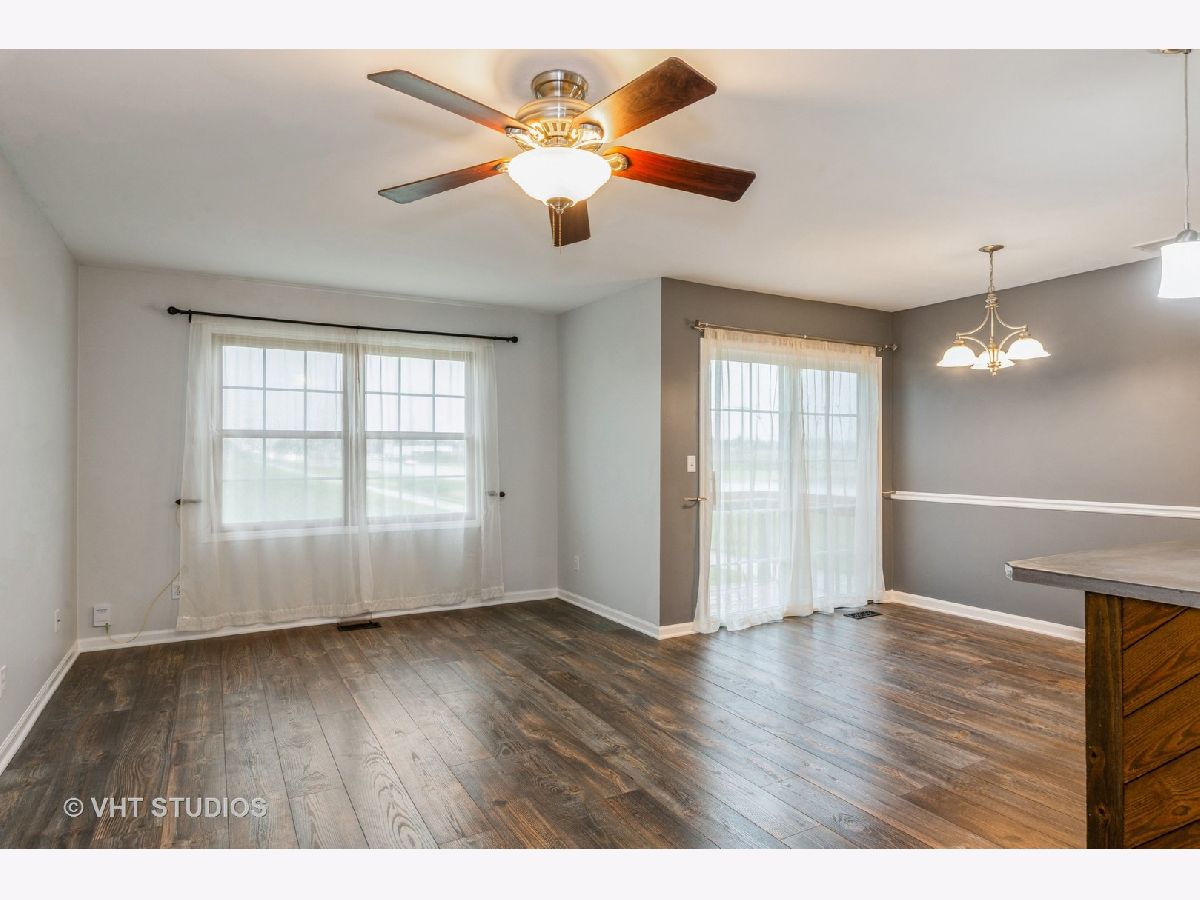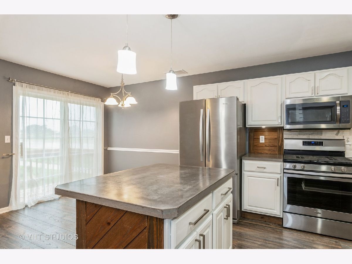 Expect to be impressed by this end unit 2 bedroom, 2.1 bath condo with 1800 sq ft and 1 car attached garage. This end unit is the last building built and has a side yard and backs up to a farmfield. Pride of ownership show throughout! Nothing to do but move in!!! All new wood laminate flooring, interior freshly painted, painted trim & kitchen cabinets (white), (2017) Whirlpool Gold Series Stainless Steel appliances, backsplash, SS apron sink, concrete countertops, accent lighting under cabinets, pendulum lighting over island & recessed lighting, shiplap feature wall & shiplap kitchen island. Updated main bath vanity, updated bath fixtures, Ecobee thermostat & smart lock deadbolt. AC replaced 2019 & Deck rebuilt 2020. Maytag washer & gas dryer. Attached insulated 1 car garage featuring door opener & 1 transmitter.