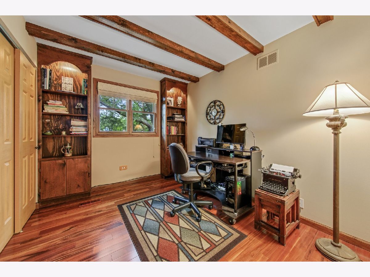 How does 4 levels to spread out sound? Perfect! Split-level with subbasement available now in Downers Grove. Corner Lot located on a no outlet street that dead ends into O'Brien Park and only 1/2 mile from McCollum Park. Hardwood floors in roomy Foyer, Kitchen, Family Room, and continue upstairs with a striking herringbone pattern. Hallway has a walk-in closet in addition to a linen closet. One of the sizeable Bedrooms has a walk-in closet, too. Another is set up as a gorgeous Office with wood beams on ceiling, built-in cabinets with lighting, and wood laminate flooring. Primary Bedroom has a long closet wall with organizers, and it's Bathroom has been remodeled with Granite countertops, walk-in shower, and fun barn door! Hall bath has been updated as well. All 4 Bedrooms are on the 2nd floor. Main level hosts the large Kitchen with alcove for generous table space, separate Dining Room that connects to spacious Living Room. Step down past the Butler Pantry to the warm Family Room complete with woodburning Fireplace with gas start. Continue out the Sliding Glass Door with built-in blinds to a leafy paradise with Fence for serene privacy. Subbasement is finished for fun! Laundry is located there, and under the stairs find the convenient access to the Crawlspace for even more Storage! New Pella windows in 2015, new HVAC in 2019, new Roof & Gutters in 2017. 200 Amp service. Shed for outdoor equipment plus yard access from inside the attached Garage. Virtually walk through with the Matterport 3D Tour and schedule your physical showing soon!