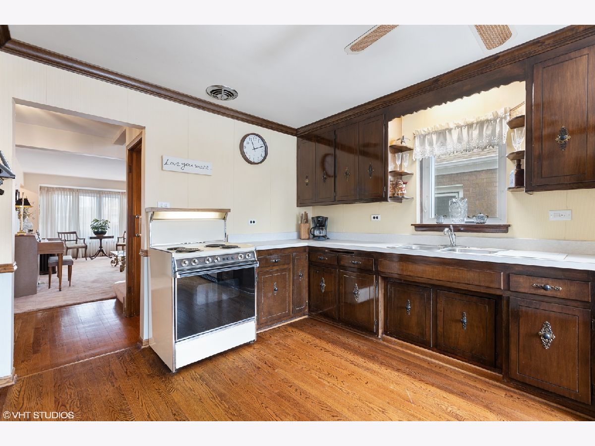 Beautiful cape cod all brick single family home located on tree lined street! This single family home has been lovingly cared for by one family over 55 years! Large living room features beautiful bay windows. Open floor plan with eat in kitchen with extra large picture window for plenty of morning sunshine! Bonus family room or wall can be enclosed for a fourth bedroom. Original oak floors throughout the 1st and 2nd floors with beautiful oak staircase. Large bedroom and full bath located on the main floor. Two oversized bedrooms upstairs have knotty pine wood walls with large storage and additional half bath. Finished basement with kitchenette, washer & dryer, full bathroom, built in storage and family room with option for additional bedroom. All new windows throughout the home. Two car garage with 8' high overhead door accommodates full size vans. Additional side parking space available for 3rd car if needed. Wonderful back yard perfect for entertaining! Terrific location close to 67th street, restaurants, transit and close to Midway!