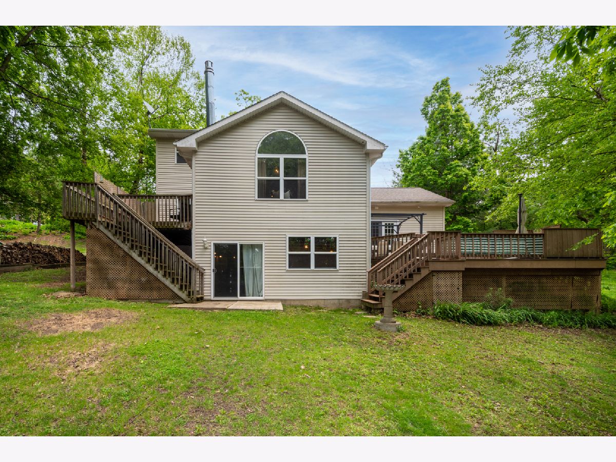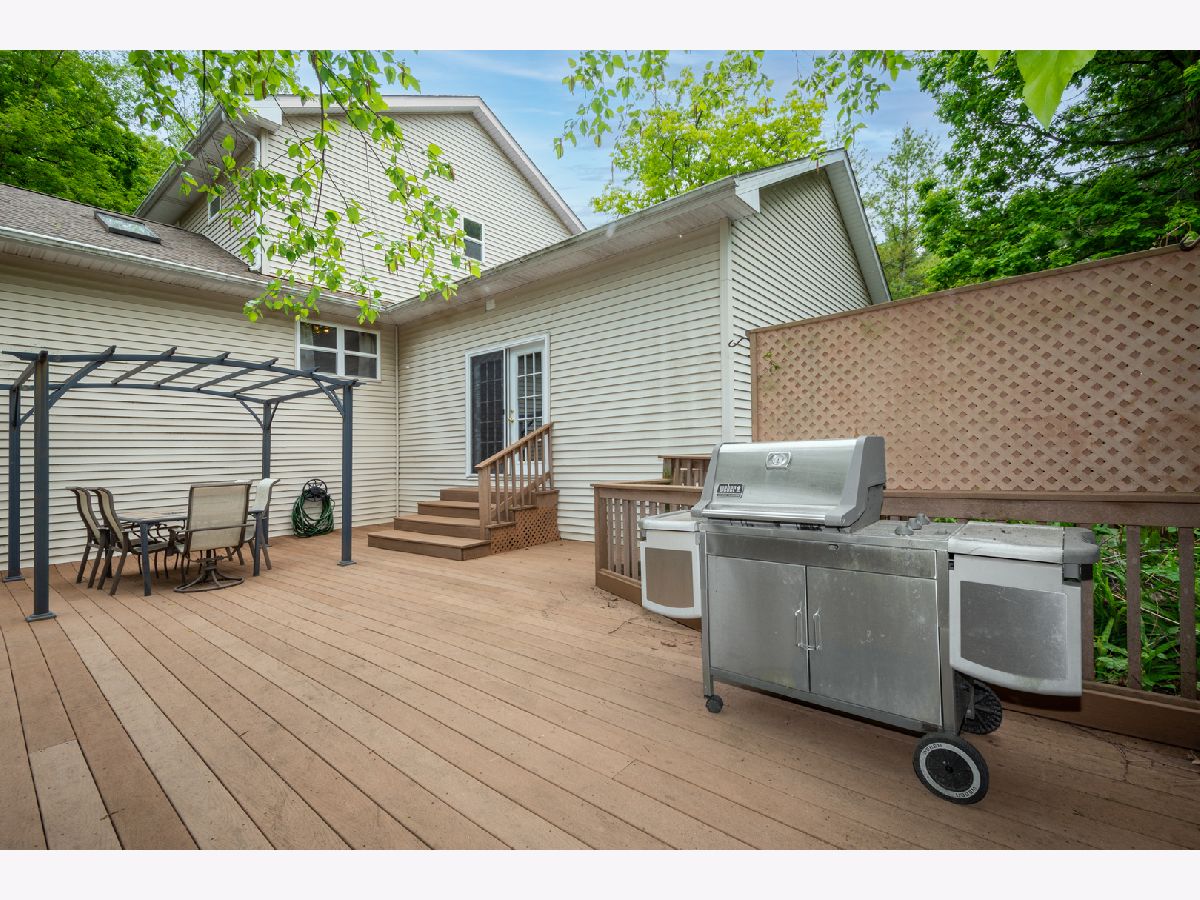 Charming Hillside Retreat in the Heart of Spring Grove! Welcome to this immaculate 3-bedroom, 2.1-bathroom two-story home, perfectly situated in the scenic hills of Spring Grove. With its open-concept floor plan, fresh designer color palette, and thoughtful updates, this home is designed for both everyday living and effortless entertaining. Step inside to a spacious living and dining area that flows into a beautifully appointed kitchen featuring ample cabinetry, generous counter space, a convenient breakfast bar, and a cozy eating nook. The adjacent family room is a showstopper with vaulted ceilings, skylights, and a warm gas fireplace-creating an inviting space for gatherings or quiet evenings at home. Enjoy seamless indoor-outdoor living with two expansive, maintenance-free decks and a charming pergola, all overlooking a lush, private, wooded backyard-your very own serene escape. Upstairs, the large primary suite offers dual closets and a luxurious en-suite bathroom with a whirlpool tub, separate shower, and double vanity. Two additional well-sized bedrooms and a full bath complete the upper level. The walkout lower level adds incredible versatility, featuring a partially finished rec room, roughed-in bath, home office space, and a large storage area-perfect for a gym, playroom, or future in-law suite. An extra-deep garage with built-in storage and additional exterior parking is ideal for vehicles, tools, or recreational toys. Located close to shopping, dining, theaters, and top-rated schools-all with lower Spring Grove taxes-this home checks every box. Don't miss your chance to own this peaceful hillside gem!