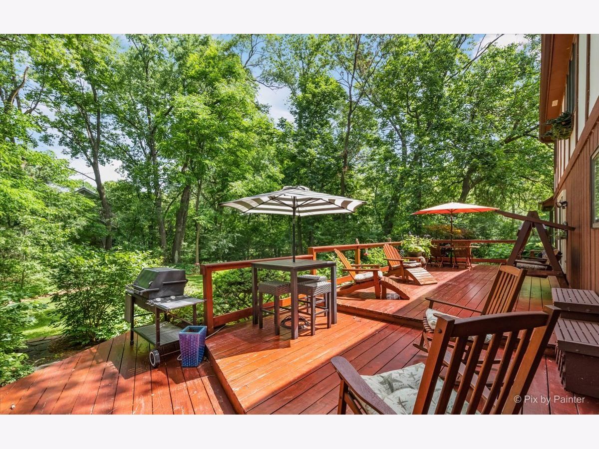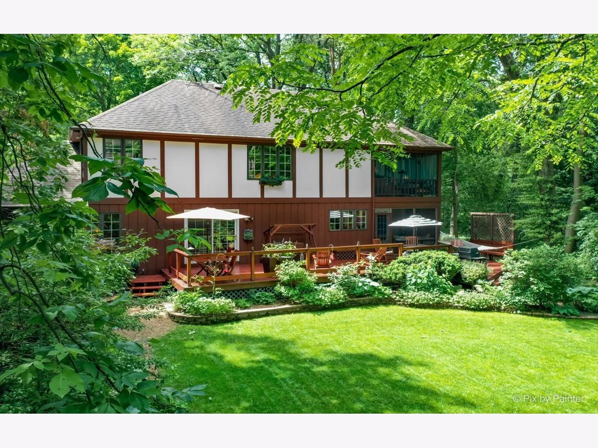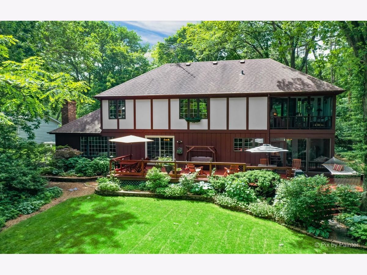 Simply Enchanting 4 bedroom, 3 bath English Tudor in COVERED BRIDGE Trails neighborhood. Situated on an enticing 0.6 acre WOODED LOT, this home is a must see! Tucked away from the street and surrounded by MAGICAL GARDENS, this home has that PRIVATE FEEL while being close to all the modern day conveniences of DOWNTOWN Crystal Lake like shopping, dining, METRA TRAIN station, and more! Solid HARDWOOD FLOORING greets you as you step into the soaring 2-story foyer with skylight. The beautiful formal living room and dining room offer stunning nature VIEWS. A wide OPEN KITCHEN is really the heart of the home, including all STAINLESS STEEL APPLIANCES, double convection oven, a large CENTER ISLAND with seating and built-in cooktop, WALK-IN PANTRY, and desk area. A spacious eating area offers slider to the LARGE DECK with backyard views. Enjoy views with your morning coffee in the fantastic SCREENED PORCH with fresh doors. Across from the kitchen is a roomy family room with gorgeous BEAMED CEILING and WOOD BURNING FIREPLACE. The first floor OFFICE could be an optional 5TH BEDROOM! The spacious master suite includes a walk-out, screened-in JULIET BALCONY - the perfect place to devour a good book. Large FINISHED BASEMENT provides a Rec Room, lots of storage area, and a workshop. 2 car garage, multi-zoned HVAC with new Lennox energy efficient furnaces, water softener and whole house water filter. Veterans Acres park and Sterne's Woods Nature Preserve right at your doorstep, and Sought after Prairie Ridge High School! This home is truly something special.
