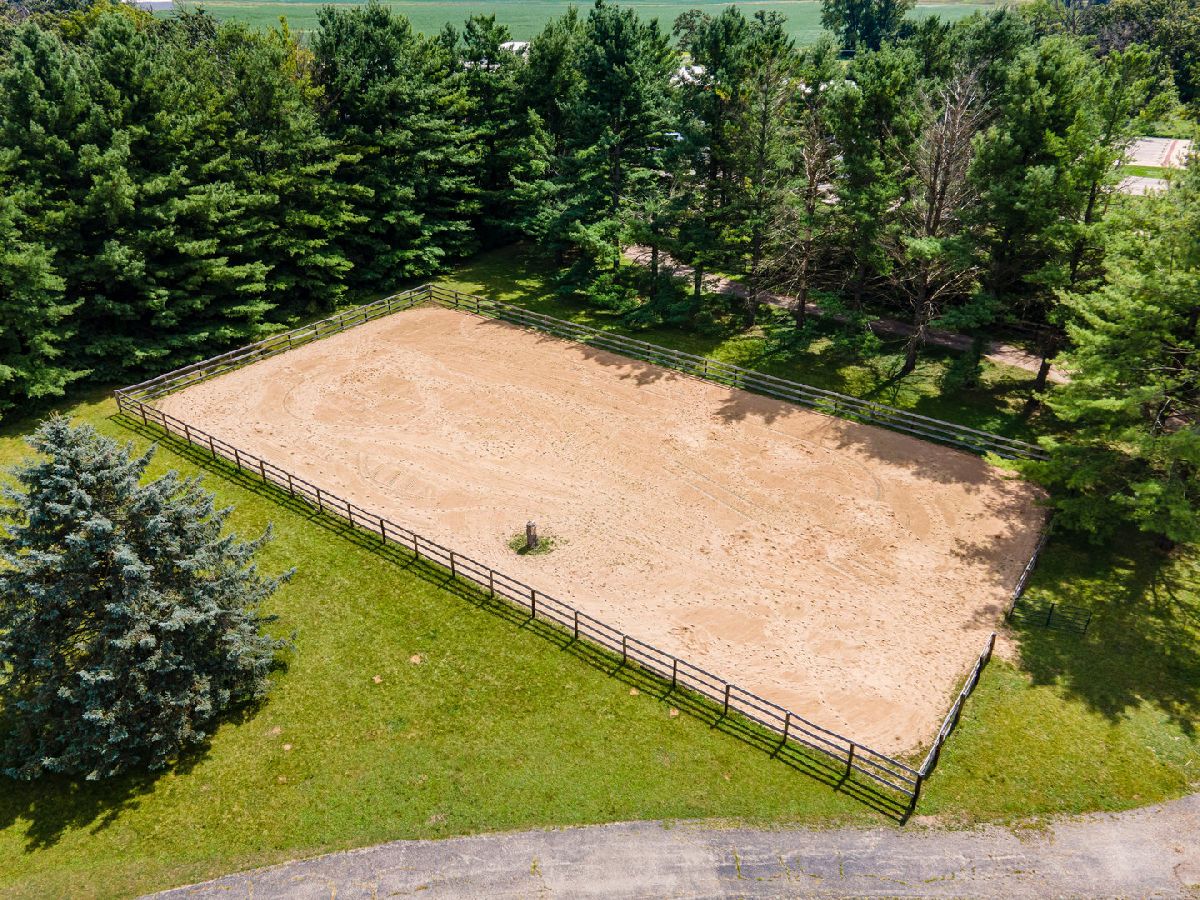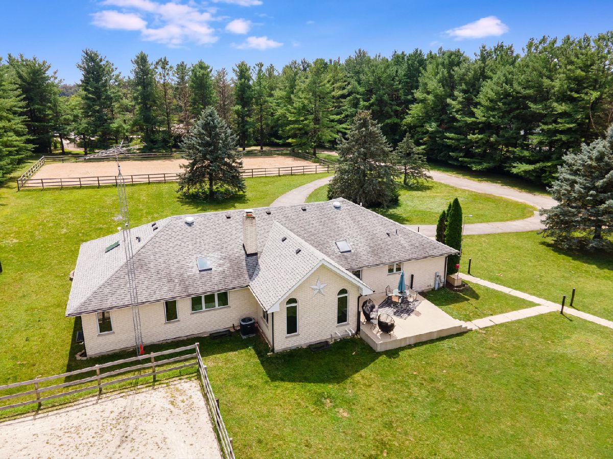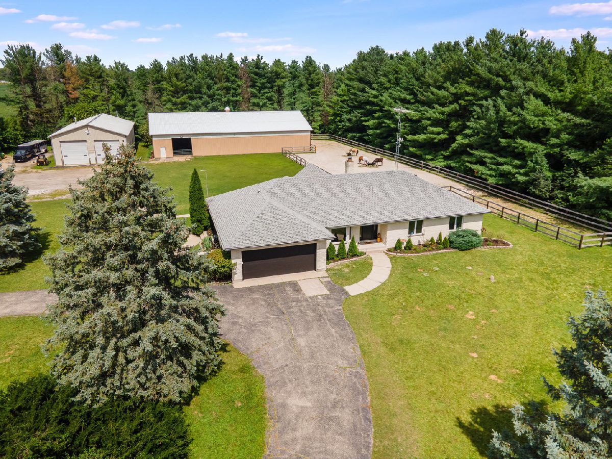 PRIVATE EQUESTRIAN ESTATE - A place for you and your four-legged friends to call home. The house and barn are turnkey and move-in-ready. This property is a special gem tucked in amongst 40+ year old white pines surrounding the entire property providing abundance in nature, privacy, and a year-round lovely pine smell. As you enter the gated and completely fenced in property along the winding driveway you are welcomed by a grass pasture and a 75X150 OUTDOOR ARENA. As you continue the drive you will find a well-appointed 2677 sq ft ALL BRICK, RANCH HOME that has been carefully updated both cosmetically and utilities, from top to trim! There is plenty of opportunity for growth here too; finish a part or the remainder of the full basement as an in-law or related-living suite. The HORSE BARN is 40X80 with 8 stalls, heated, concrete floors, a 60x110 INDOOR ARENA and an expansive outdoor all-weather paddock that will keep your horses safe, healthy, and happy! Easily add fencing for more pasture space, if desired. So many options for you to love now or repurpose the buildings for your own needs. There are countless new features in this property from quartzite counter tops and Kohler fixtures in all 3 updated bathrooms to the Comfort stall mattresses in the barn and misting system in the arenas. Please ask for the full list of upgrades because it is long and worth the read! You are going to love it here, and we cannot wait for you to see it! When asking for a showing, please provide POF and two desired times. Zoned A-1 Ag, Gigabit + Internet. Whole House Generator.