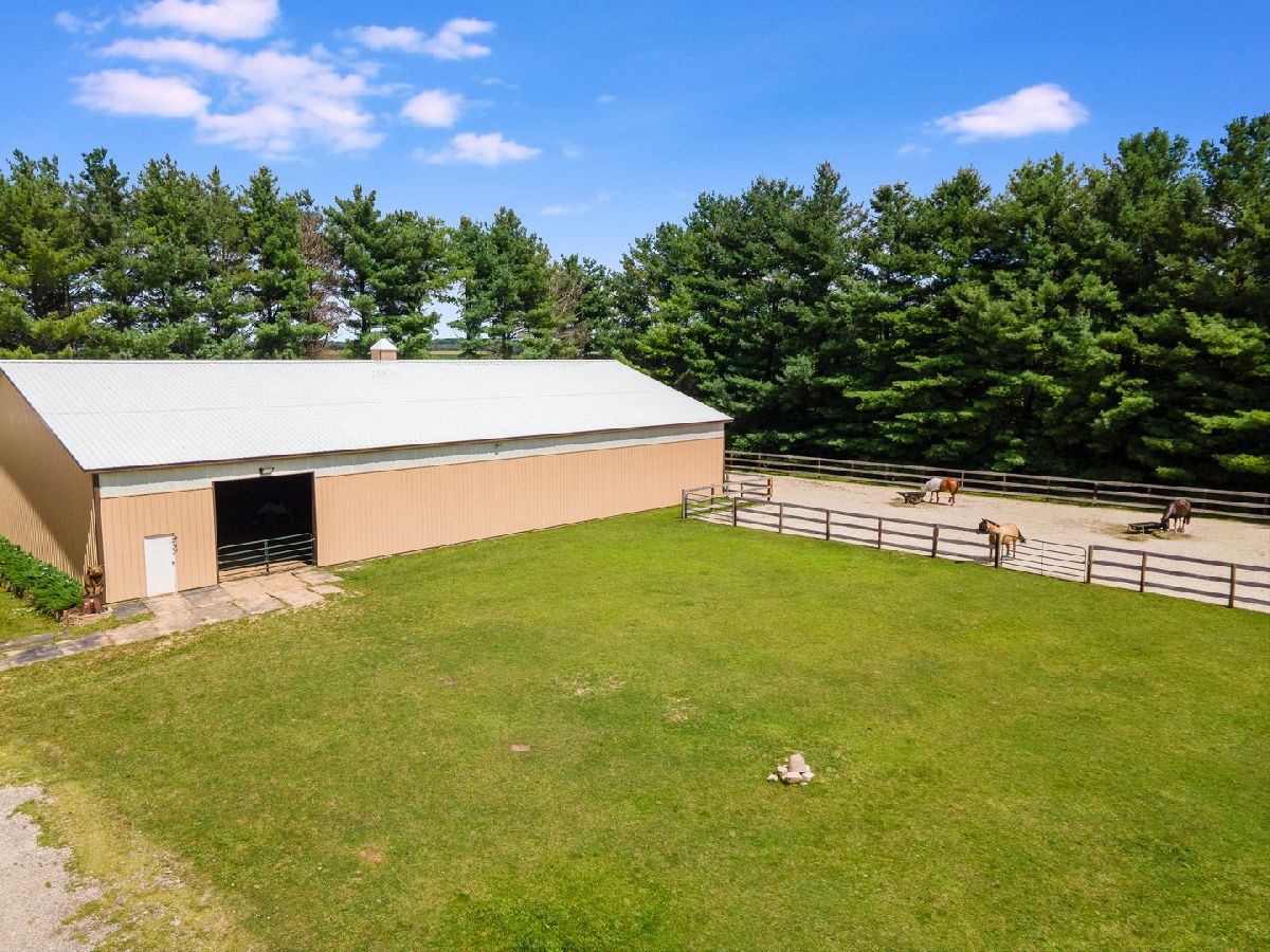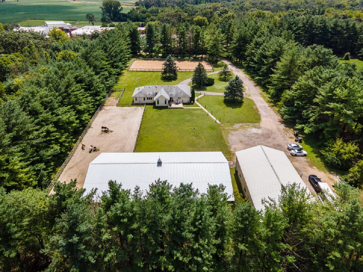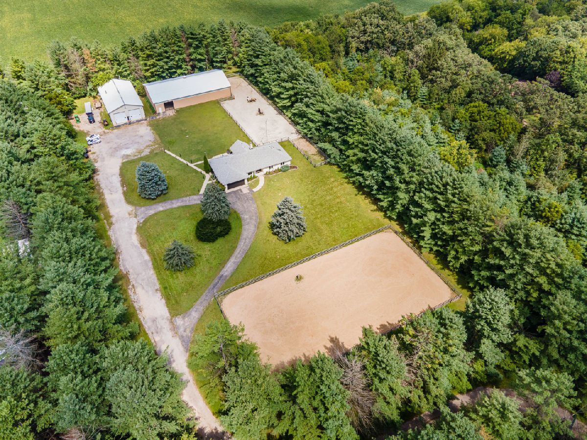 PRIVATE EQUESTRIAN ESTATE - A place for you and your four-legged friends to call home. The house and barn are turnkey and move-in-ready. This property is a special gem tucked in amongst 40+ year old white pines surrounding the entire property providing abundance in nature, privacy, and a year-round lovely pine smell. As you enter the gated and completely fenced in property along the winding driveway you are welcomed by a grass pasture and a 75X150 OUTDOOR ARENA. As you continue the drive you will find a well-appointed 2677 sq ft ALL BRICK, RANCH HOME that has been carefully updated both cosmetically and utilities, from top to trim! There is plenty of opportunity for growth here too; finish a part or the remainder of the full basement as an in-law or related-living suite. The HORSE BARN is 40X80 with 8 stalls, heated, concrete floors, a 60x110 INDOOR ARENA and an expansive outdoor all-weather paddock that will keep your horses safe, healthy, and happy! Easily add fencing for more pasture space, if desired. So many options for you to love now or repurpose the buildings for your own needs. There are countless new features in this property from quartzite counter tops and Kohler fixtures in all 3 updated bathrooms to the Comfort stall mattresses in the barn and misting system in the arenas. Please ask for the full list of upgrades because it is long and worth the read! You are going to love it here, and we cannot wait for you to see it! When asking for a showing, please provide POF and two desired times. Zoned A-1 Ag, Gigabit + Internet. Whole House Generator.