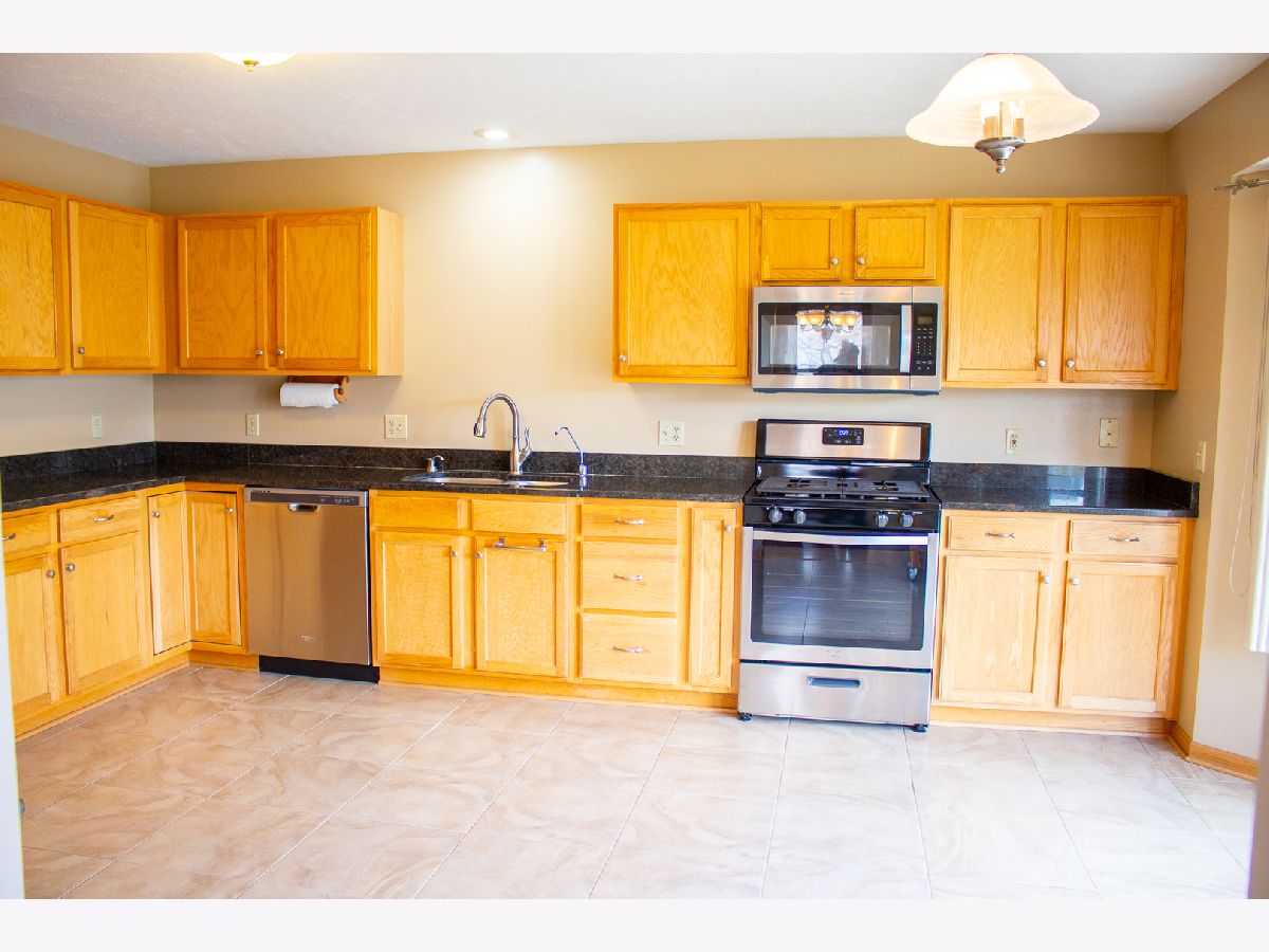 BEAUTIFUL WELL MAINTAINED HOME WITH CONDO CONCEPT - YOU NEVER HAVE TO MOW THE LAWN OR SHOVEL THE DRIVE! - JUST MINUTES FROM EVERYTHING AND EASY ACCESS TO THE TOLLWAY! This move-in ready 3 BR home has over 2,000 sf of living space. The large open living room w/cathedral ceilings has hardwood floors, a cozy fireplace for the cold nights, & large windows to let all the natural sunlight in. Solar tube in entryway. The separate dining room also has hardwood floors. The open kitchen has granite countertops, BRAND NEW STAINLESS STEEL APPLIANCES, ceramic tile, lots of cabinet space, & sliders out to a newly painted deck situated on the side of the house to enjoy both the front & back yards. The MBR has an en-suite full BA & huge walk-in closet. BRAND NEW carpeting in all BRs, hallway and stairway. Reverse osmosis water filtration system. Neutral colors throughout. The lower level has a large finished rec room w/baseboard heating. New roof 2017. Furnace replaced 2014. Washer and dryer stay. NOTHING TO DO BUT MOVE IN!