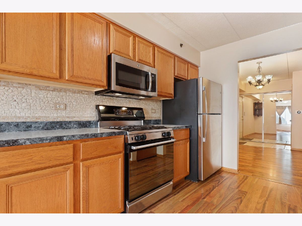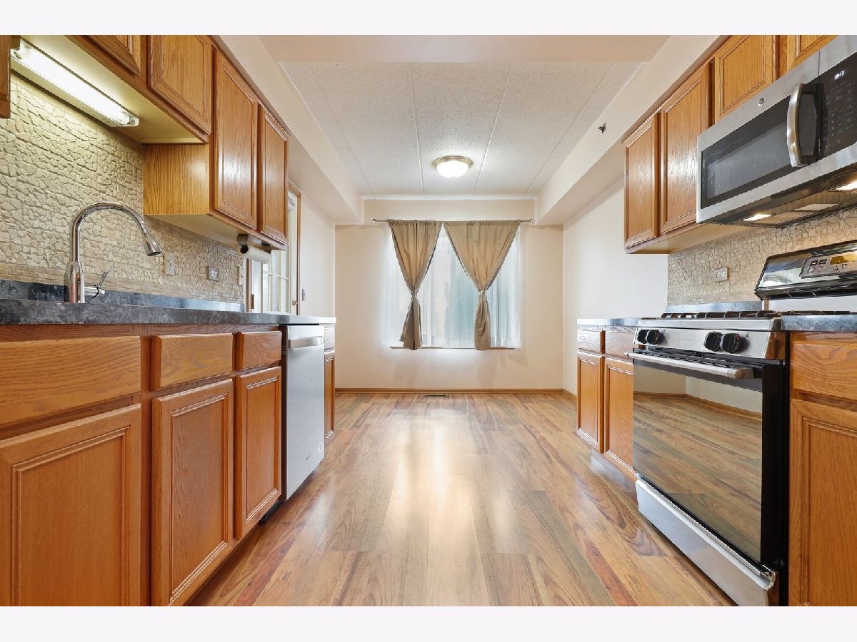 Enjoy stair-free living in this beautiful main floor condo in desirable Sunchase Pointe of Oak Forest! The well-appointed floor plan features gorgeous wood laminate flooring and neutral paint throughout. Entertain with ease in the open-concept living and dining rooms. The spacious eat-in kitchen features newer stainless steel appliances, custom-tiled backsplash and dinette area. There are 2 generously-sized bedrooms, including the owner's suite with double closets and private bath. This home also offers convenient in-unit laundry with new, full-size washer and dryer. Outside, relax on the screened porch, overlooking mature trees and professional landscaping. Other great features include 1-car garage parking, new windows (2020) and AC (2017). Great location, close to restaurants, shops, parks, forest preserve, schools, public transportation and everything Oak Forest has to offer!