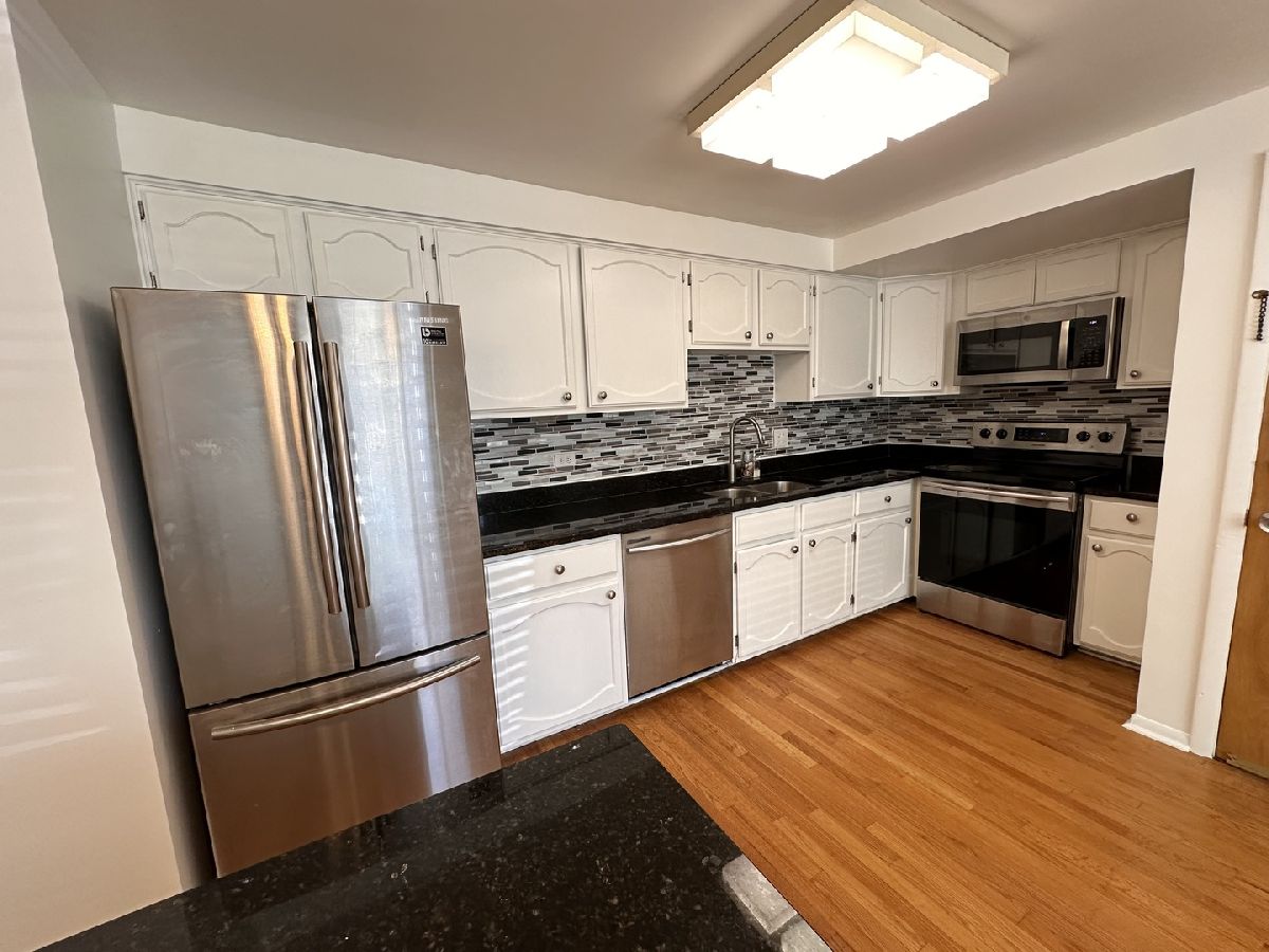 NEWLY-PAINTED SPACIOUS TWO-BEDROOM CONDO, ONE BATH GARDEN UNIT IN THE HEART OF NORWOOD PARK AND STEPS TO METRA, COMPLEX NEXT TO LIBRARY AND NORWOOD PARK RESTAURANT. BEAUTIFUL MODERN KITCHEN WITH NEW STAINLESS STEEL APPLIANCES, GRANITE COUTER TOPS, BACKSPLASH. HARDWOOD FLOORS THROUGHOUT, NEW INTERIOR DOORS, NEW RECESSED LIGHTING, UPDATED BATH, CEILING FANS, ETC. LARGE KITCHEN WITH TONS OF CLOSETS AND BREAKFAST AREA. HOA FEE INCLUDES HEAT, GAS AND WATER. EASY ACCESS TO DEEDED PARKING SPACE IN THE REAR. VACANT AND EASY TO SHOW.