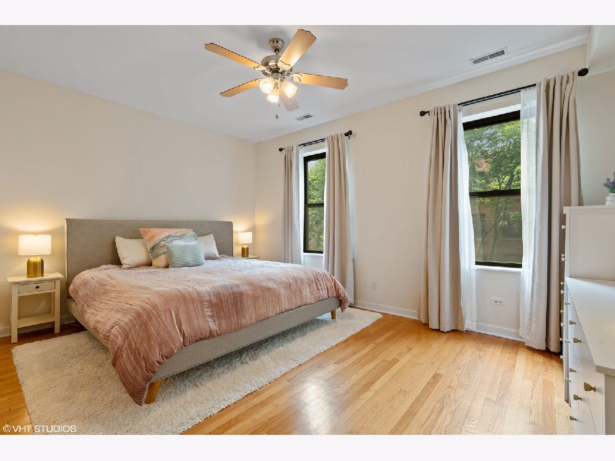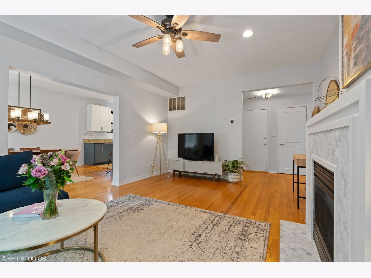 Just steps from iconic Sheridan Road & located in one of the most sought-after pockets of Chicago's Rogers Park neighborhood, this rarely-available 2-bedroom, 2-bathroom is brimming with charm, color, & character. You'll walk through the front door & immediately notice the expansive floor plan - sunshine fills the living room through a west-facing picture window. Fall in love with the Instagram-worthy gas-burning fireplace - the focal point of this room! - with a hexagonal marble tile surround. Next, you'll tour the kitchen & dining room, a combined space allowing for a massive dining table, bar cart, & stools at the breakfast bar, too. The kitchen boasts on-trend 2-toned cabinets (classic white & cobalt blue), chic subway tile backsplash, granite countertops, & stainless steel appliances. Plus, you'll find the entrance to the home's outdoor space - an ideal spot for a morning coffee or evening glass of wine. As you make your way back inside & toward the bedrooms, take note of the generous room sizes, ample storage, & natural light. The primary bedroom has an en-suite bathroom (recently renovated with stylish black fixtures!) & dual closets. The second bedroom has a nearby hallway bath, also updated & fresh. Last but certainly not least, this vintage condo is equipped with modernities like in-unit laundry, central heat & air, & upgraded lighting throughout. There is 1 additional storage cage included in the price. The all-brick intimate mid-rise building is close to dozens of restaurants & bars, Loyola Beach, Target, Starbucks, summertime farmers markets, shopping, Loyola University, Lake Shore Drive, & the red line station @ Morse. Welcome home.