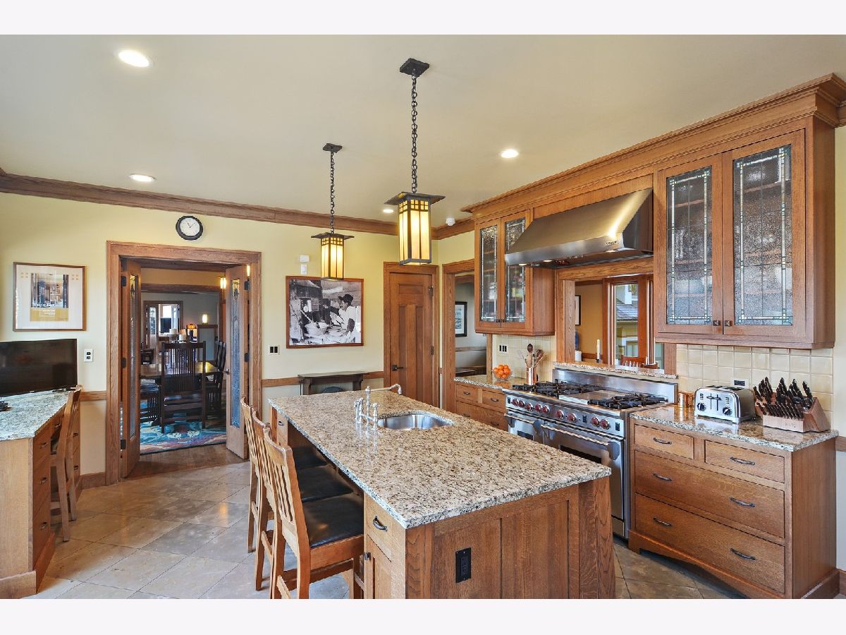Spectacular Glencoe signature home on over 1/2 acre in a premier loc. 1 Blk. East of town/train & 2 1/2 blks from beach. This historic, award-winning home, designed by architect E. E. Roberts was recently, compl. & meticulously expanded & rebuilt to offer all of the amenities of a newer home, while preserving the authenticity & character of the original design. Architectural features include 9' beamed ceilings, chevron arched doorways, 7-piece crown molding, quarter-sawn oak floors & cabs, leaded art glass wndws. Lrg. open floor-plan with great flow. Welcoming foyer, big gourmet top-of-the-line ktchn. open to FR & deck, paneled study w/wet Bar, bright sunroom leading to 2 decks, huge inviting LR w/fplc, sep. DR w/ wainscoting, incred. mstr. ste. w/sitting rm/fplc, 2 wlk-in custom-fitted clsts, beaut. compart. master BA w/lrg soaker tub, steam shwr, 2-sink vanity, yoga Rm, 4 addtl. large BR's up. 2nd flr. lndry. Deep LL w/game rm, wet bar, wine cellar, excer rm, studio/theater & 6th BR.