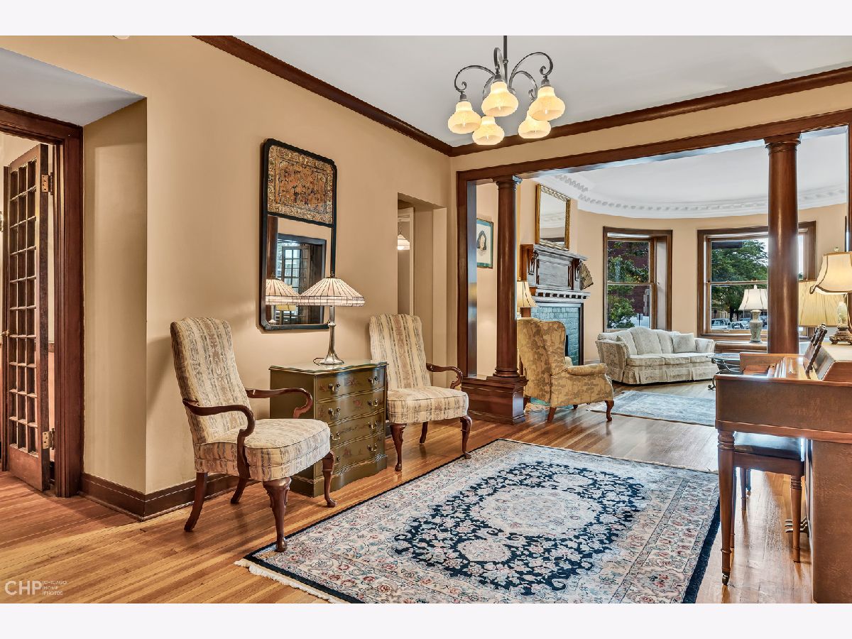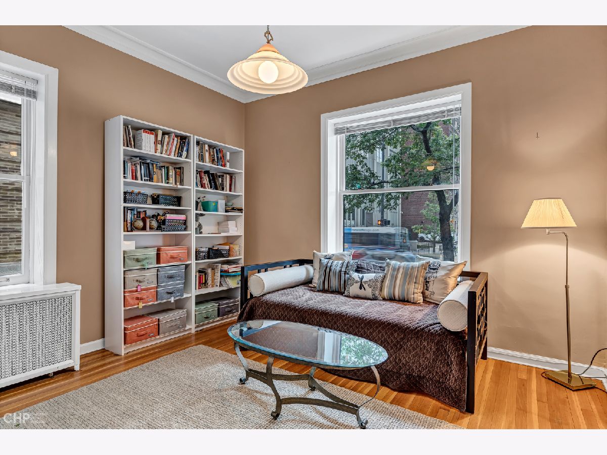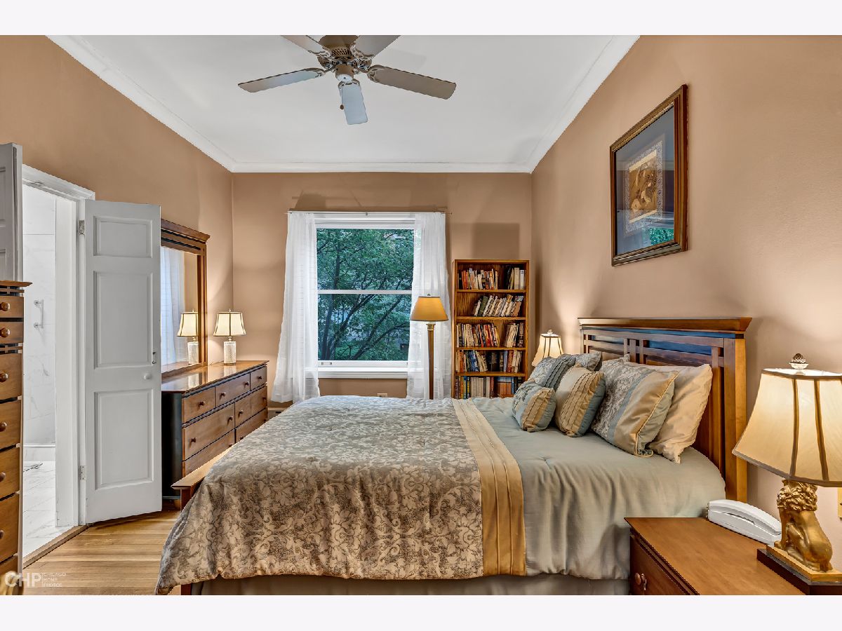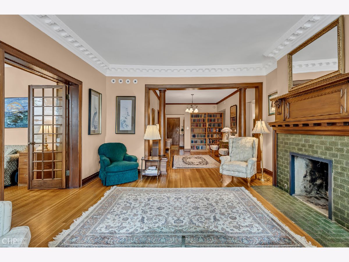 Once-in-a-generation opportunity to own a first floor, southern facing, 3BR + Den, end unit at The Pattington! Lovingly owned and maintained by the same owners for nearly 30 years. Once hailed as "the most fashionable apartments in Chicago" and "Chicago's best courtyard building" by the American Institute of Architecture, The Paddington was designed by architect David E. Postle, built for James E. Patton, circa 1904, and this unit still holds many of its original architectural detail. Original woodwork, columns, doors, and hardwood flooring throughout. This is not your traditional vintage layout or shotgun-style flat. This floor plan is laid out as a full square, maximizing comfort and functionality, and lives more like a single family home than an apartment. Enter through the front door and into an open and inviting foyer, perfect for formal entertainment and welcoming guests. Through the foyer, past the stunning wood columns, is the sun-filled living room. One of the most remarkable rooms in the house, the living room comes complete with a gas starting/wood burning fireplace (sellers have never used it) with an incredible quarter sawn oak mantel, deep crown moulding, and french doors leading to the den/office. The den/office (could easily be used as a 4th bedroom) is the perfect place to escape and work from home, with windows facing south and west into the courtyard, and custom built-in bookcases. The dining room is spacious enough to comfortably accommodate a 8-10 seat table, and has a beautiful built-in hutch, plus french doors that open to the private balcony. The kitchen was remodeled in the last few years with white shaker cabinetry, quartz countertops, and stainless steel appliances. Tons of cabinetry and storage space for those who love to cook or have large parties. Just off the kitchen is a rare laundry/mud room. This room was the maid's quarters at one time, which now functions as great storage and a place to control the mess during winter months. Not to mention, a powder room is tucked away in the corner of this room. Spacious primary suite with two walk-in closets and has a front-row seat to the changing seasons through the large window looking into the courtyard. The primary bathroom was also recently updated with a new vanity, tile, and walk-in shower. The remaining two bedrooms each have their own walk-in closets and large windows. One of the bedrooms is sequestered away on the east side of the home, with a full bath adjacent to it--perfect for a guest suite. Overall the unit features 5 walk-in closets, but that is not where the storage stops! This unit comes equipped with not one, but TWO storage lockers, one of which is an entire room in the basement (both can be accessed by using the front or back stairs from inside the building)! Life at The Paddington is a small town in and of itself. Residents take full advantage of the private terrace, grilling area and playground. Fear not though, while the building is quite social, the original plans from 1904 note 1 foot thick concrete between the floors to reduce sound transfer. It also features one of the most exceptional gardens in the city (including a community vegetable garden), lovingly maintained by the building's Garden Committee, and has been home to many weddings and celebrations over the years. Parking is also available on-site, and is available on a first come, first serve basis (currently a waiting list, but plenty of other parking options immediately surround the building). Located on the edge of historic Buena Park and Lakeview East, the convenience of the location can't be beat. Some of the best restaurants and nightlife are right outside the door, and express buses to downtown and the Sheridan Red Line stop are all within a few short blocks. This apartment has been lovingly preserved and maintained over its nearly 120 years, and is ready for its next caretaker to call it home.