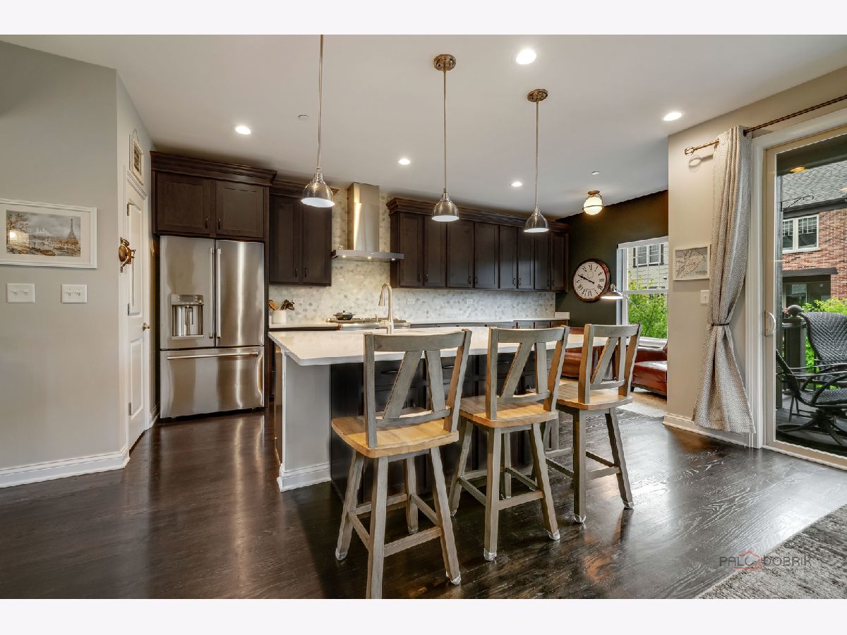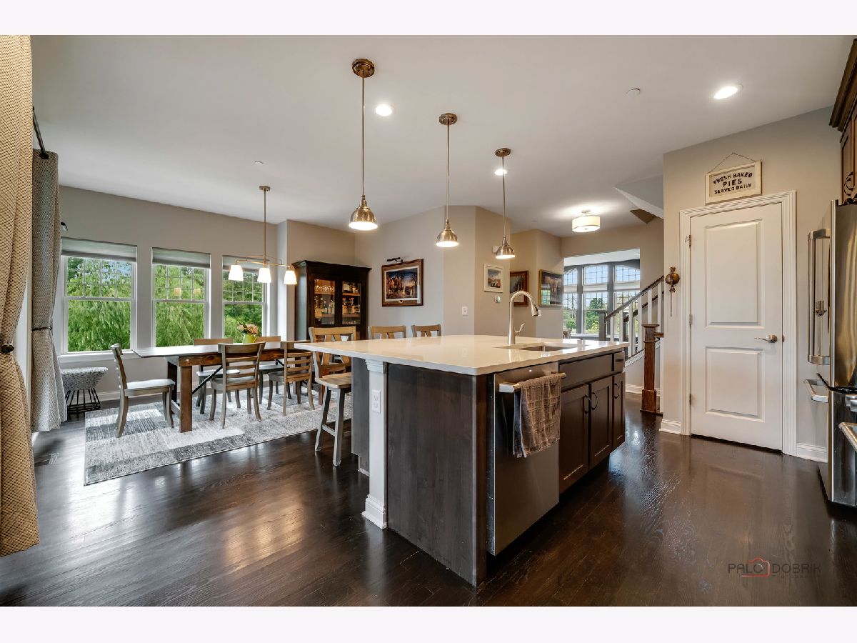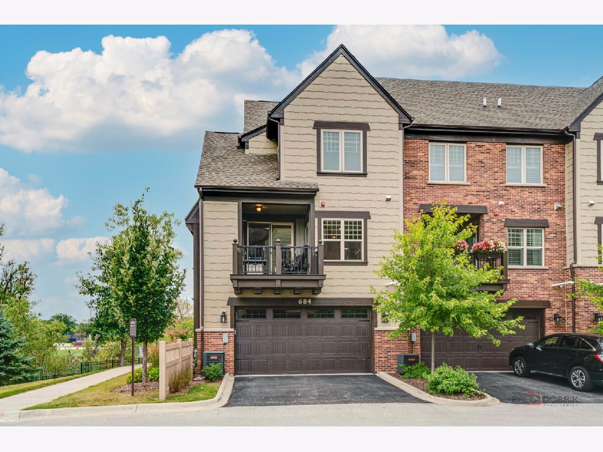 Discover luxury and comfort in this nearly new, stunning end-unit townhome, perfectly situated near parks and trails to offer breathtaking views of mature trees and nature. Highlighting 9-foot ceilings and oversized windows, this home is full of natural light, creating a warm and inviting atmosphere. The first floor features a versatile den that can easily serve as a 3rd bedroom, along with an office/storage room roughed in for an additional bathroom. A spacious 2-car attached garage provides ample storage. Step up to the second floor and be wowed by the Chef's Kitchen, designed for culinary delight and entertaining with quartz countertops, GE Cafe Series appliances, a stainless-steel apron sink, custom cabinetry, and an oversized island. A cozy breakfast nook and pantry closet offer additional functionality, while the dining area with sliders opens to your private balcony, ideal for morning coffee or evening relaxation. The living room is a true showstopper, featuring a gorgeous stone fireplace, built-in bookcases, and gleaming hardwood floors. A cute half bath and laundry area finish the level. Finally, retreat upstairs to your serene primary bedroom, complete with an elegant bath (dual sinks, oversized shower) and his-and-hers closets. The second bedroom and full bath complete the third floor, offering privacy for all. Outstanding location - 9-minute walk to downtown Libertyville, 7-minute walk to the Metra, N and S bike & walking paths right at your doorstep, Award winning schools, Lake Minear, fabulous restaurants and shopping. Located along commuter train line with multiple privacy views not looking into other units and not along main road traffic. 684 Parkside is the perfect blend of modern luxury, style and sophistication. Don't miss your chance - tour this beauty today!