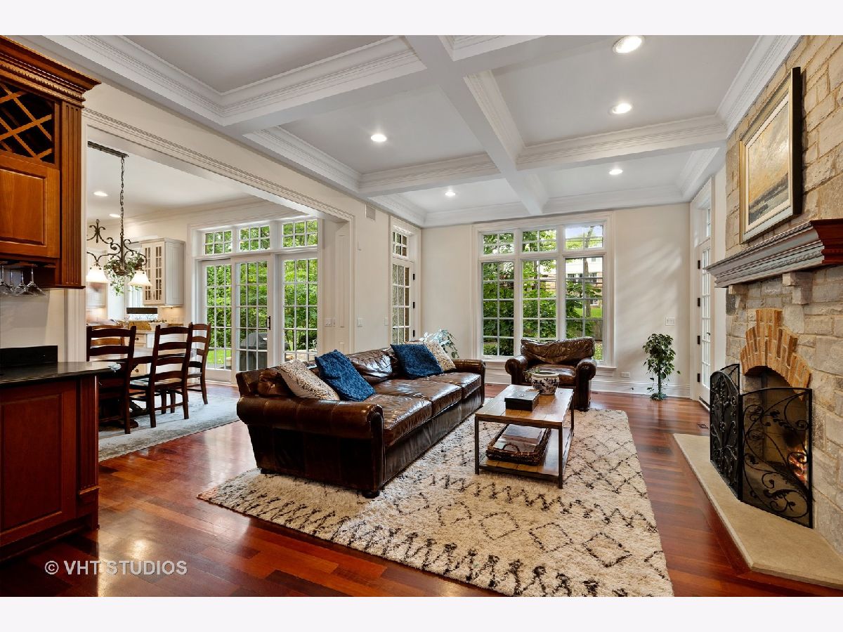 This beautiful, light-filled brick and stone home offers an open floor plan, 10' ceilings, custom mouldings and Brazilian cherry hardwood floors. Gourmet kitchen with Wolf range and SubZero fridge has everything a chef could want including island with second sink, walk-in pantry, generous eating area and sliding door to the patio. Open to the family room with views of the fireplace, the gorgeous coffered ceiling and walls of windows makes this the perfect room for gathering. A dining room with butler's pantry offers room for larger scale entertaining. Tucked off the foyer is a wonderful library for anyone needing to work from home. The mudroom with plenty of storage leads to the garages, with space for three cars. Upstairs offers three ensuite bedrooms and an incredible primary bedroom suite. This suite features a sitting room, breakfast bar, huge walk-in closet and bath with steam shower and separate whirlpool. A wonderful retreat for anyone! Head down the three-story staircase to the fininshed basement featuring a huge recreation room with fireplace, serving bar, bedroom, full bath and lots of storage. The fenced backyard with stone patio and professional landscaping is just the place for a relaxing evening outdoors. The circular front drive is great for extra parking and this home is just steps from Cherokee school.