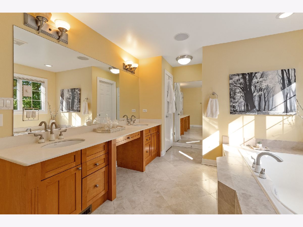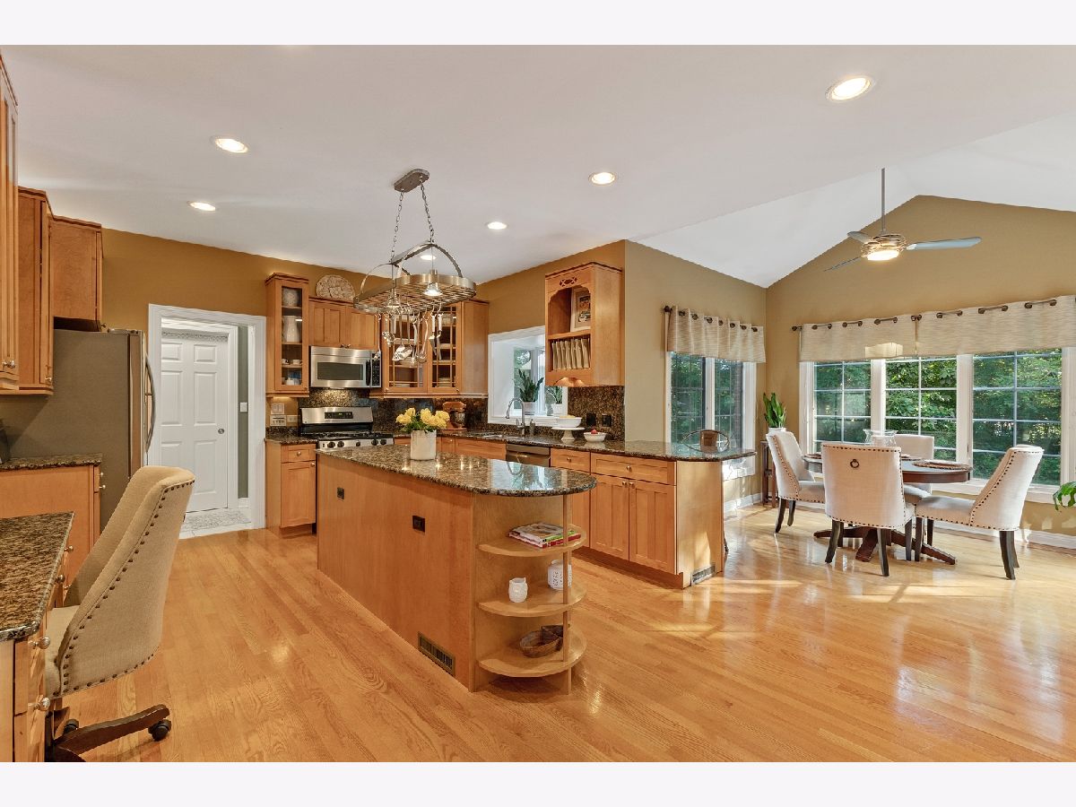 This is an all brick custom built home set in the beautiful Emerald Shores subdivision. 3 car attached garage. This community features access to Crooked Lake, suitable for kayaking and other recreational activities. Located on a quiet cul-de-sac within an idyllic wooded location, and within walking distance to Crooked Lake, Hastings Lake Forest Preserve and only 1.6 miles to Lakes Community HS, rated 10/10 on Great Schools website. Featuring 4 bedrooms (all up), plus home office, 3 1/2 bathrooms, 3 car garage, 3 tiered paver patio, and a spectacular finished basement. Upstairs includes 4 large bedrooms. Spacious master suite with spa like marble master bath. Sep shower and jacuzzi tub. Large walk in closet. Plus a laundry room. Main floor features large kitchen with granite counters, stainless appliances, and custom cabinetry with cherry inlay. Butlers pantry with wet bar and wine fridge. Separate breakfast nook and large great room with woodburning fireplace with granite slab surround. Gorgeous lower level with brand new carpeting. stone fireplace and bar area, private home office. Great entertaining space with slate pool table, to be sold with the home! Entertaining space continues outdoors onto a 3 tiered paver patio, an outdoor fireplace, fire pit and an impeccably landscaped back yard with mature trees. Private, complete and refined Nicer than anything else on the market!!
