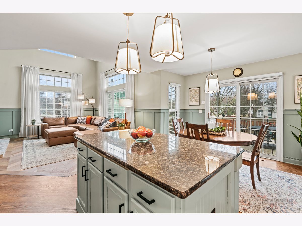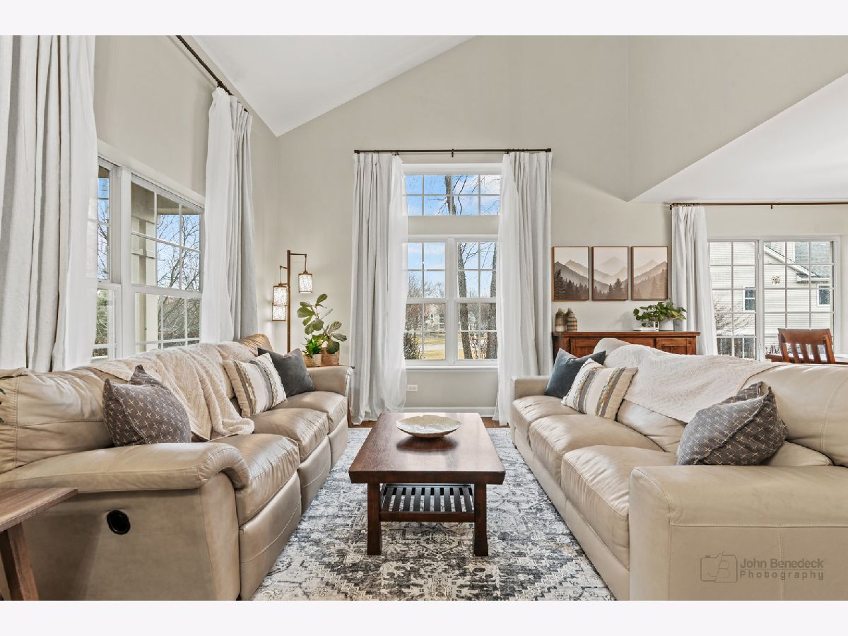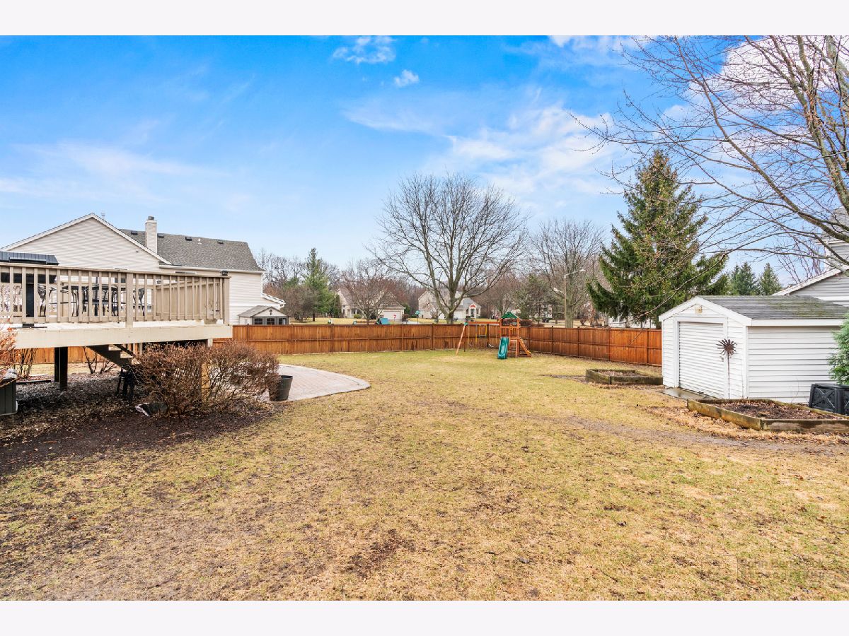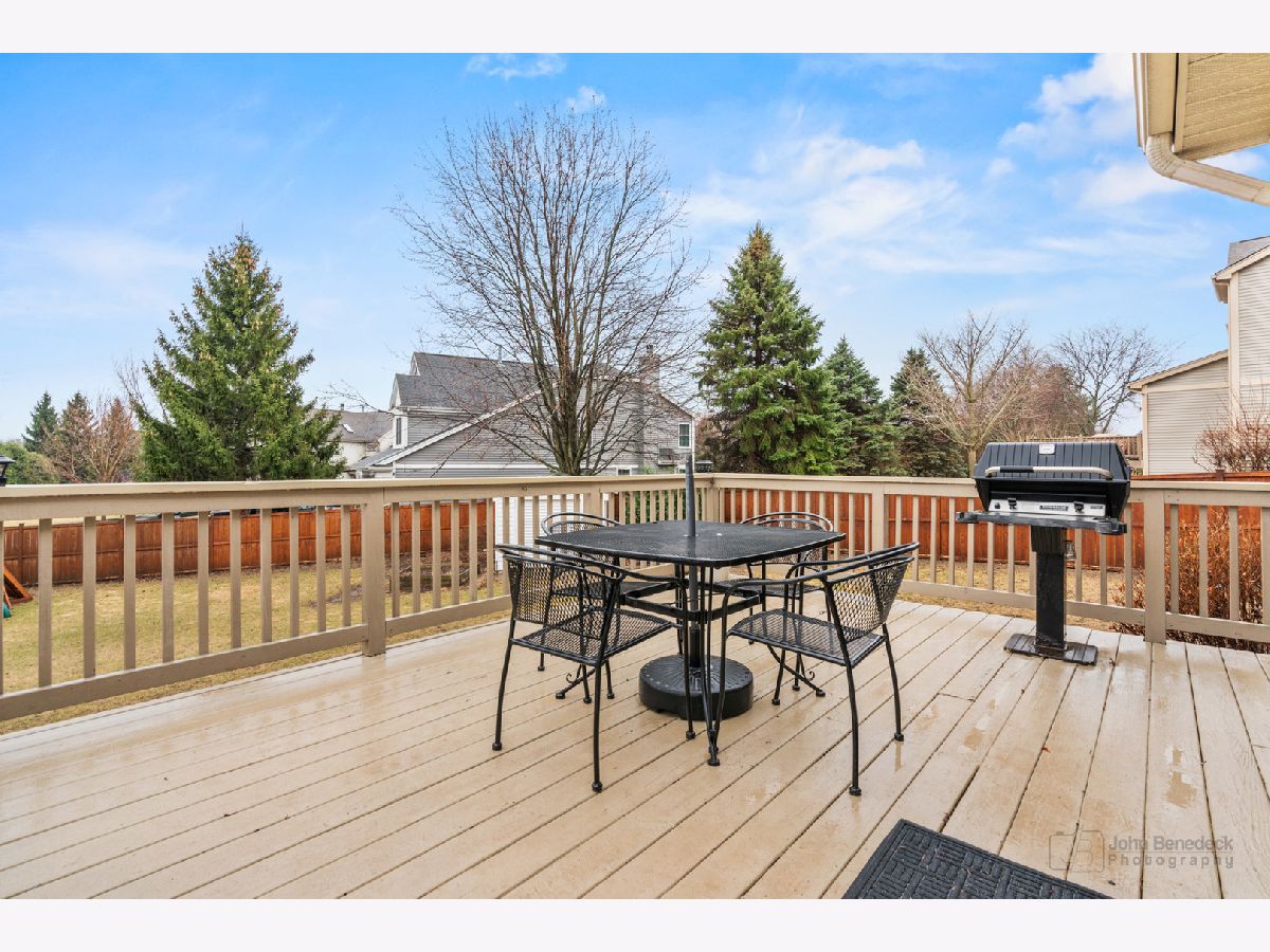 WELCOME HOME! This stunning 4-bedroom 3.5-bath home on a quiet cul-de-sac offers a perfect blend of style, comfort, and functionality. From the moment you enter, you will be greeted by the grand two-story foyer and captivated by the gleaming hardwood floors, lovely wainscoting, and modern updates throughout. The gourmet kitchen is designed for both cooking and entertaining, featuring a spacious granite island with seating, stainless steel appliances (2024 and 2025), and a bright breakfast nook that overlooks your back deck and a fully 6-foot cedar-fenced backyard. The adjacent family room boasts cathedral ceilings, abundant natural light, and a white-washed masonry gas fireplace. With brand new flooring (March 2025) this space is perfect for cozy evenings and fun-filled movie nights. On the main floor, you will also find a formal living area, a separate formal dining area, an additional room that can be used for a home office, playroom, or whatever your heart desires, and an updated powder room (March 2025) with a generously sized laundry/mudroom. Make your way upstairs. The primary suite awaits with vaulted ceilings and a spa-like en-suite bath featuring dual sinks, a granite vanity, custom shelving, a tiled walk-in shower, a luxurious soaking tub, and a spacious walk-in closet. Perfect for unwinding after a long day! You'll also find three sizeable bedrooms, a fully updated bathroom (March 2025), and a versatile loft space! The fully finished English basement is a true standout, with 10-foot ceilings that create an open and airy feel. Cozy up by the second gas fireplace or transform the space into a home theater, game room, or guest retreat. A full bathroom adds convenience, while a separate storage room ensures plenty of space for organization. Make your way outside to a professionally landscaped backyard designed for relaxation and entertaining. Fire up the grill on the deck! Then host unforgettable gatherings on the brick-paver patio. A large storage shed provides extra space for all your outdoor essentials, while the 6-foot cedar fence offers that additional privacy. You will be impressed. The list of updates is extensive! The location is unbeatable, just minutes from the Metra, downtown shops, fantastic restaurants, golf courses, and more. Located in the top-rated Prairie Ridge High School District 155. You do not want to miss this home!