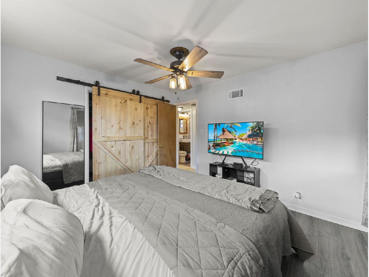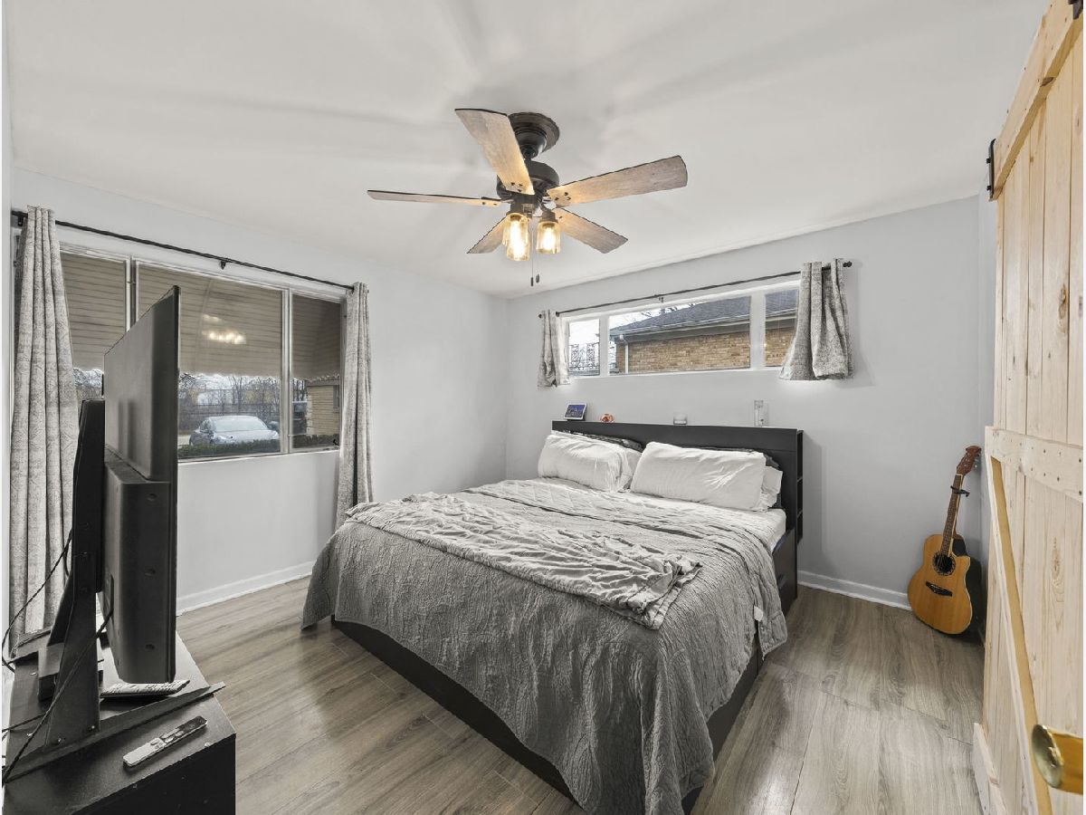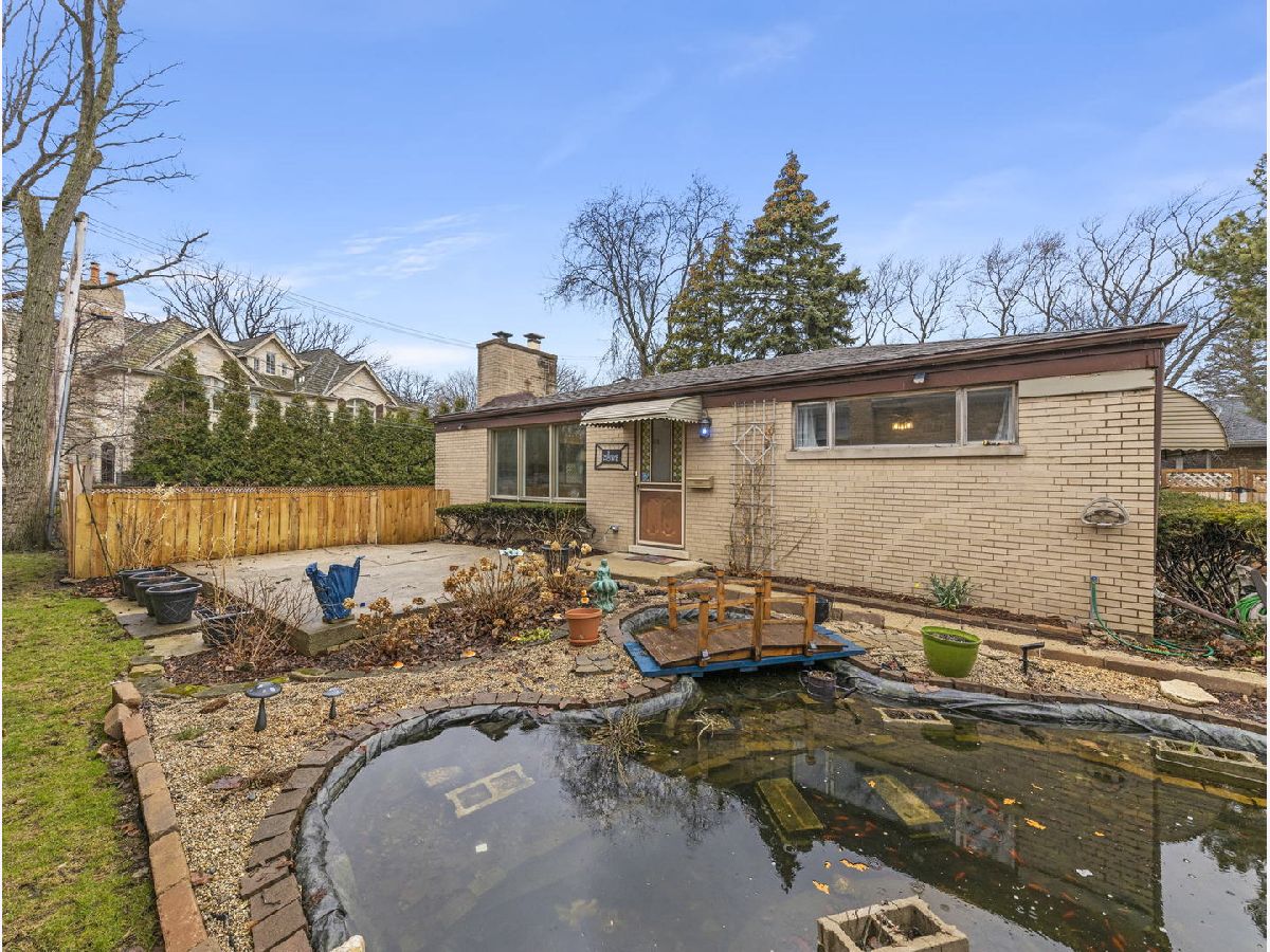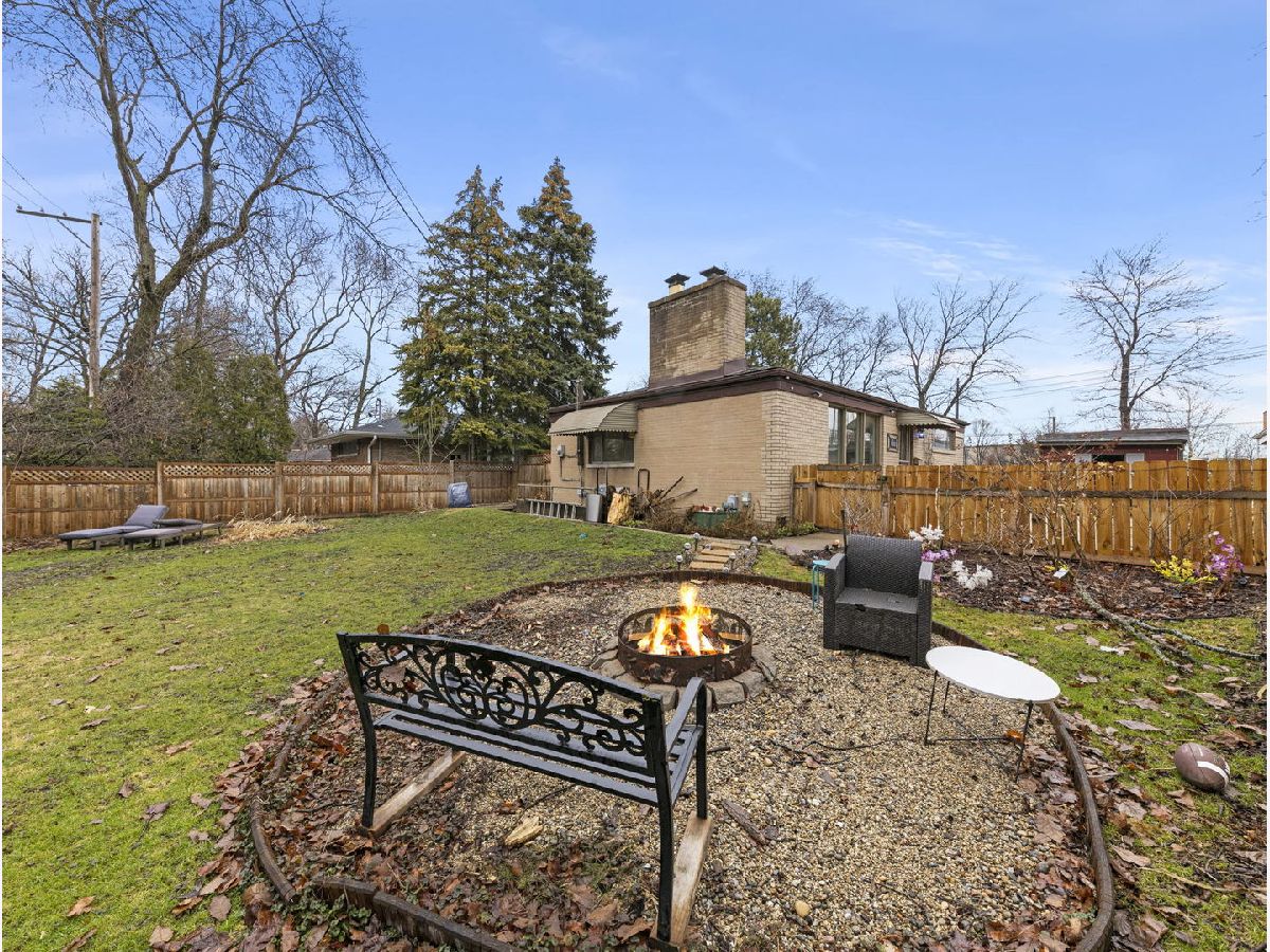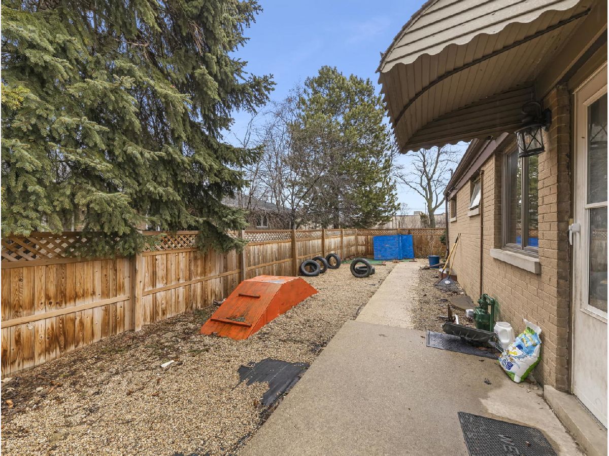 Solid brick ranch on an oversized lot has fenced in backyard and side yard, located in Wildwood /North Edgebrook neighborhood. Updated wood-burning fireplace. Hardwood floors throughout in the living room and hallway. Dining room and kitchen are on the right of the fireplace. Kitchen has updated countertops and freshly revived cabinets. 2 generous size bedrooms and shared full bathroom on main level. Rooms have been updated with new flooring with modern barn doors on closets. Finished dry basement has family room/office, laundry room, 1 full bath and 1 guest room with vinyl tile and laminate wood floor. Rare walk out basement leads up to spacious backyard. Private oasis behind 1 car garage with attached shed, perfect for entertaining. This home is close to Forest preserve, Metra train, bus, shopping, and restaurants in downtown Edgebrook and Village crossing! Sold as is. Home has new neutral grey paint throughout most of the home.