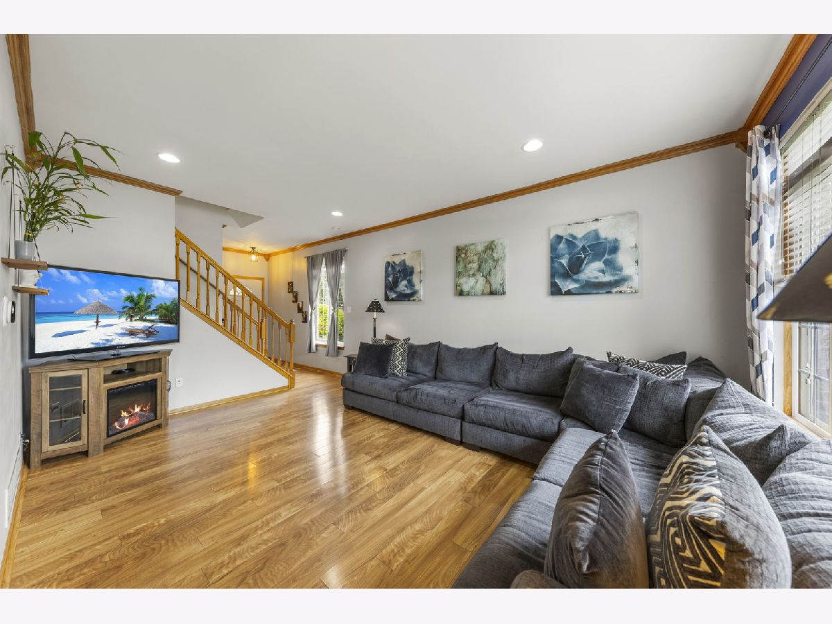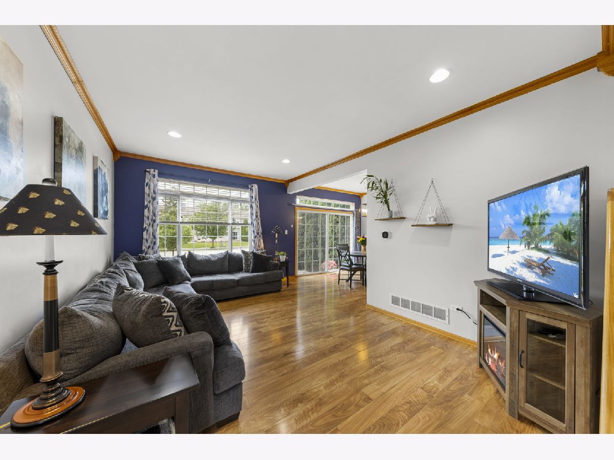 This adorably updated, spacious, end-unit townhome with newer wood laminate flooring, 9 ft ceilings and stunning crown molding is beaming with natural light and move in ready. The adorable patio with a sliding door outside of dining area is a great place for your morning coffee or to unwind at the end of the day with a book. Head upstairs where you will find the spacious primary bedroom with a large walk in closet. The full, deep-pour basement, ready for refinishing or TONS of storage space, is only the cherry on top of this already perfect home. Easy access to I-80 and the Tinley Park Metra makes it a commuters dream. Close to shopping and restaurants. Don't miss your chance at the home of your dreams. Schedule your showing today.