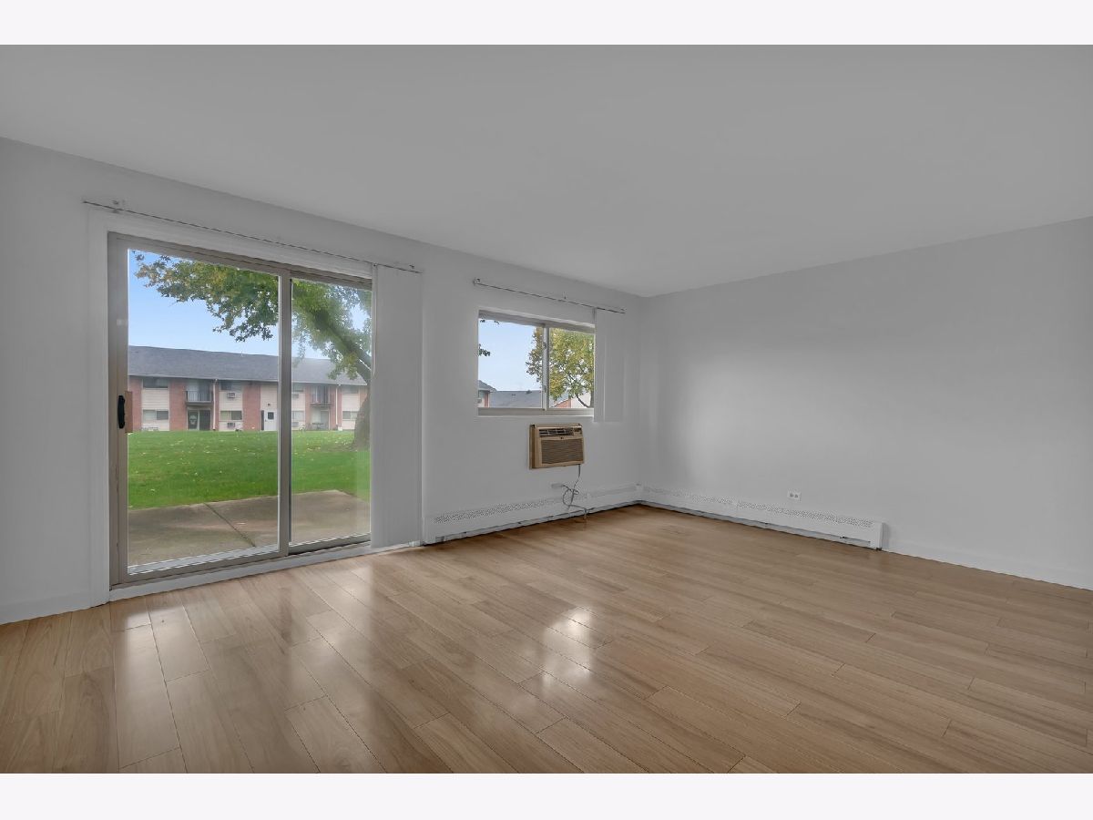 Maintenance free living and MOVE IN READY! Convenient first floor spacious 2 bedroom 1 bathroom condo unit in Glendale Heights. Open kitchen and dining area. Large living room with sliding glass door to private concrete patio overlooking large green space. Large main bedroom with walk-in closet, and lots of storage! Coin-op Laundry and additional storage locker in basement. Assigned parking near the front door of building. Quiet neighborhood near I-355, restaurants, schools and forest preserves. Low monthly HOA covers heat, water, gas, parking, common insurance, exterior maintenance, lawn care, scavenger, and snow removal. Complex is INVESTOR FRIENDLY. Property being sold AS IS. Schedule a showing today!