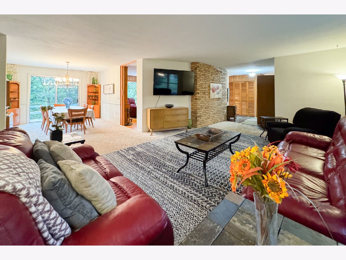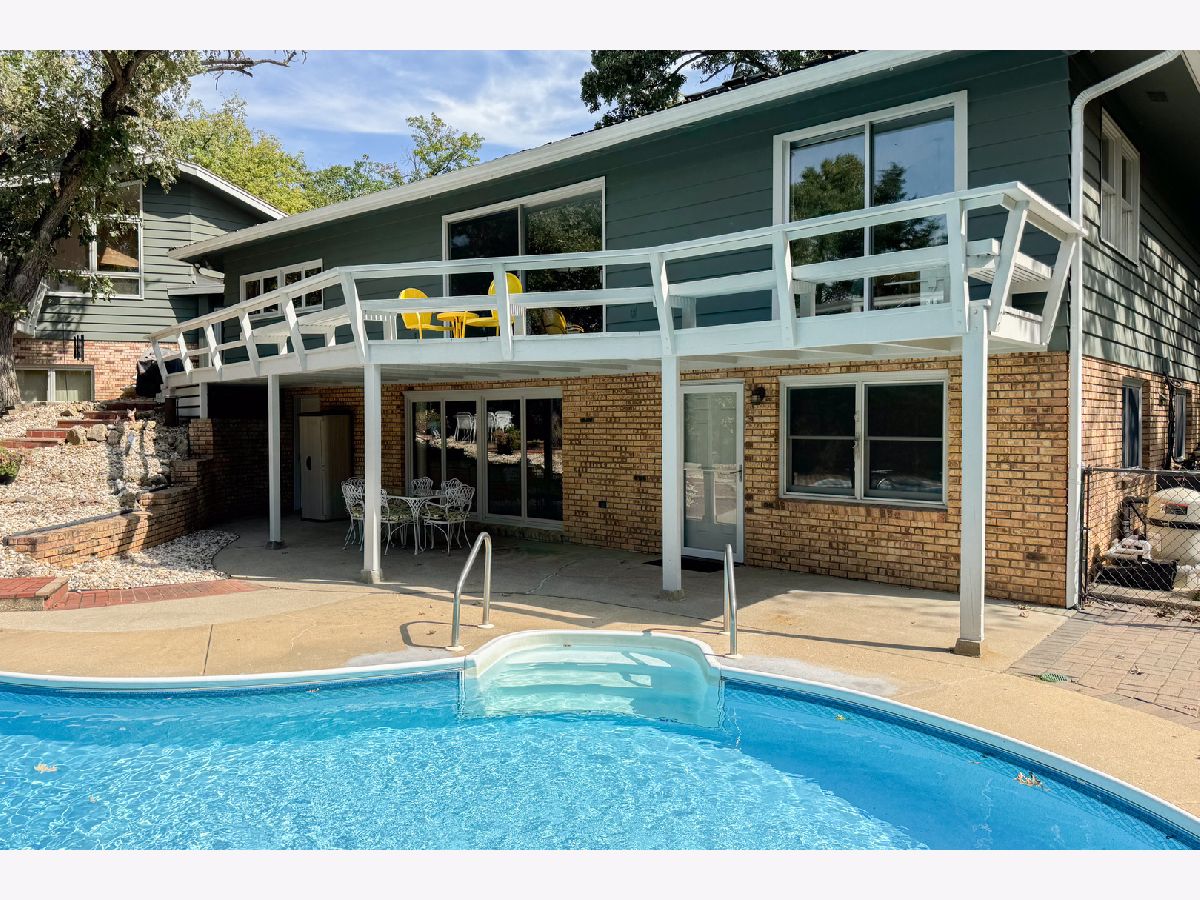 Rare opportunity to own a unique Ledges home with an in-ground pool AND true mother-in-law suite in the fully exposed lower level. Situated on 1.35 acres, this home offers over 4,000 sq ft of living space full of amenities and one of a kind mid-century character! The main floor features a living room, formal dining room, and den with brick fireplace & built-in book shelves. The stunning kitchen features quartz countertops & backsplash with a huge island, additional breakfast bar area, abundant cabinet storage, and stainless steel appliances. The main floor is complete with two generously sized bedrooms, two full baths, and open laundry area. The mudroom breezeway leads to the upper and lower staircases. The upper level features a spacious primary bedroom with an ensuite bathroom. There is also a half bath and additional bedroom with exposed wood beams and stairs to a cool loft area. Below you'll find two rooms that both have sliding glass doors that lead to the deck. The first room (bdrm 5) is currently being used as a weight room, and the second room is currently being used as a playroom but could make the perfect home office space, 7th bedroom, game room, etc. This room has an additional exterior door that's conveniently located within steps of the driveway. On the other side of the fully exposed lower level you'll find the mother-in-law suite that features a living room with brick fireplace, spacious eat-in kitchen, bedroom, and full bathroom. This space has its own washer & dryer, and exterior entrance. The lower level also has a sauna and convenient pool room/mudroom with an etched epoxy floor, sink, shower, and toilet that can be easily accessed from the service door located off the patio. The wooded fenced-in backyard feels like a private retreat with the stunning in-ground pool and views of the creek. Additional upgrades include: new gutters & gutter guards (2022), new concrete sidewalk, siding & deck recently painted, new 3 ton AC unit, newer water heaters, steel brace reinforcement added to deck, new pool heater (2022), pool filter (2024), pool pump (2022), and approx 2/3 of shake shingle roof recently replaced. Hononegah/Roscoe Schools. Easy access to I-90. You don't want to miss this one!