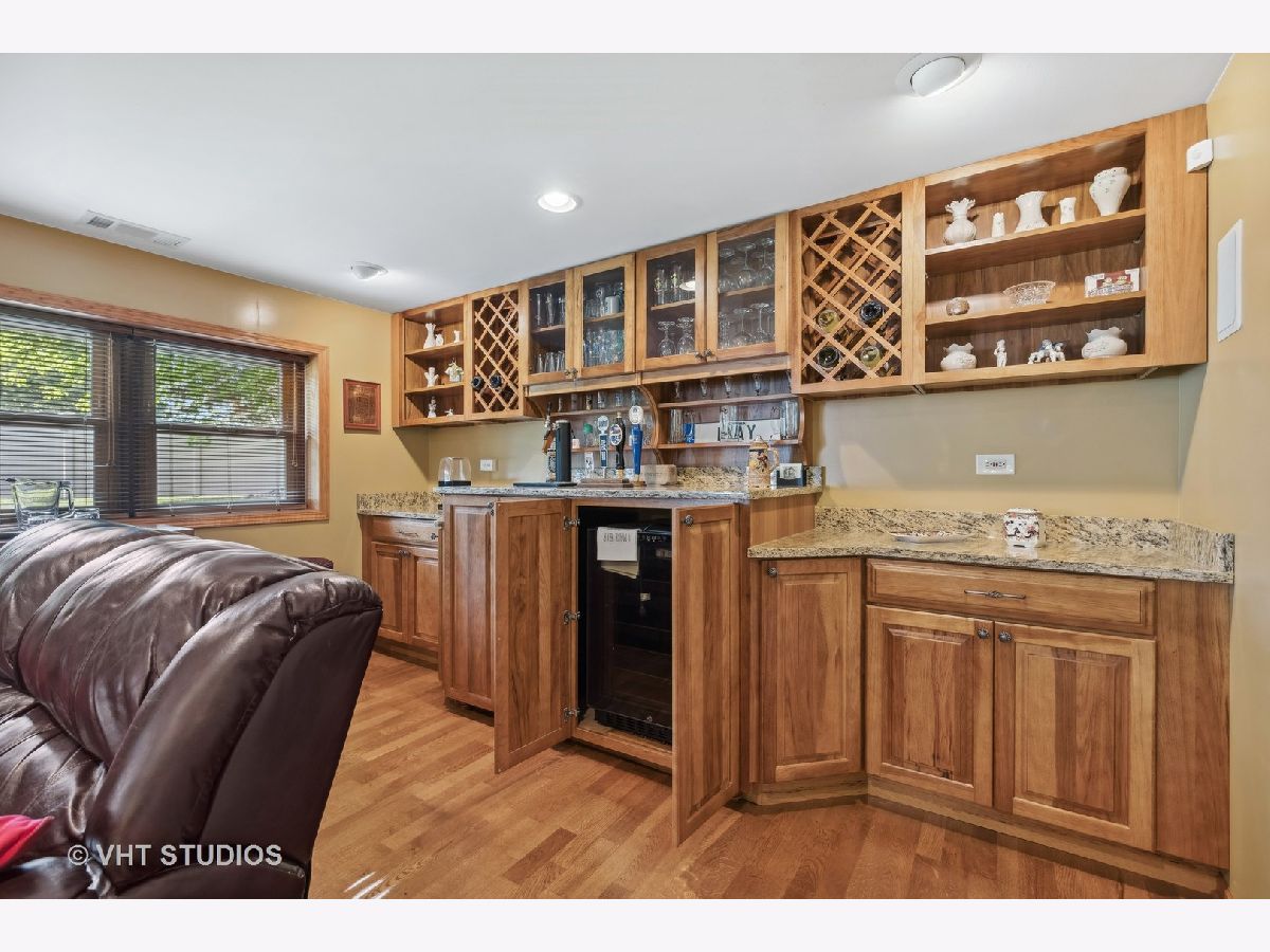 Welcome to this spacious 4-bedroom, 3.1-bath split-level home designed for entertainment with a large finished sub-basement. As you step inside, you'll find a large foyer leading directly into the formal living and dining rooms. The centrally located eat-in kitchen features ample counter space and cabinets. Upstairs, the primary bedroom with an updated ensuite bath provides a retreat, while two additional bedrooms share a beautifully appointed hall bathroom. The expansive lower level family room is an entertainer's dream with pristine wood laminate floors, a stone surround gas fireplace, built-in speaker system, and a built-in bar equipped with a kegerator and wine fridge. A fourth bedroom, currently used as an office, is conveniently located across from a full updated bathroom. The finished sub-basement offers versatility with a carpeted rec room and a vinyl plank laundry room, along with ample crawl space for all your storage needs. Step through the sliding glass door from the kitchen onto a spacious patio, offering an outdoor living area perfect for dining or unwinding in your private hot tub under the stars. The fenced yard showcases mature landscaping and direct access to O'Brien Park. Additional features include hardwood floors throughout the main and second levels, a gutter guard system, and a natural gas line for your grill.