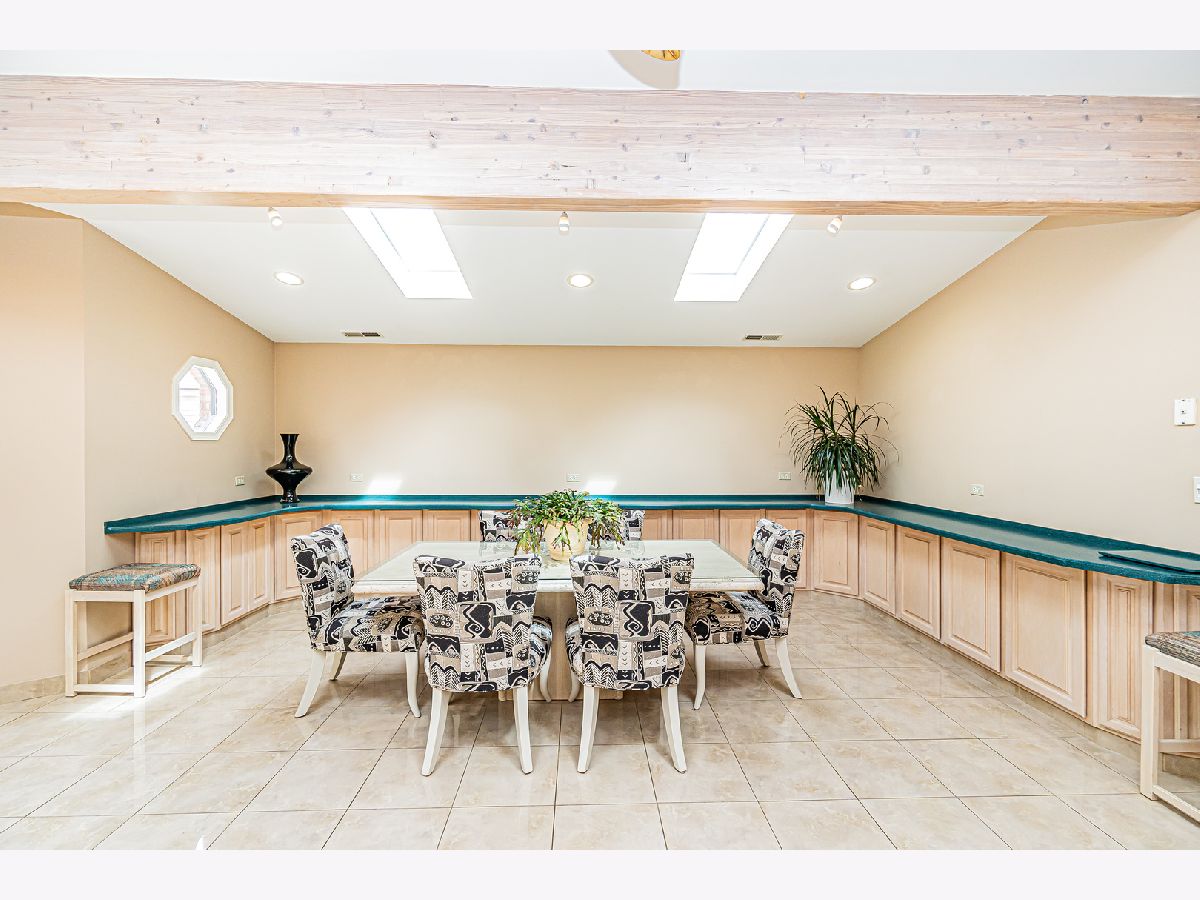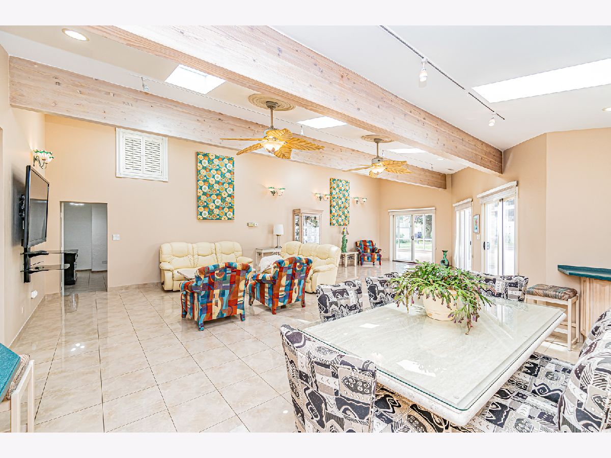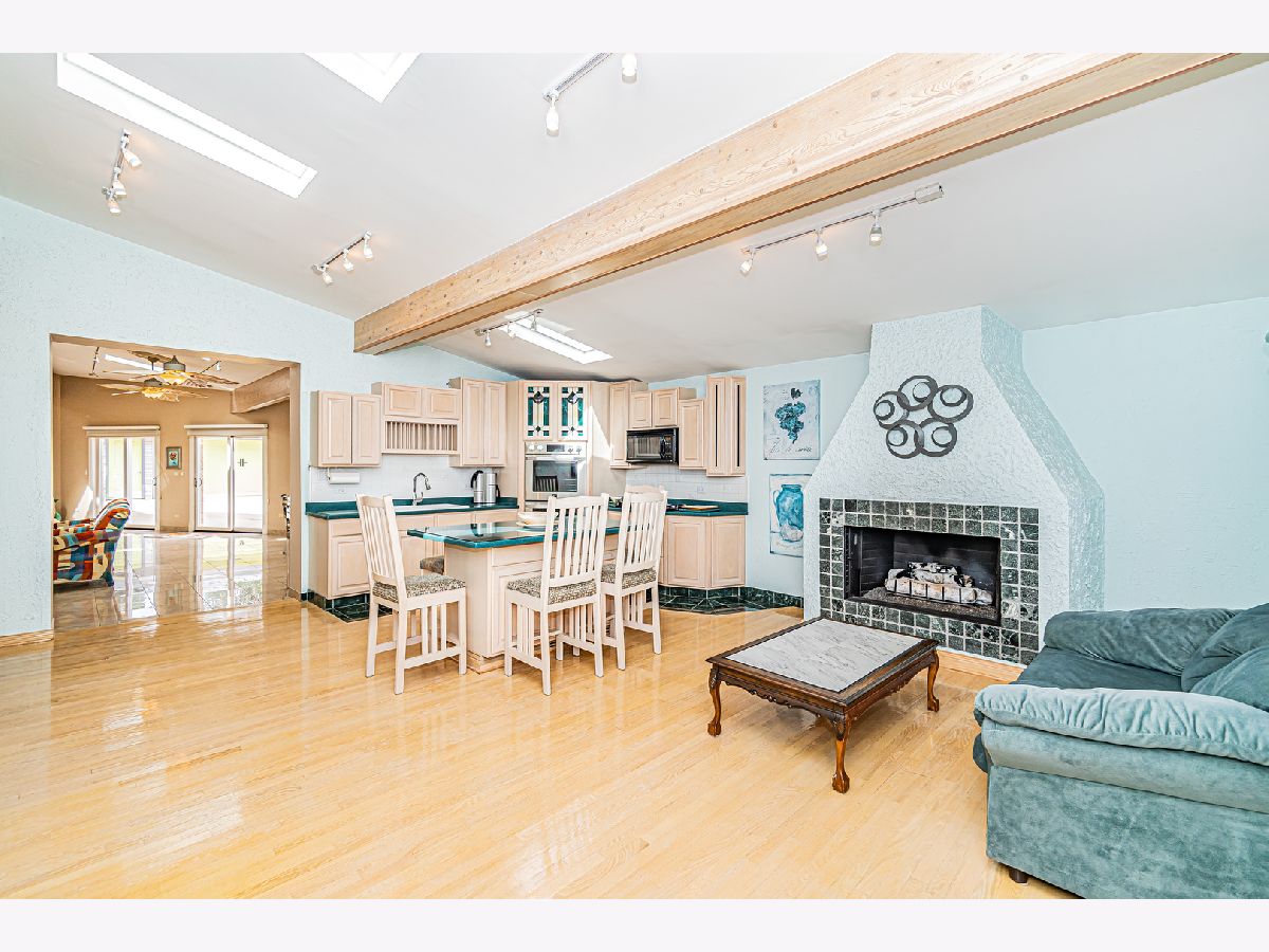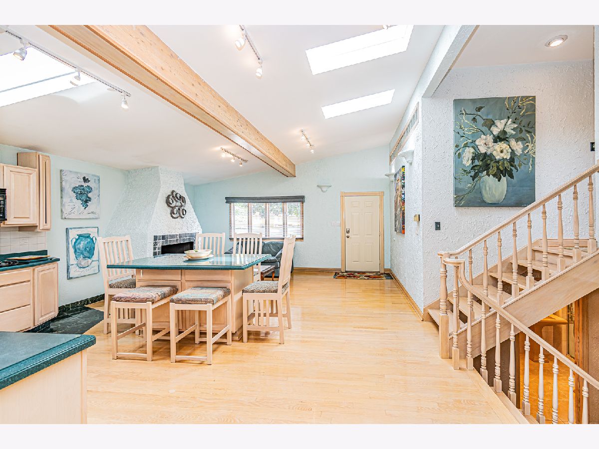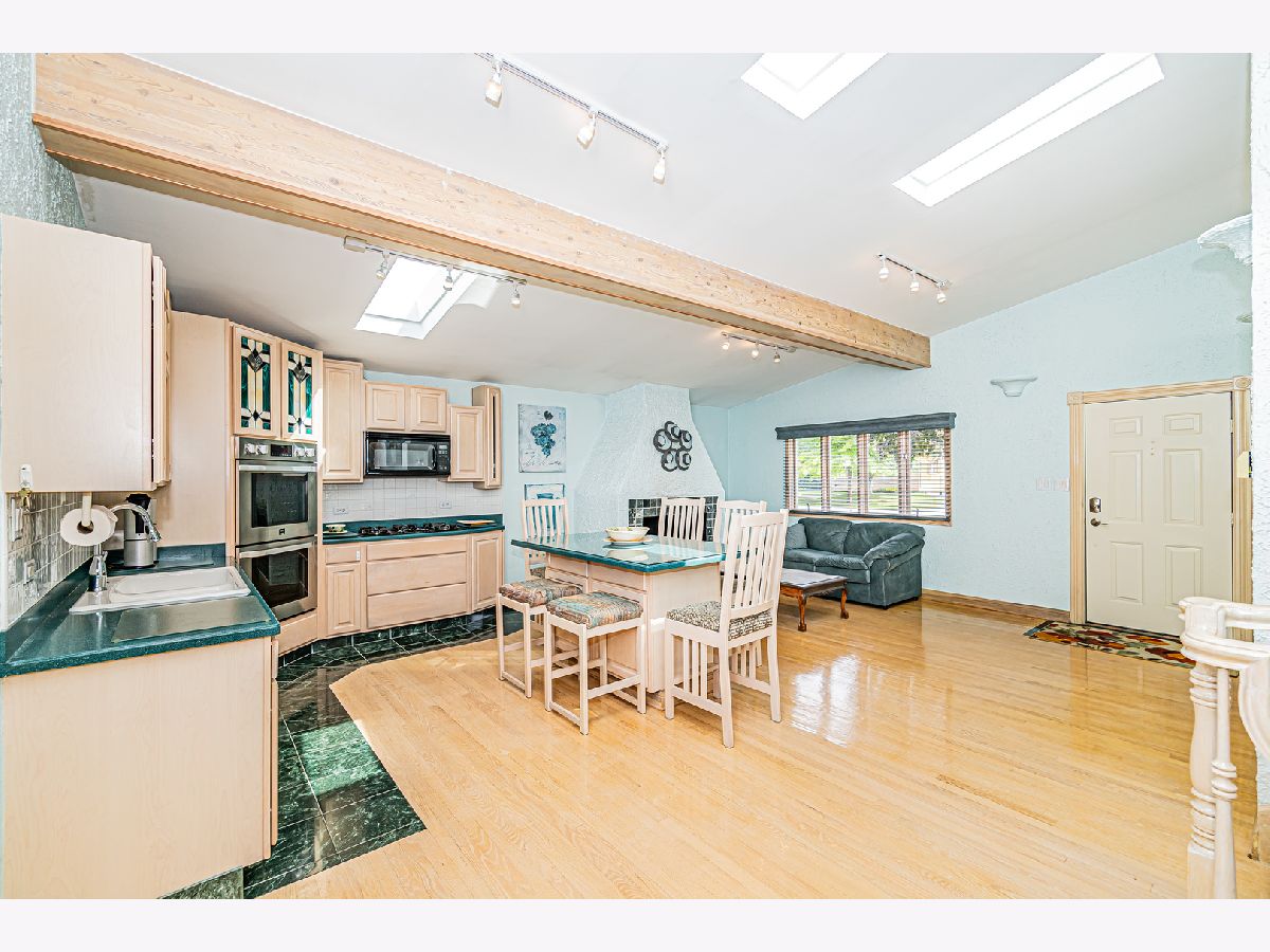 Estate Sale "As Is". Original owner & meticulously maintained. NEW roof in 2019. 2342 SQF + 526 SQF rec room. Beautiful tree lined street. **Enormous great room with vaulted ceilings, beams & skylights, perfect for entertaining. **Main level master bedroom featuring luxurious spa bath. **Finished rec room with full bath. **Upper level originally 3 bedroom converted to two bdrm. **Kitchen features double oven and island. Enjoy a fire in the enclosed sunroom during snowfalls. Covered outdoor patio & fenced yard. Near shopping, I-294, parks, Metra train & more!