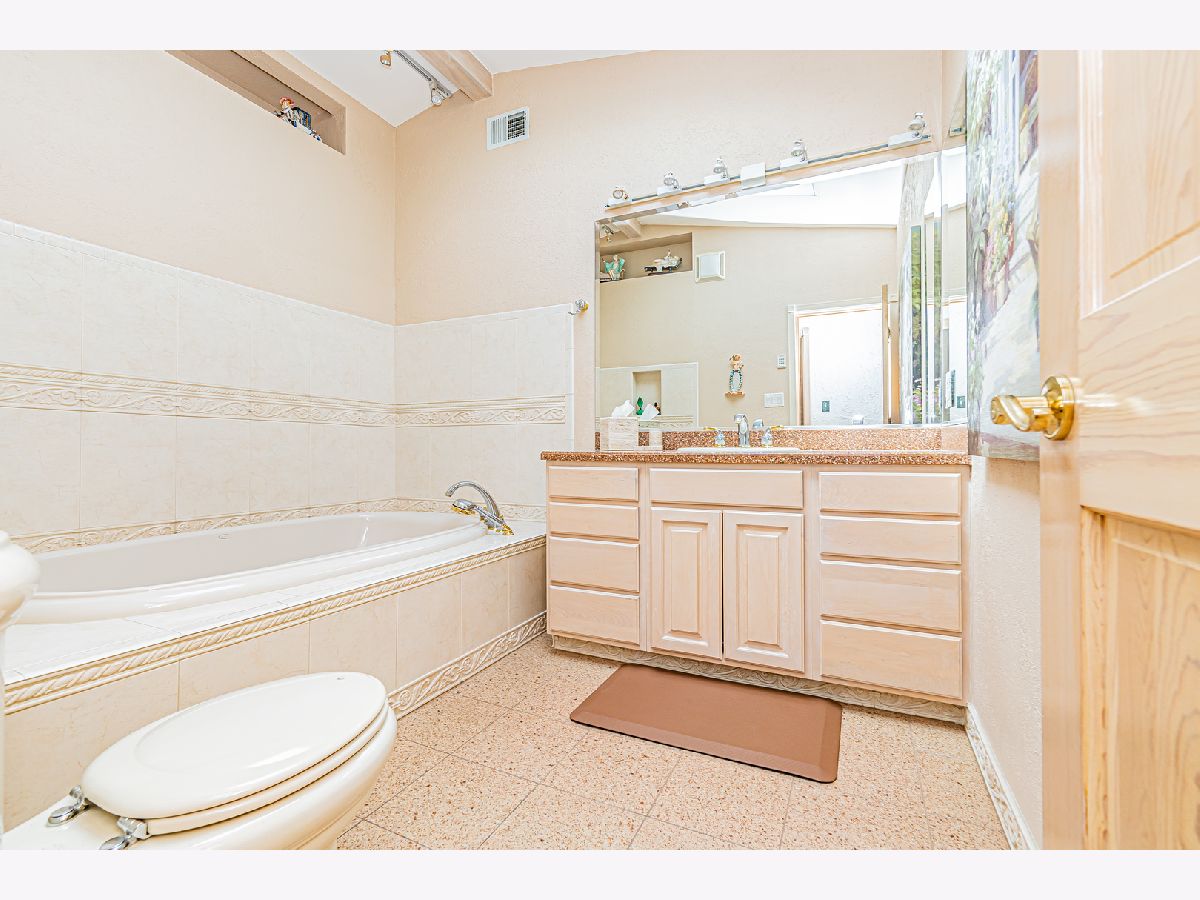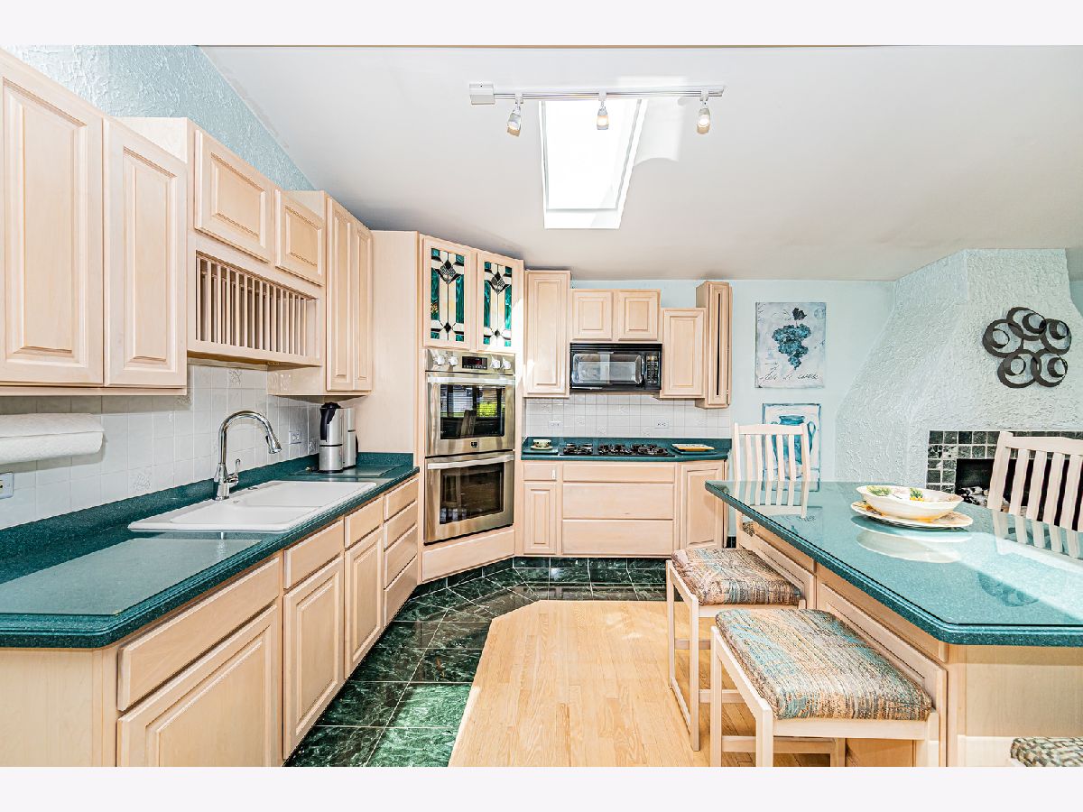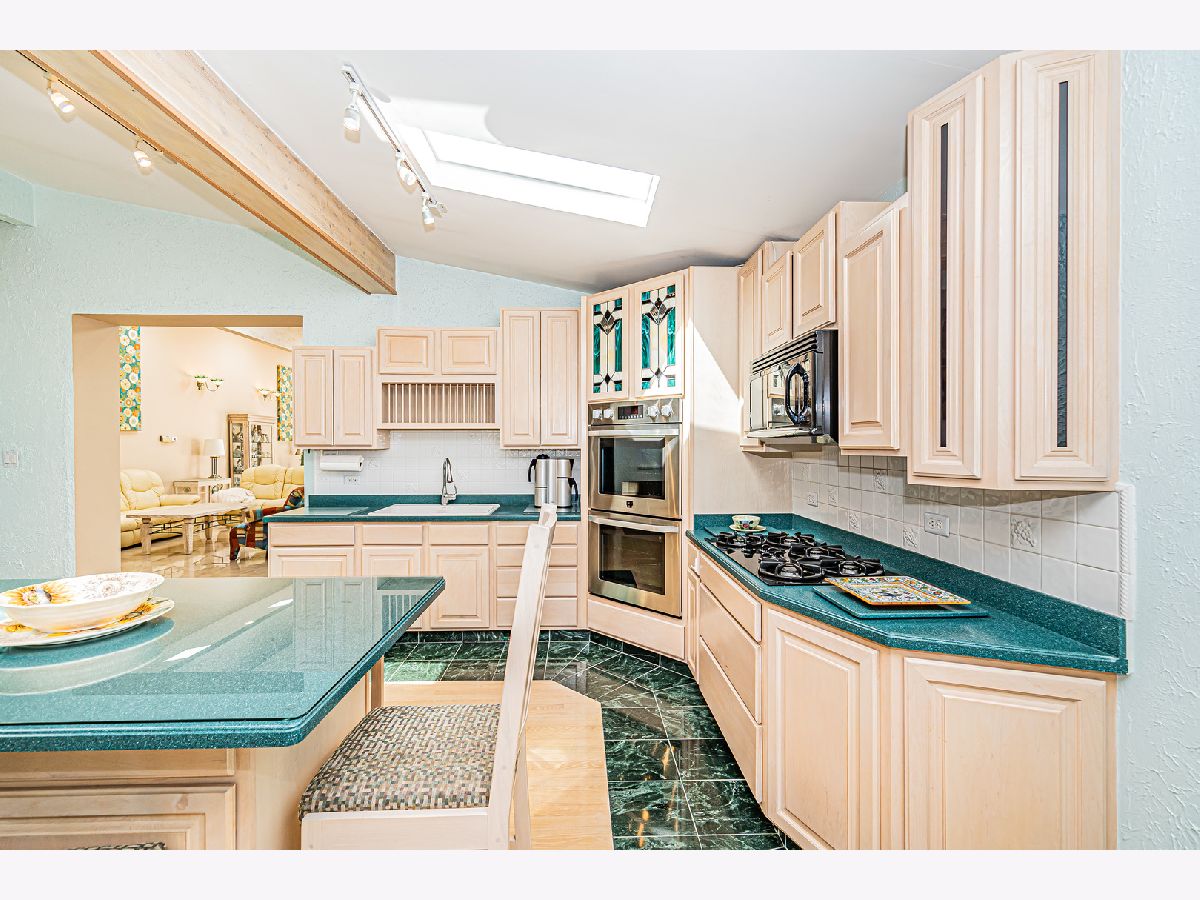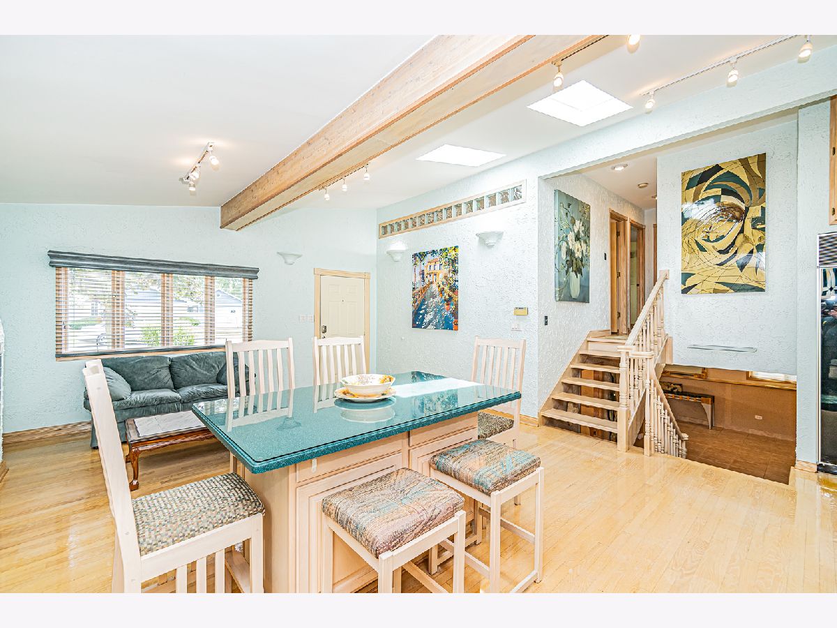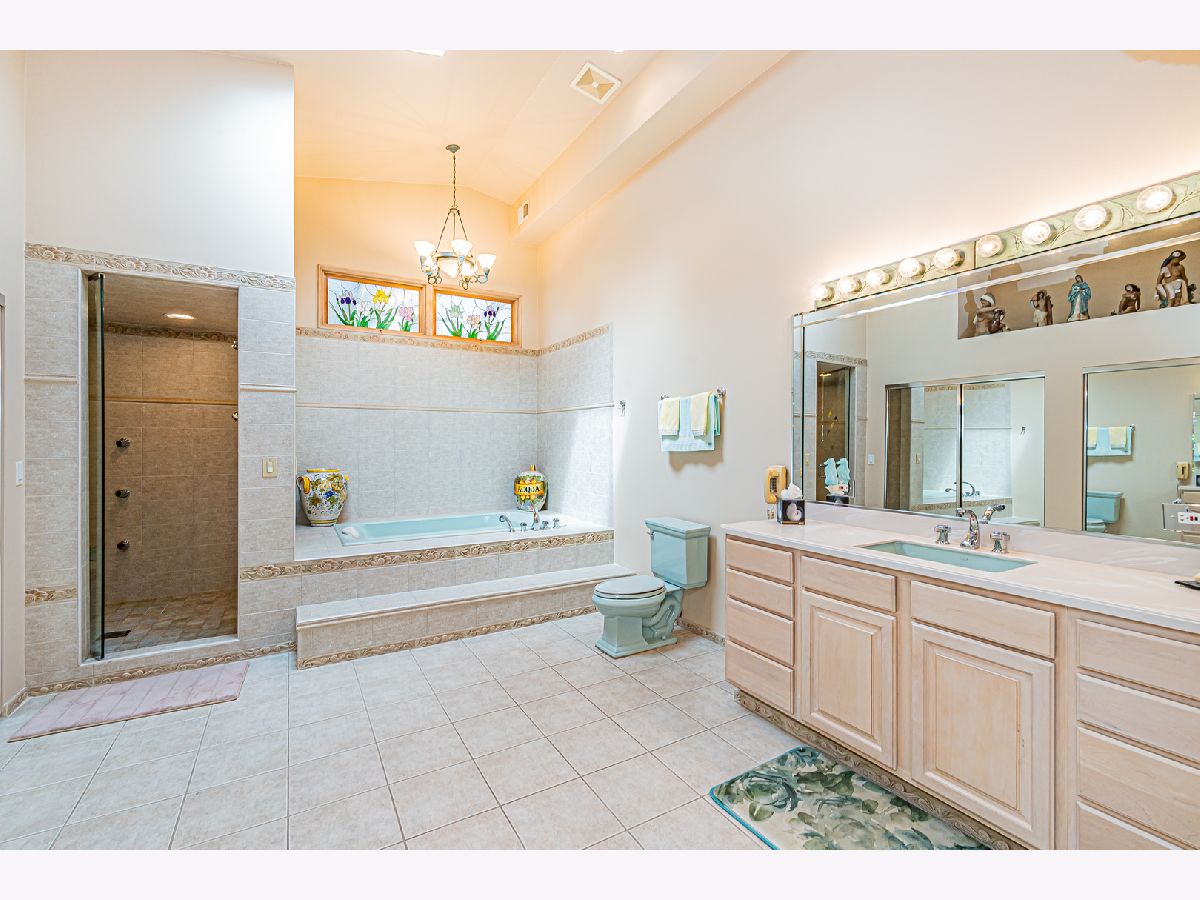 Estate Sale "As Is". Original owner & meticulously maintained. NEW roof in 2019. 2342 SQF + 526 SQF rec room. Beautiful tree lined street. **Enormous great room with vaulted ceilings, beams & skylights, perfect for entertaining. **Main level master bedroom featuring luxurious spa bath. **Finished rec room with full bath. **Upper level originally 3 bedroom converted to two bdrm. **Kitchen features double oven and island. Enjoy a fire in the enclosed sunroom during snowfalls. Covered outdoor patio & fenced yard. Near shopping, I-294, parks, Metra train & more!