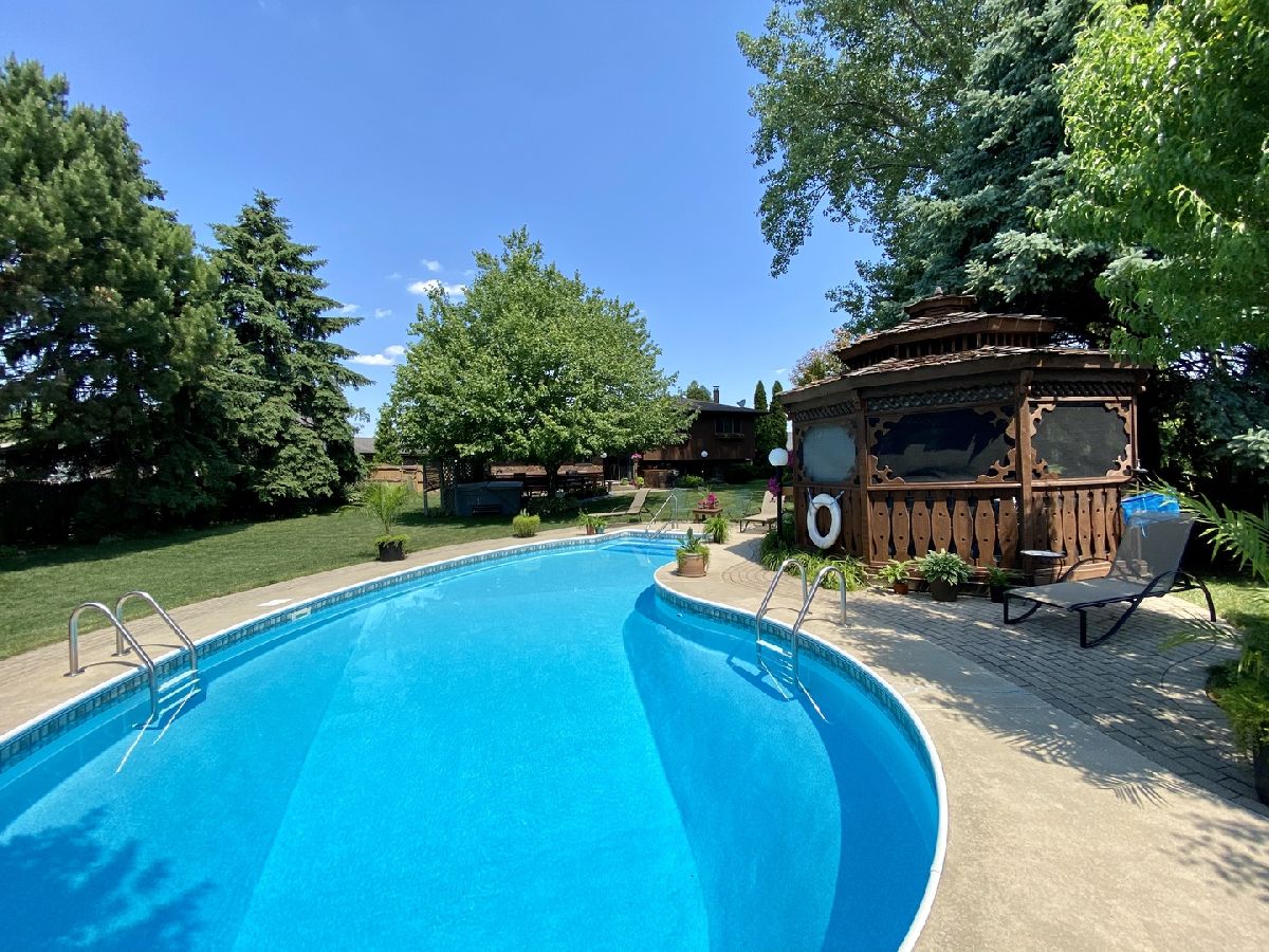 Vacation at home with this ABSOLUTELY Stunning backyard!! SPECTACULAR Quad-Level home showcases a huge backyard with 35' x 18' heated kidney shaped pool & auto-vac system, NEW pump (2019), 8' Sundance hot-tub, screened in gazebo, storage shed, garden, professional landscaping, sprinkler system, natural gas grill, and concrete patio! All fenced in on a large lot with bright lighting makes this a perfect at home vacation spot or for entertaining! Beautiful kitchen with granite counter tops, bay window in living room, full stone heatilator wood burning fireplace with gas starter in lower level family room, and Andersen windows with custom blinds! Finished sub basement with rec room, large cedar closet, and plenty of storage! Newer roof (2015), Newer furnace (2015), Newer A/C (2015), Newer skylights (2015), home Generac generator, and so much more! Such a terrific home with resort backyard, don't let this one go!! Just minutes away from shopping centers and great restaurants.